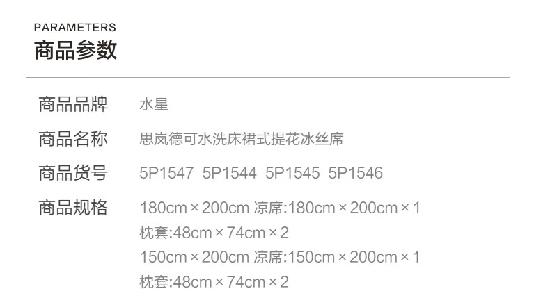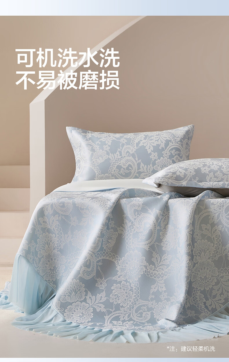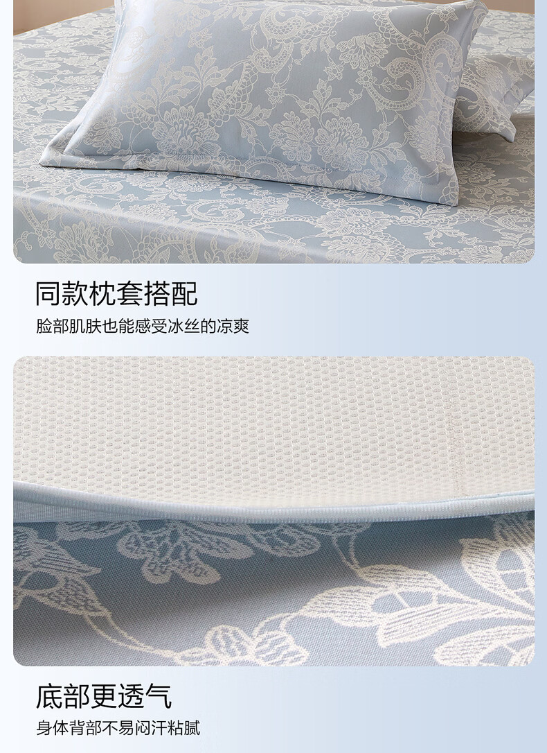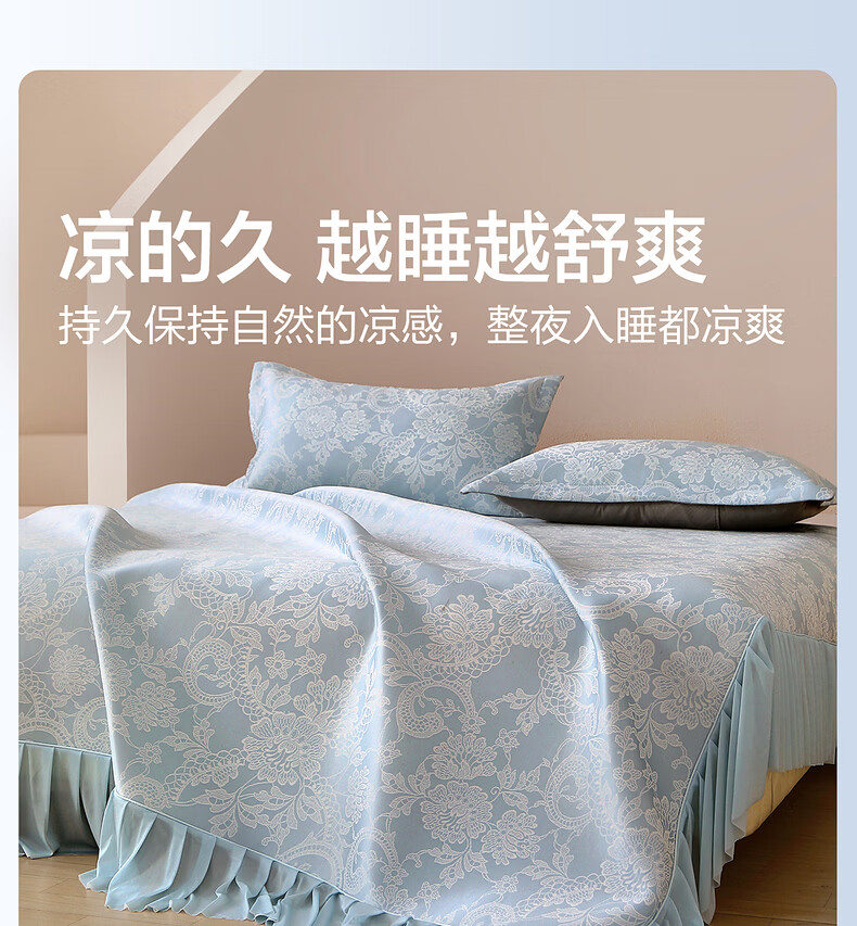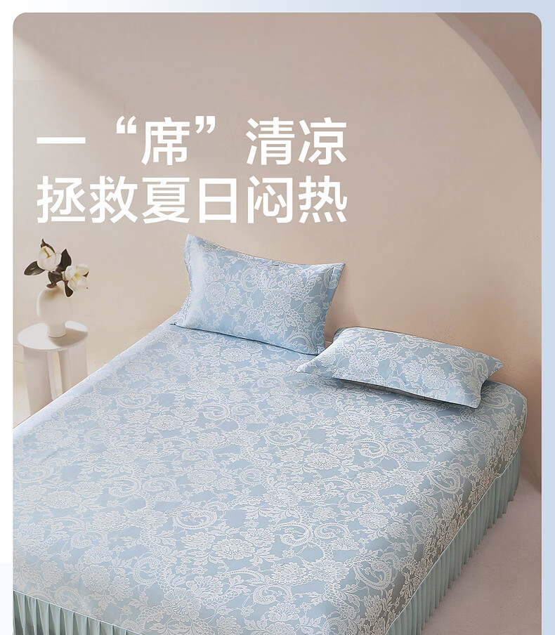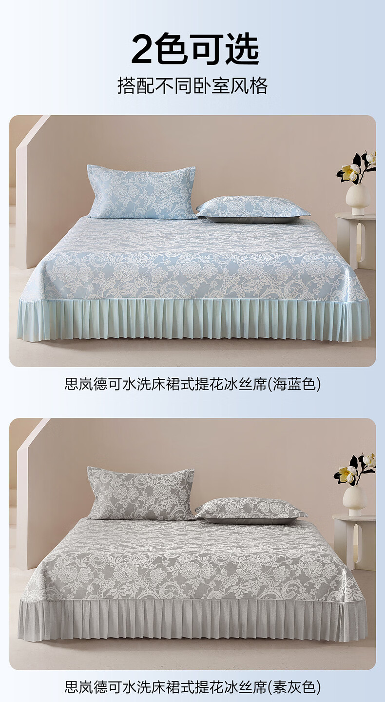 水星家纺思岚德可水洗床裙式提花冰丝席 思岚德可水洗床裙式提花冰丝席(海蓝色) 200cm*150cm