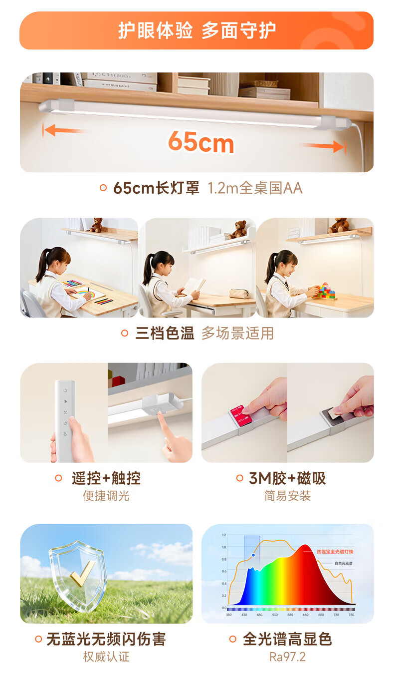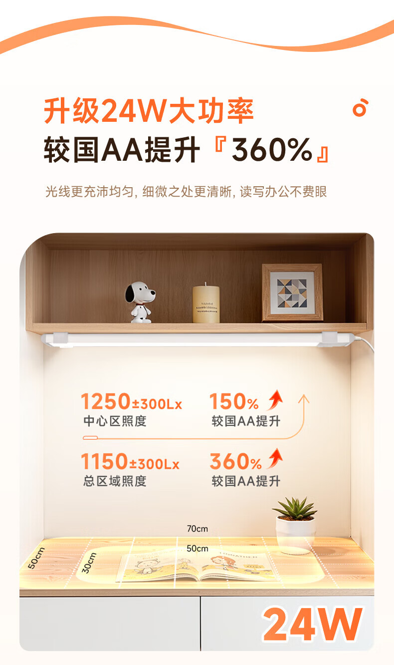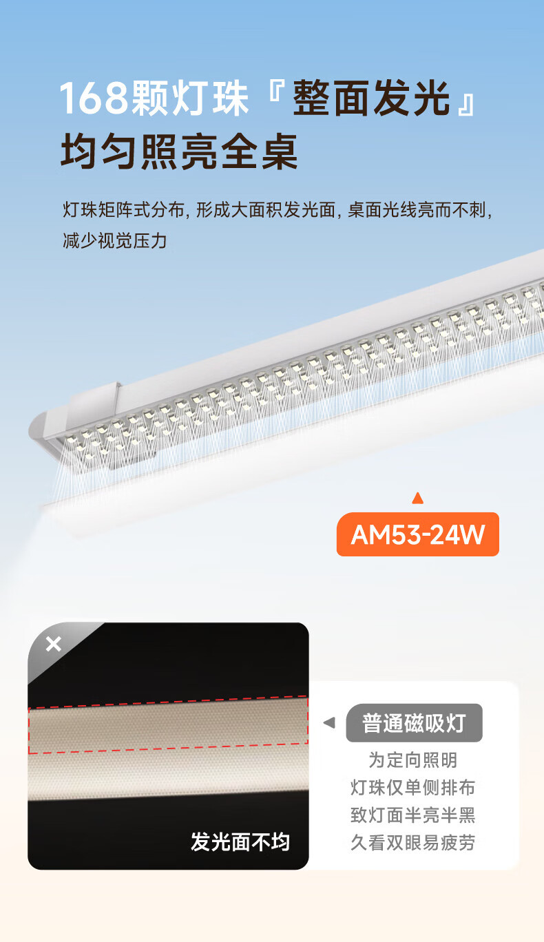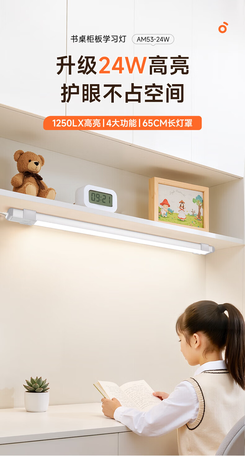 孩视宝护眼台灯全光谱壁挂式磁吸灯学生学习宿舍书桌吊柜上下铺学习灯 【24W高亮清晰】升级多功能 AM53-24W