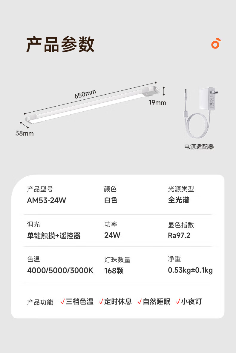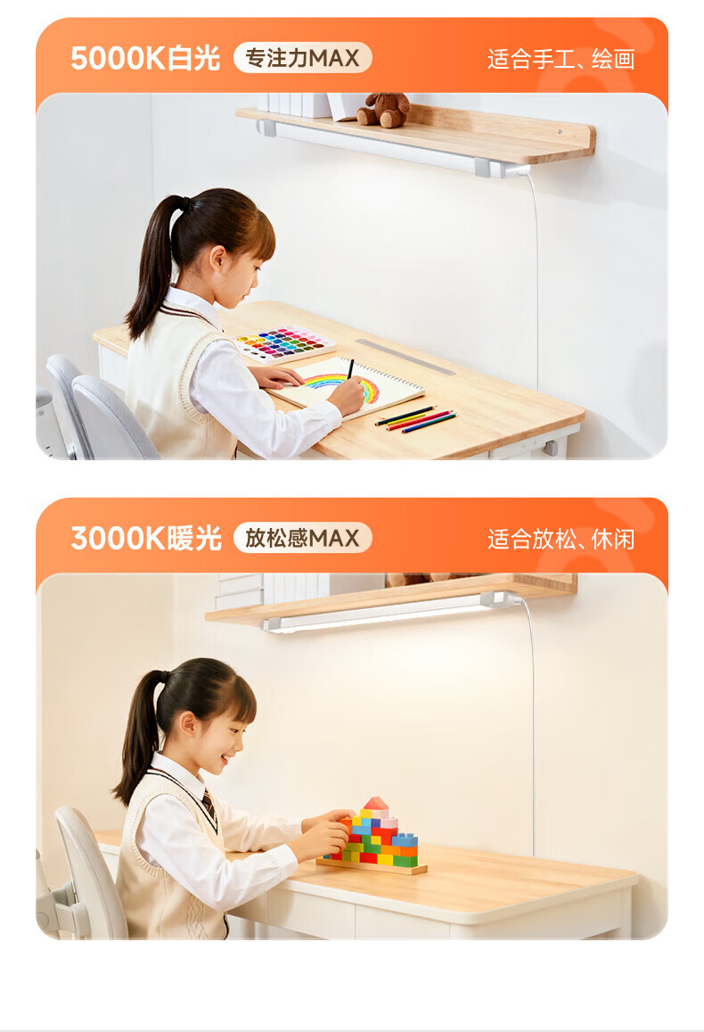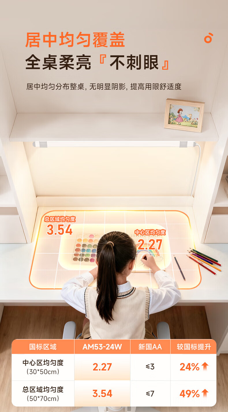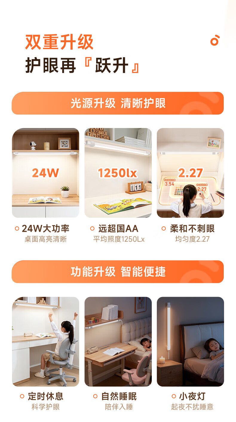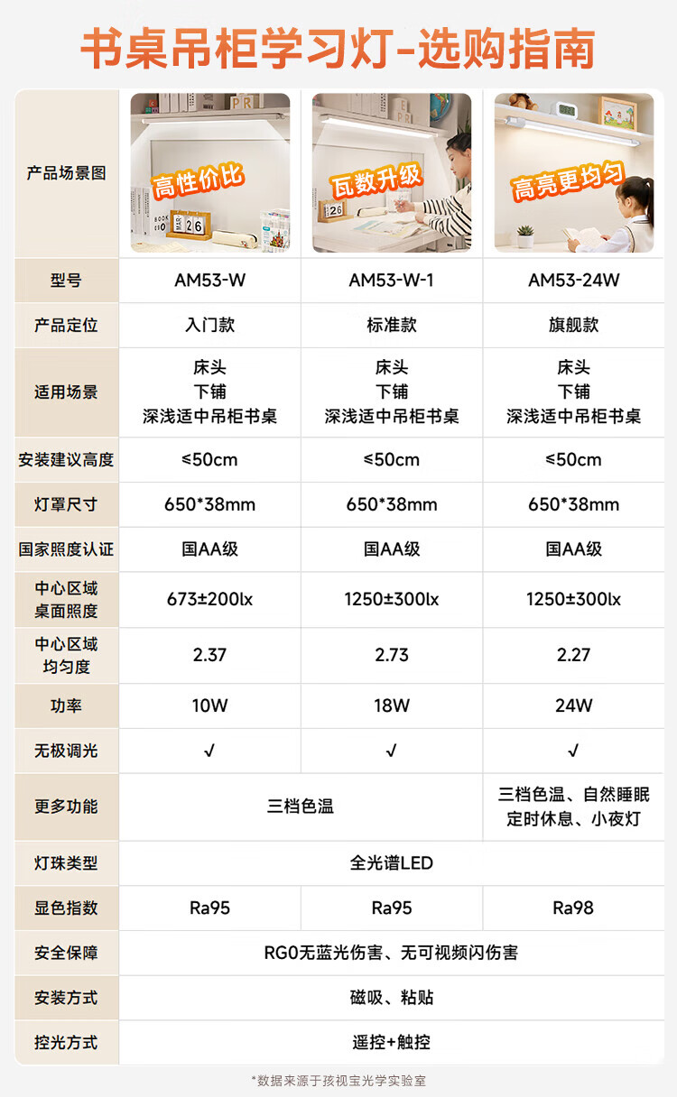 孩视宝护眼台灯全光谱壁挂式磁吸灯学生学习宿舍书桌吊柜上下铺学习灯 【24W高亮清晰】升级多功能 AM53-24W