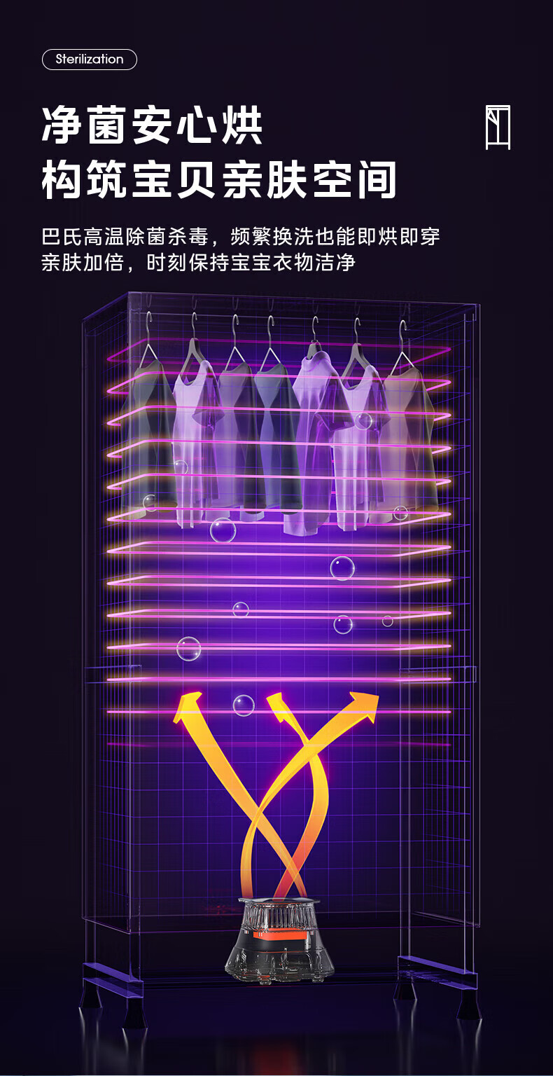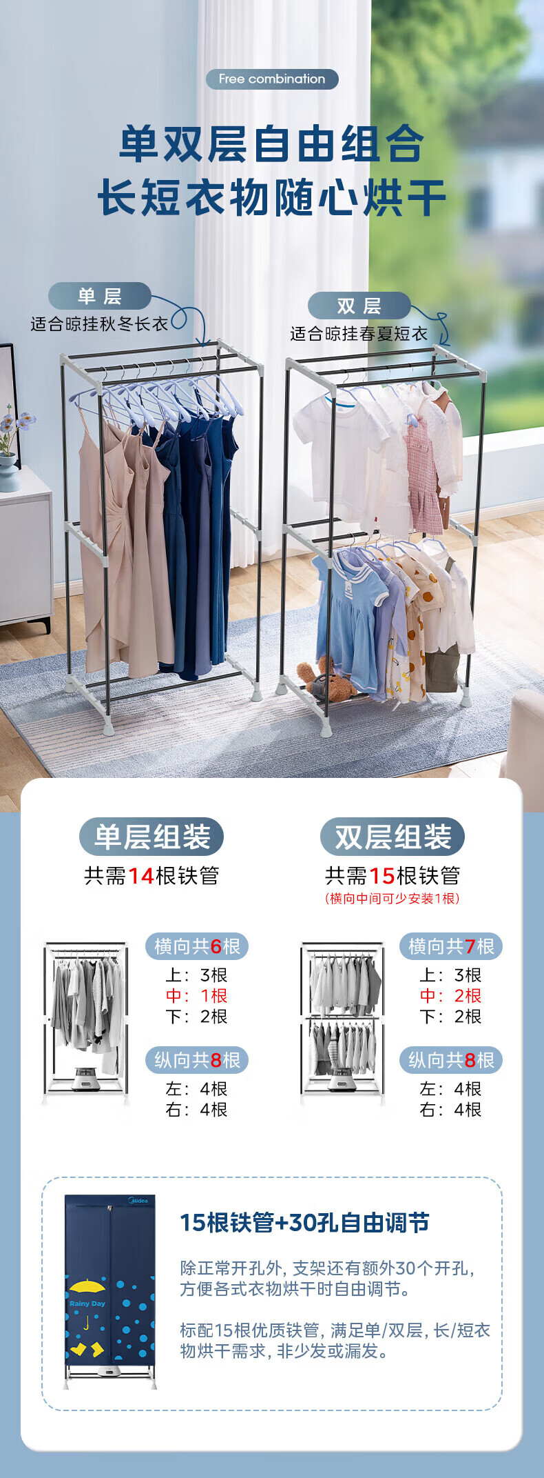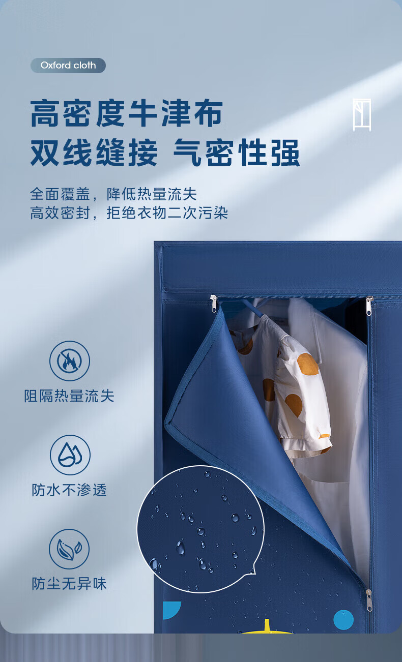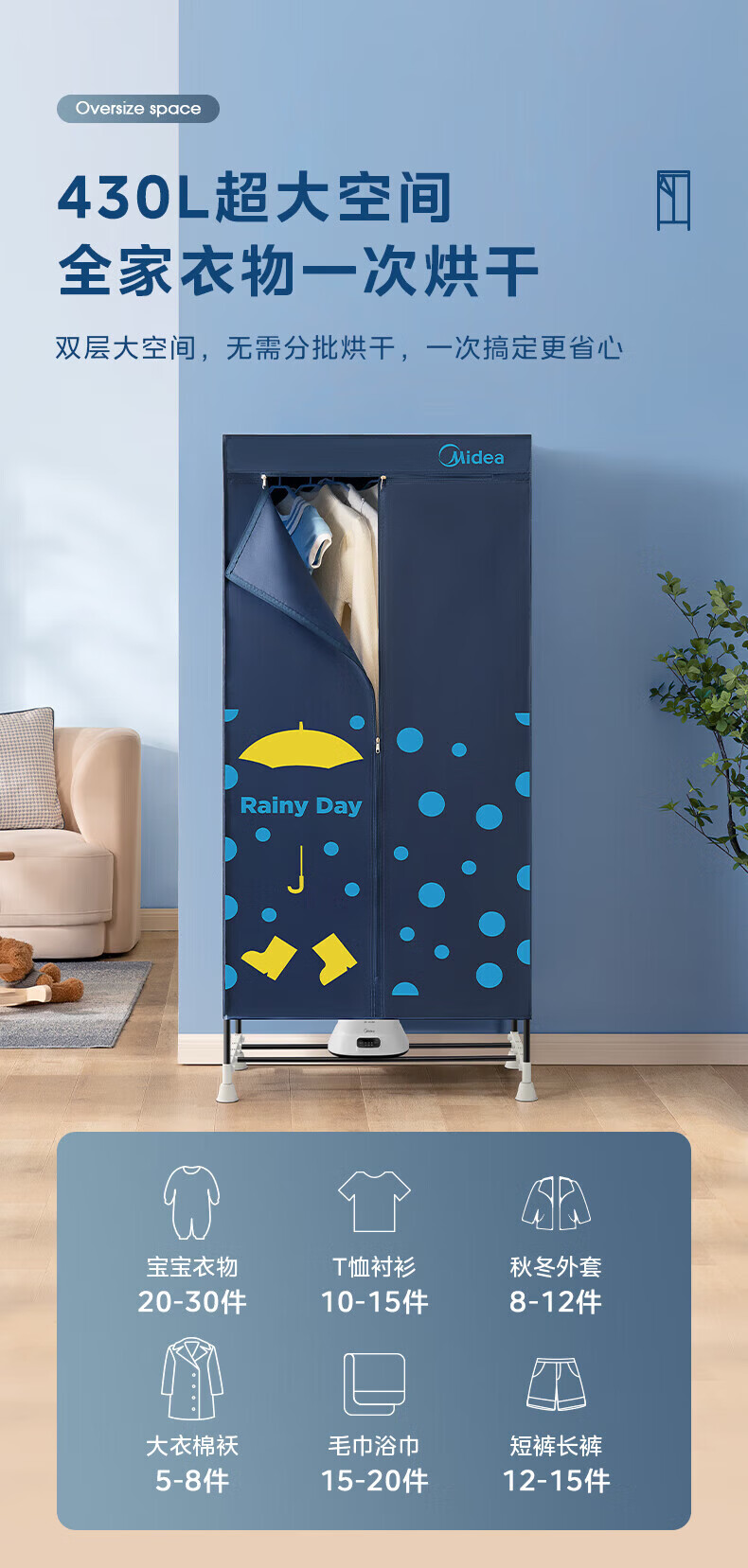 美的(Midea)【430L容量双层】干衣机烘干机家用柜式烘衣机烘干衣柜婴儿衣服内衣风消毒机暖风干衣机衣物护理机 藏青色 430L 家用衣柜式