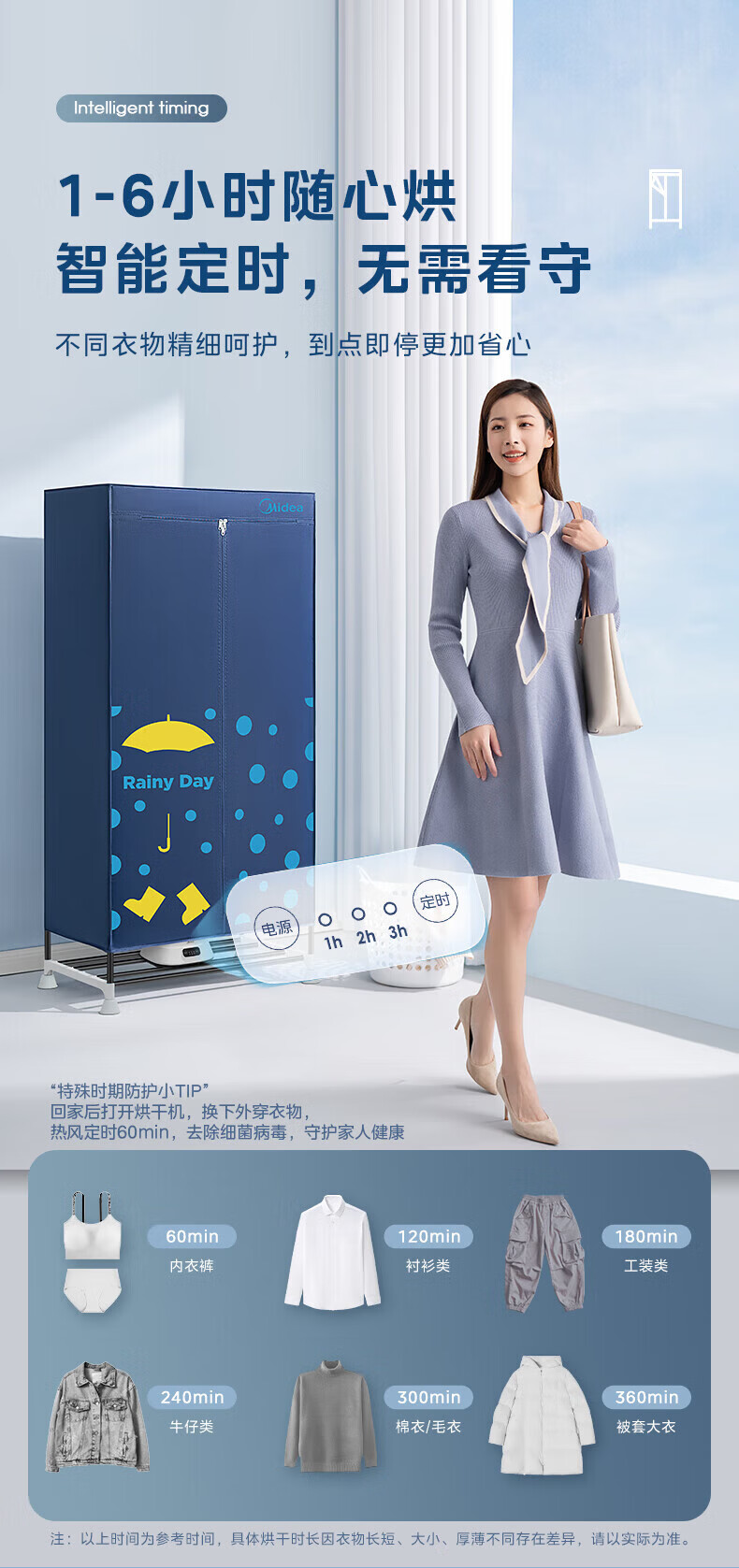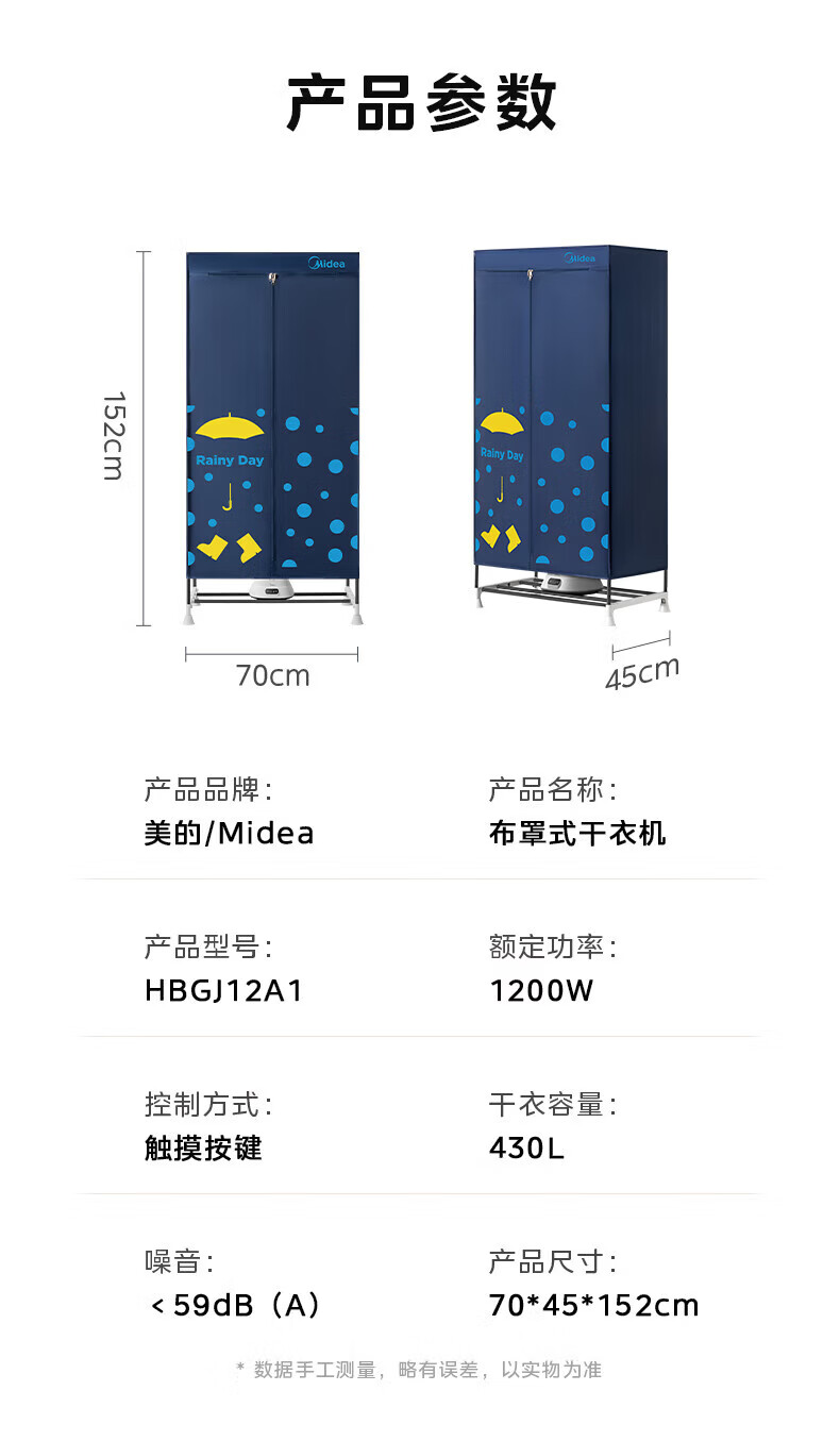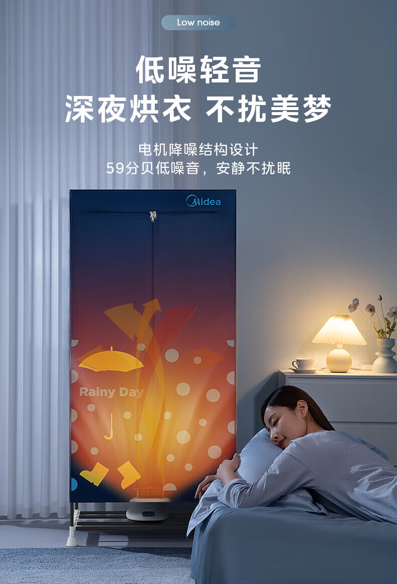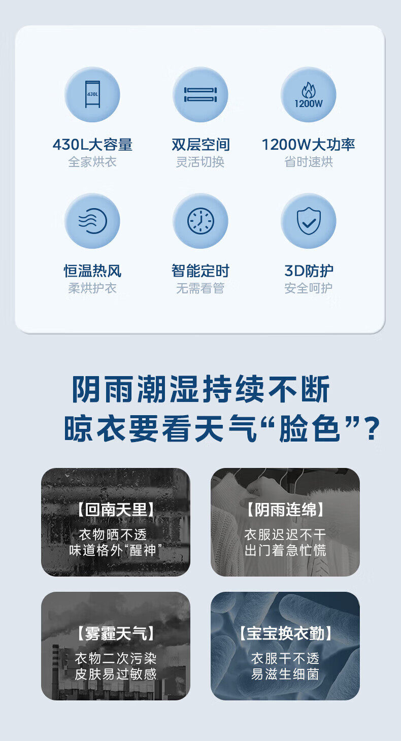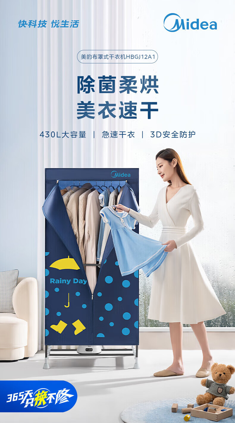 美的(Midea)【430L容量双层】干衣机烘干机家用柜式烘衣机烘干衣柜婴儿衣服内衣风消毒机暖风干衣机衣物护理机 藏青色 430L 家用衣柜式