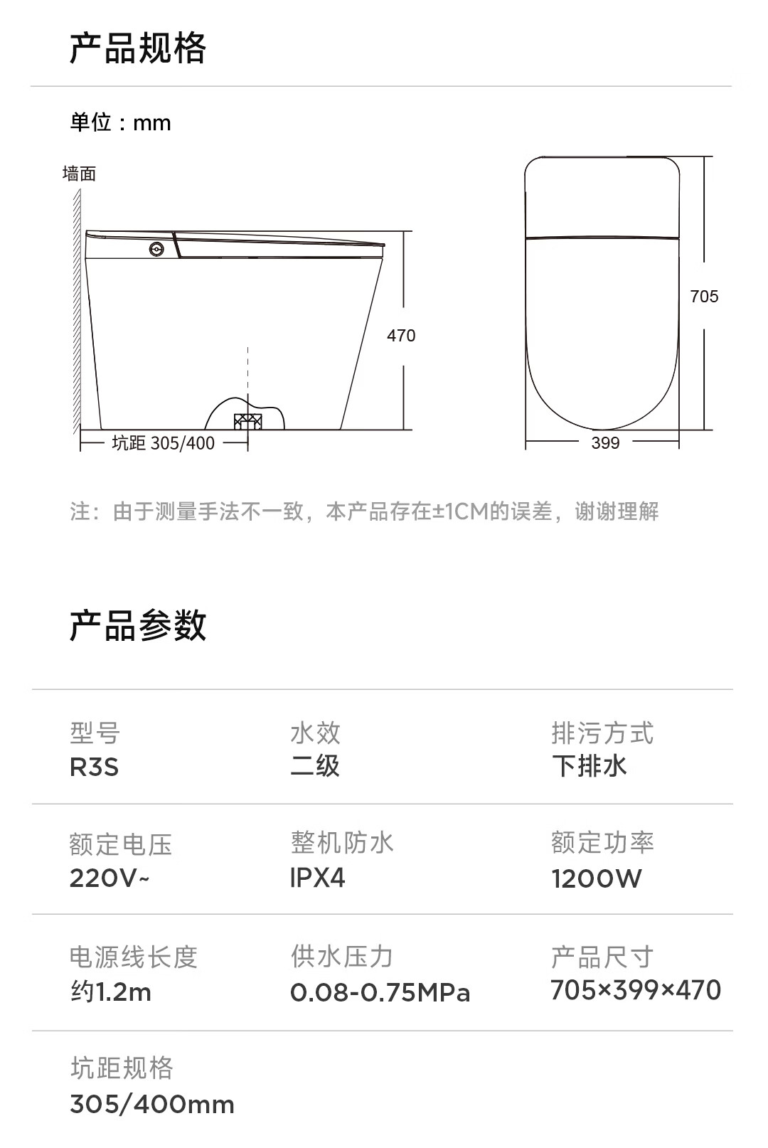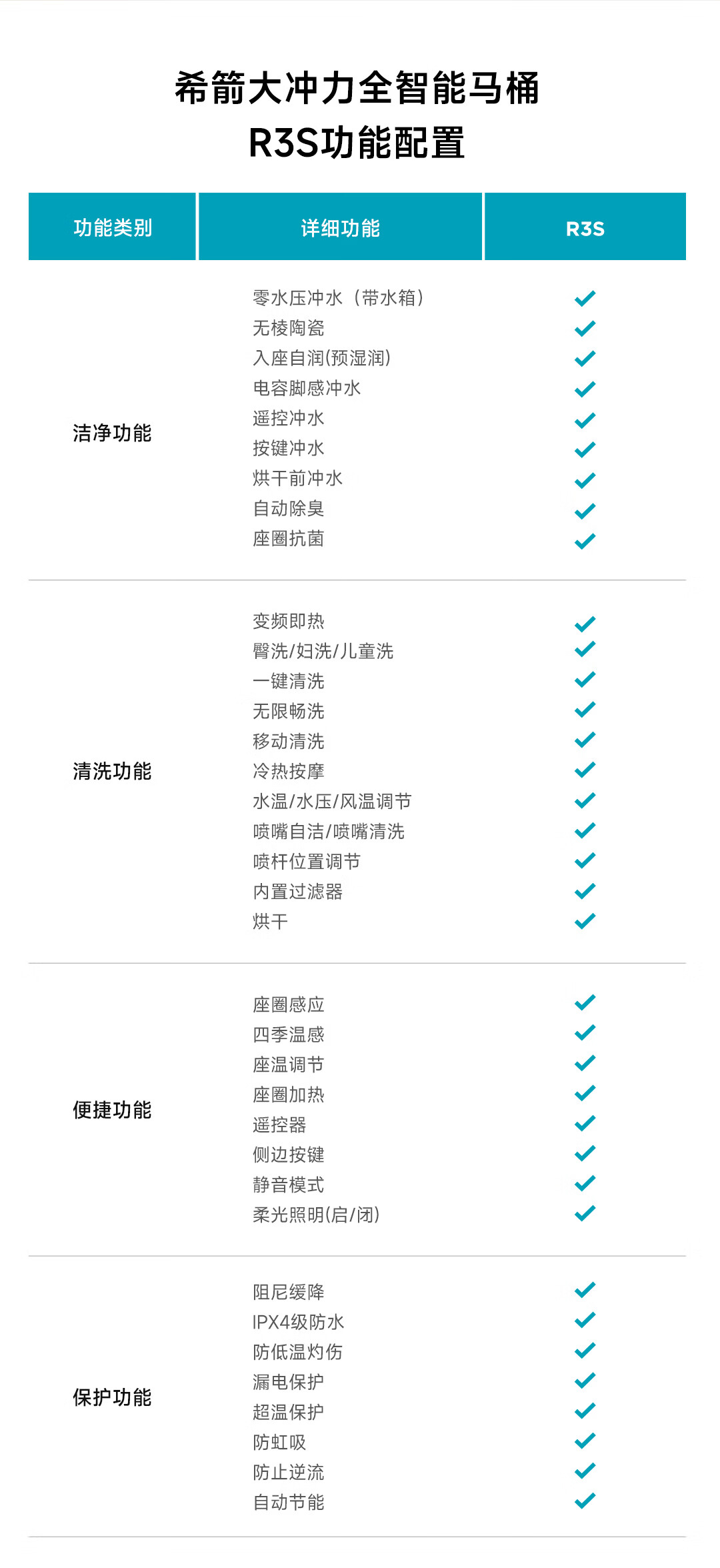 希箭(HOROW)R3S零水压电容脚感冲水无棱内壁基础款全智能马桶O2O(不含安装) 305/300mm