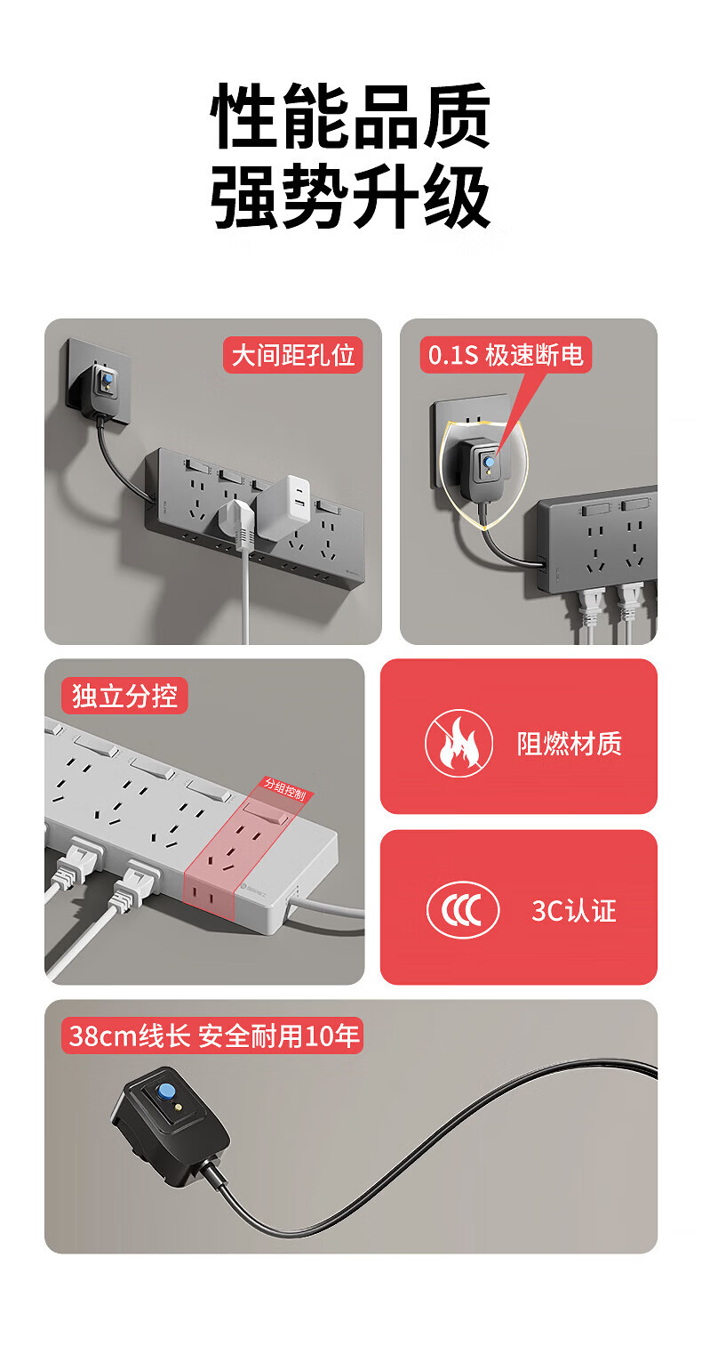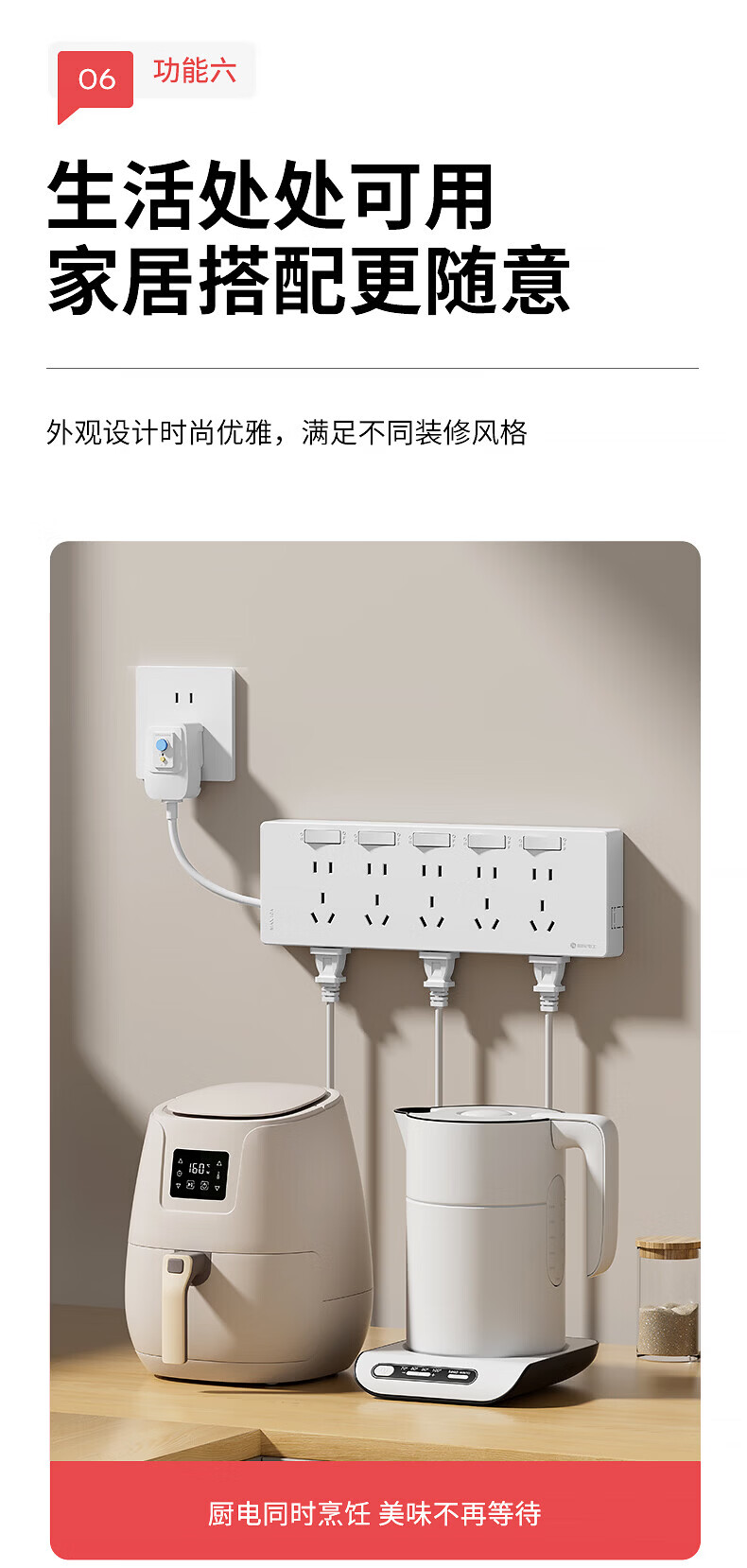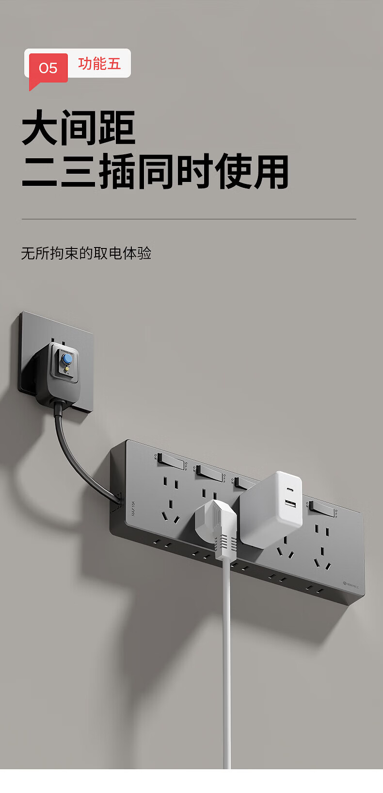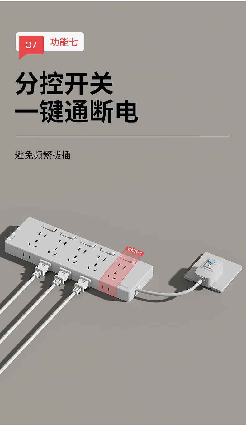 国际电工(FDD)家用厨房漏电保护插座带线扩展插排直插式分控多功能墙壁插座 白色带漏保【3开21孔】向右扩展