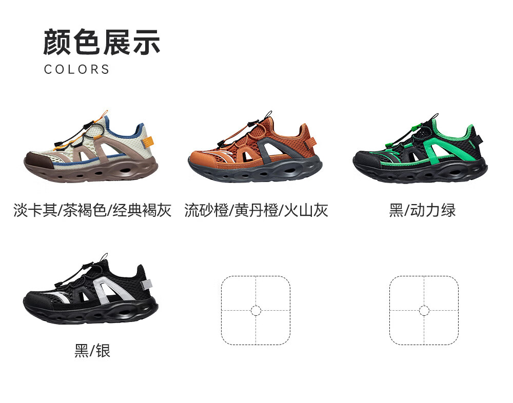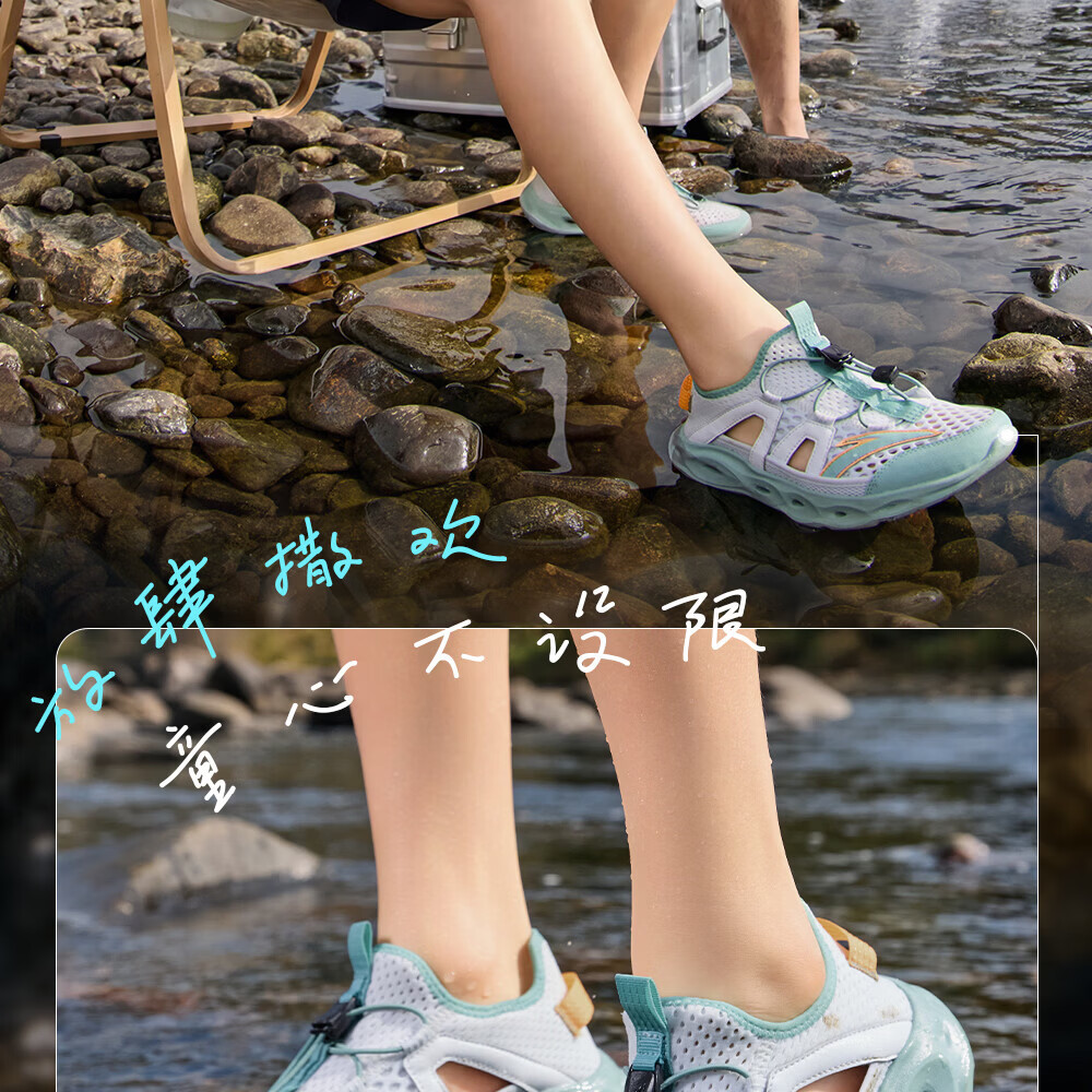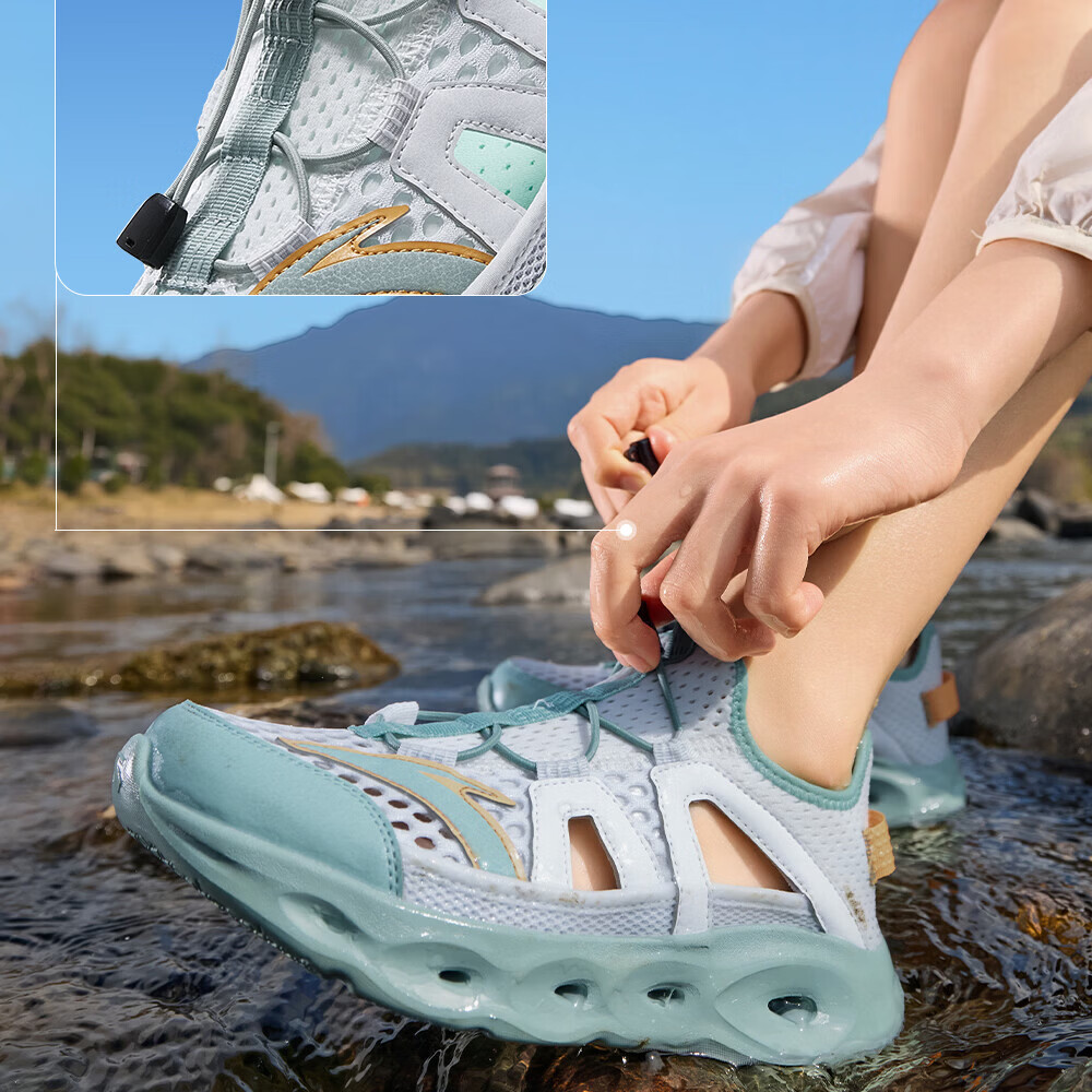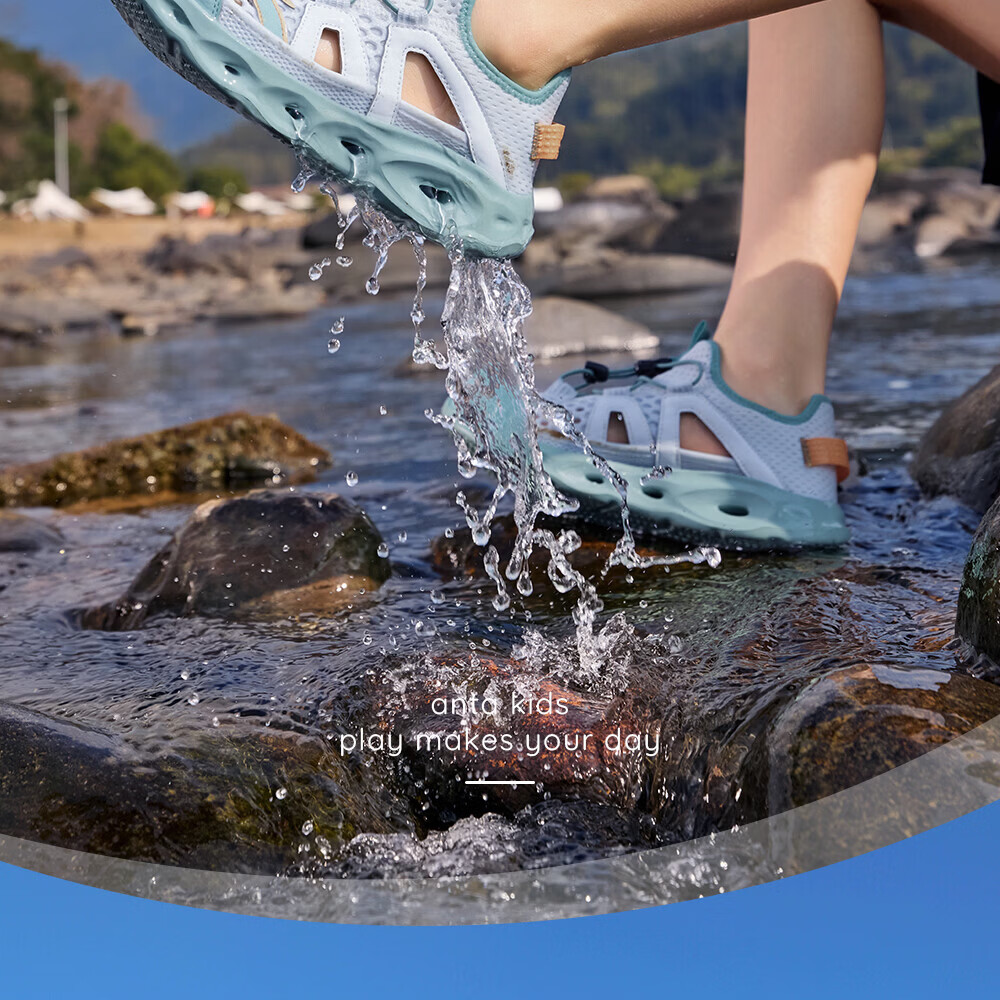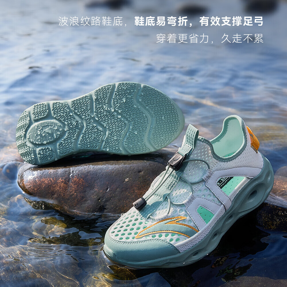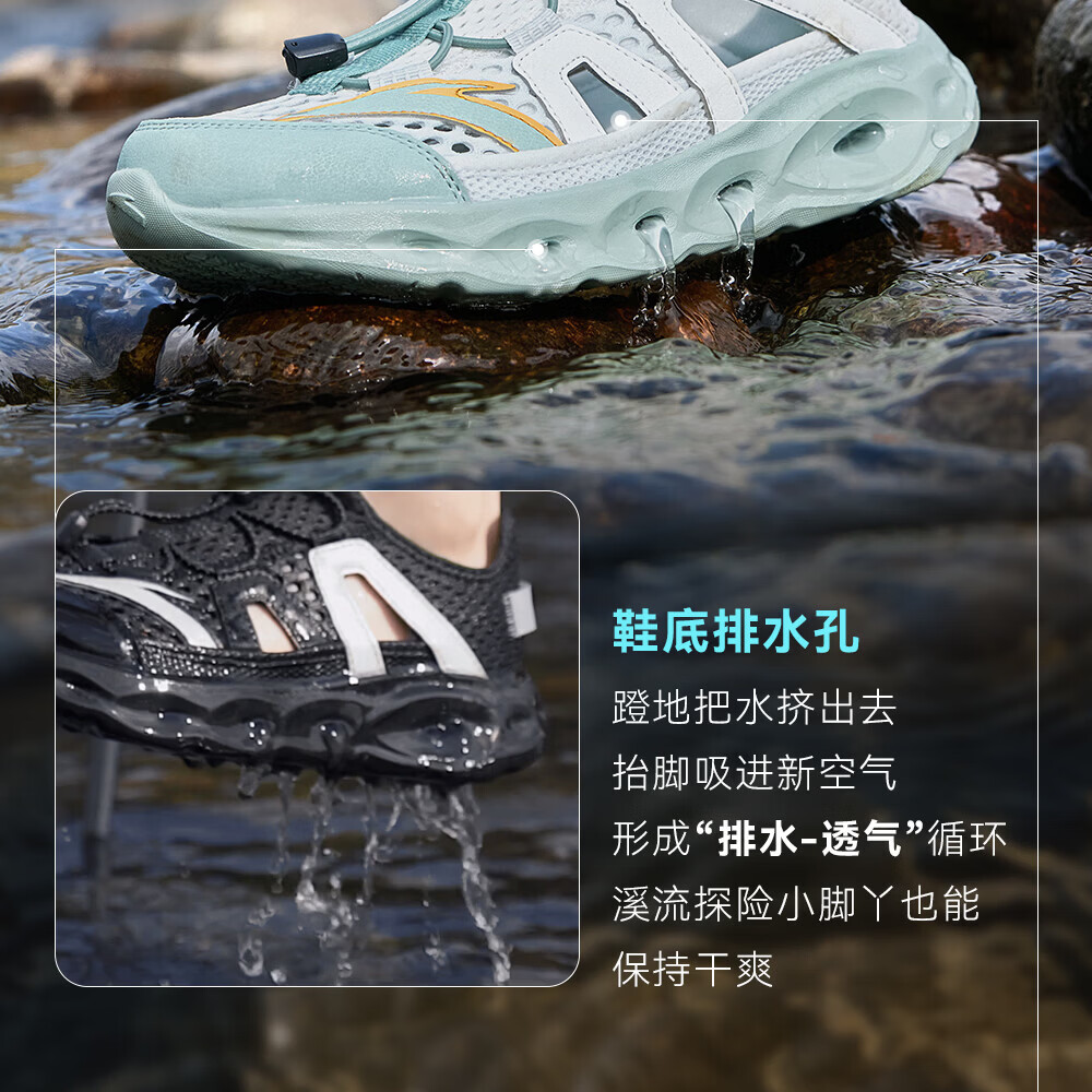 安踏儿童凉鞋男女童踩水王溯溪鞋2026年夏季户外速干学生包头抽绳鞋 【男】草白灰/浅烟绿-1 37