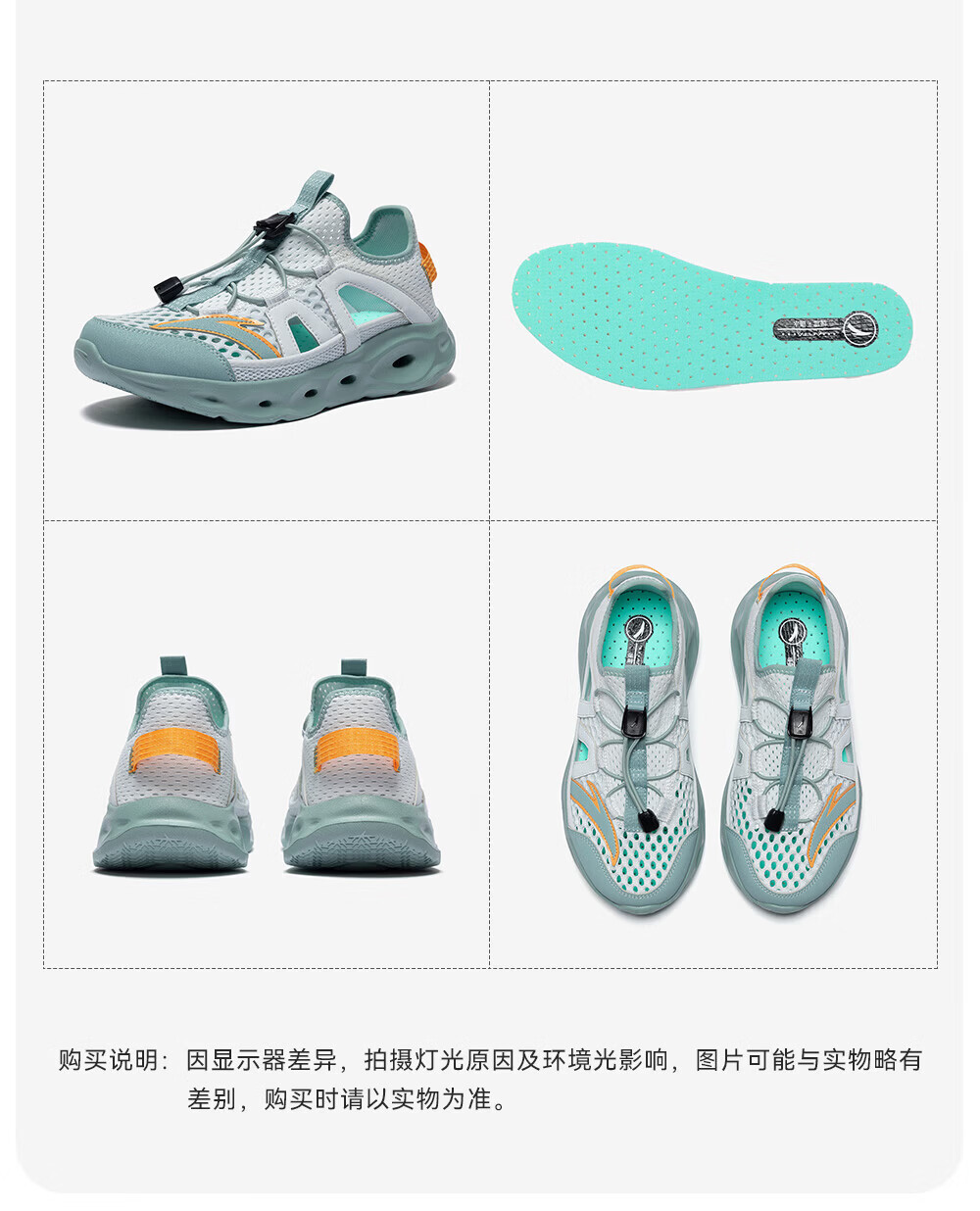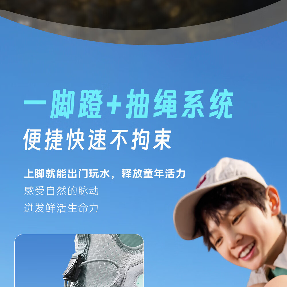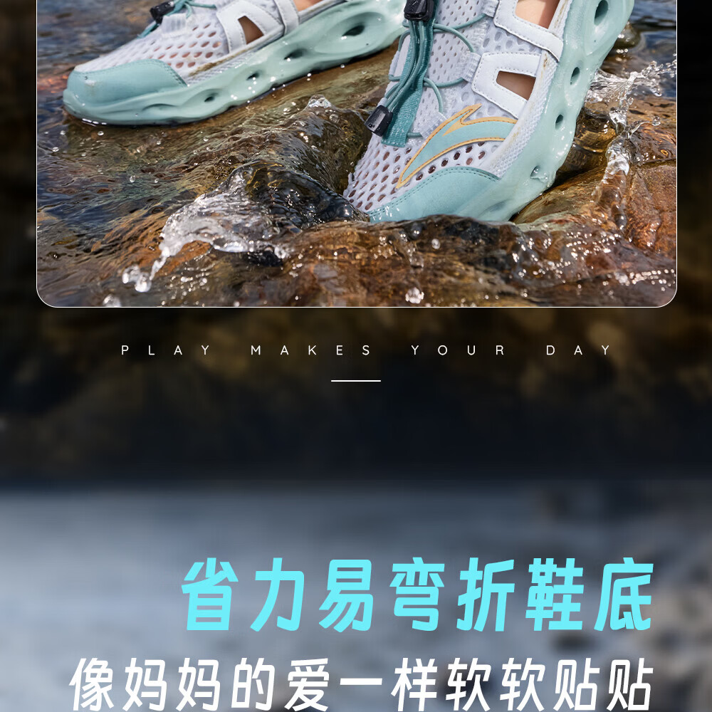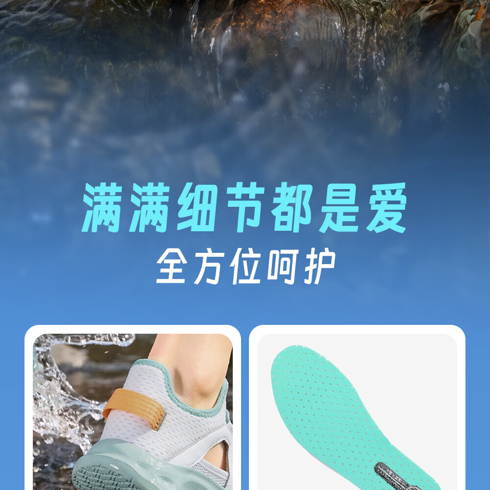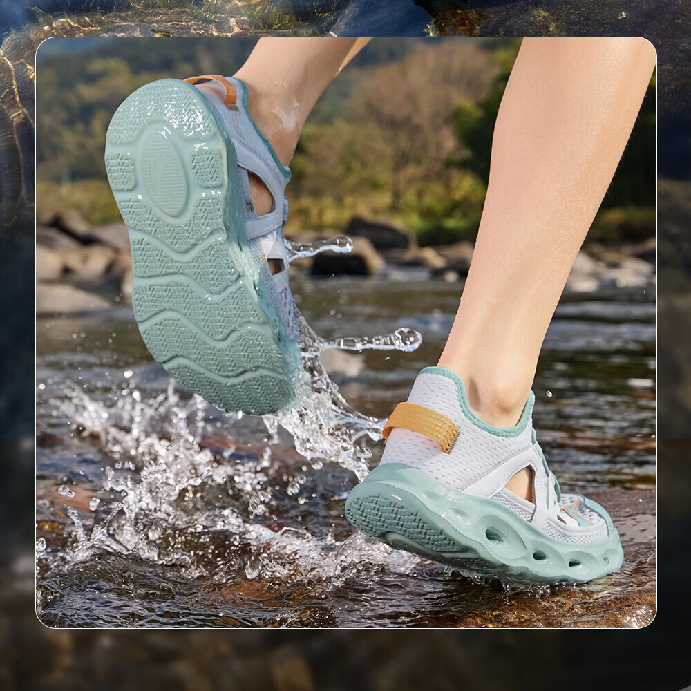 安踏儿童凉鞋男女童踩水王溯溪鞋2026年夏季户外速干学生包头抽绳鞋 【男】草白灰/浅烟绿-1 37