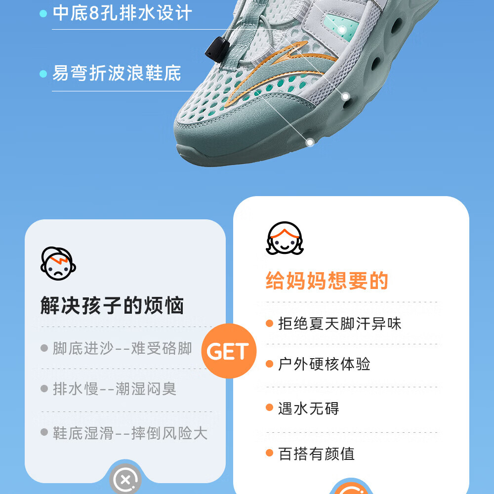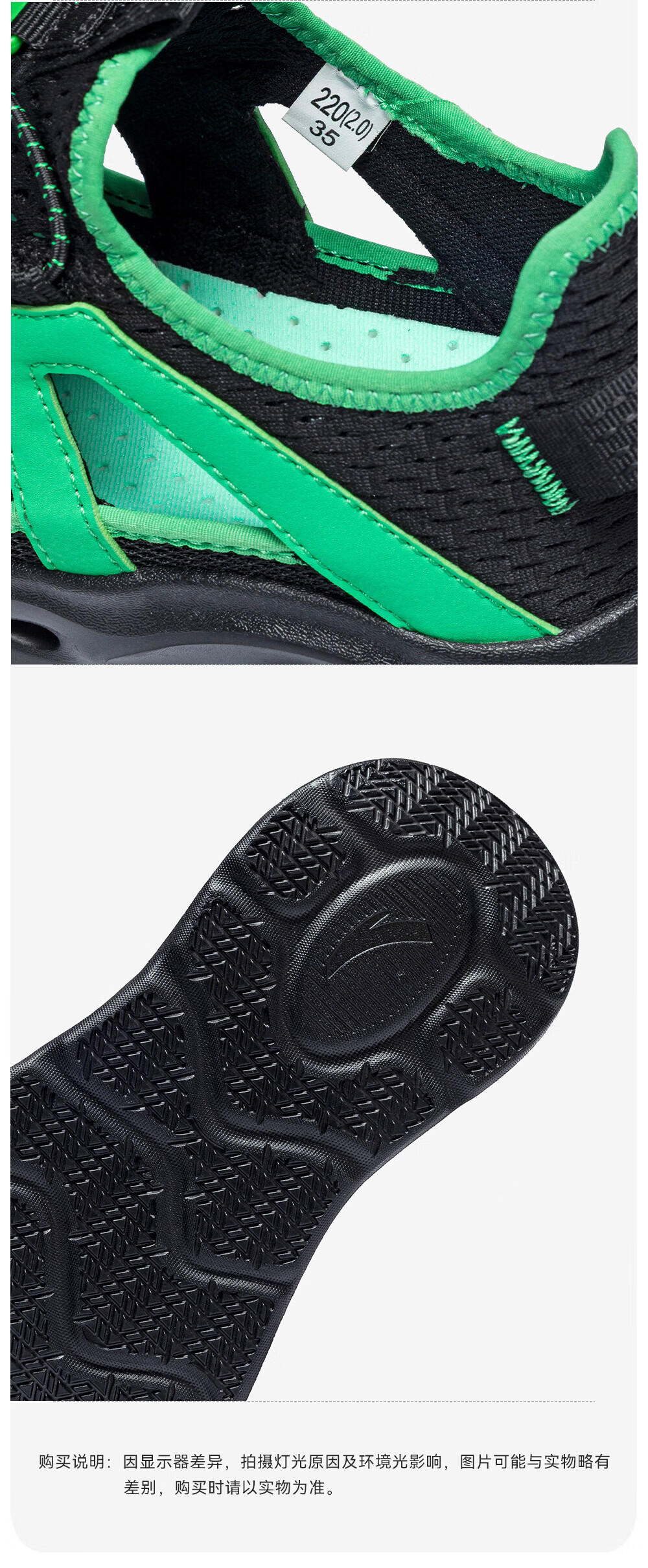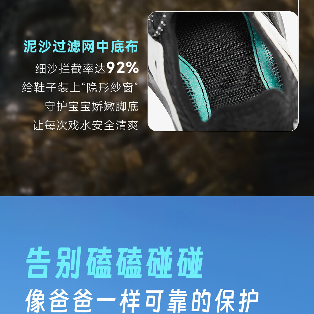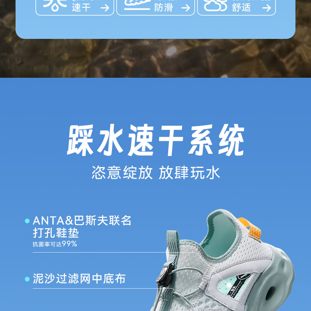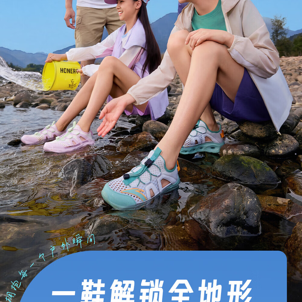 安踏儿童凉鞋男女童踩水王溯溪鞋2026年夏季户外速干学生包头抽绳鞋 【男】草白灰/浅烟绿-1 37