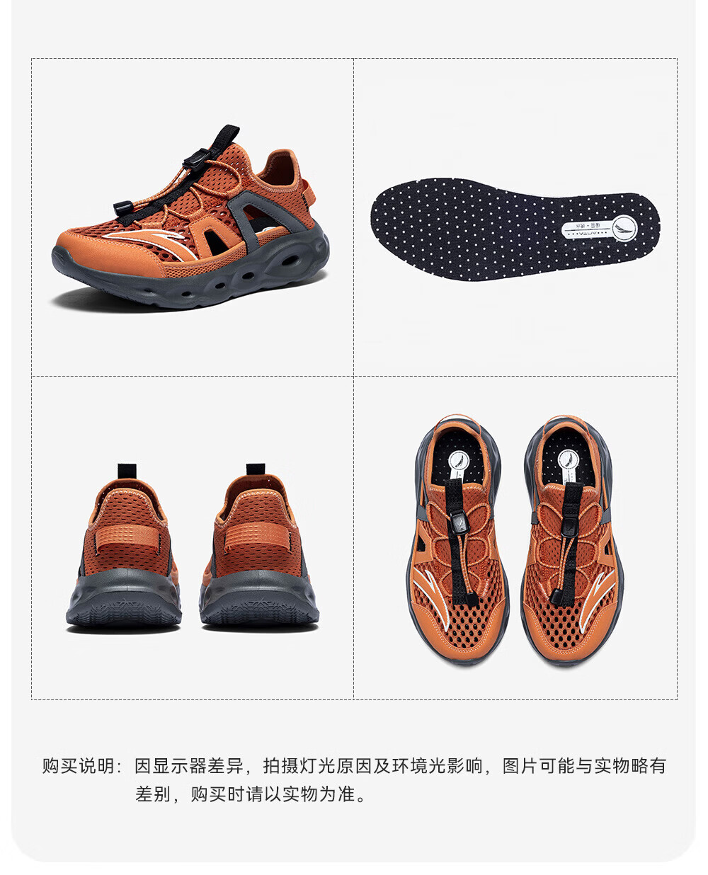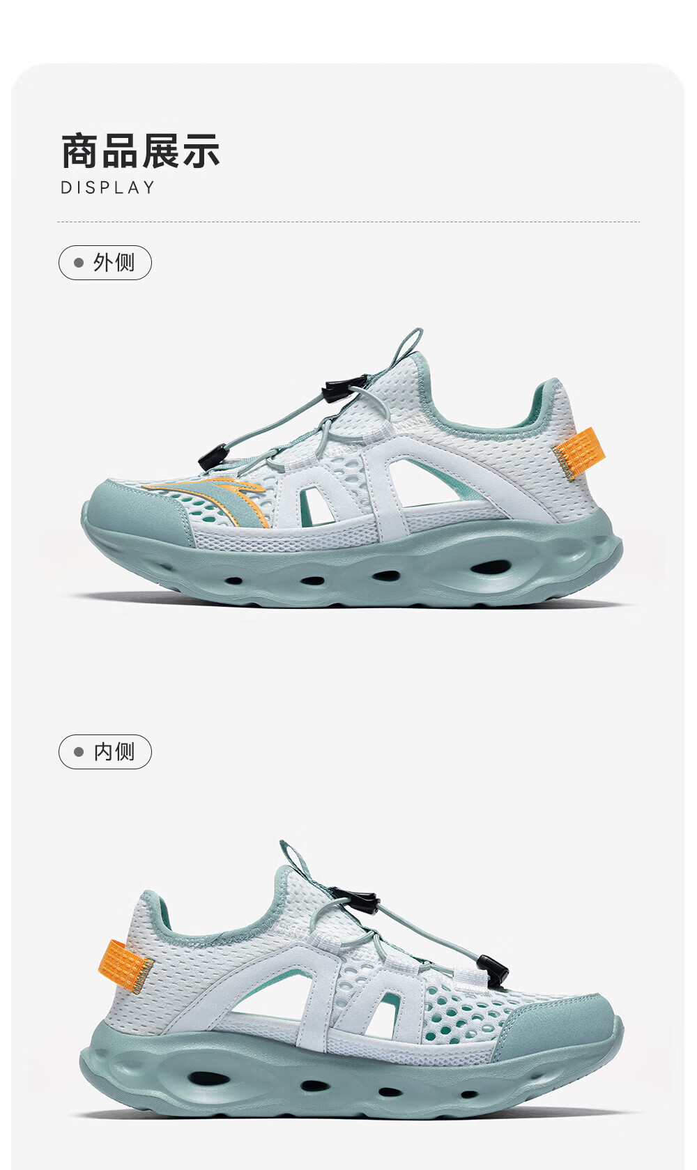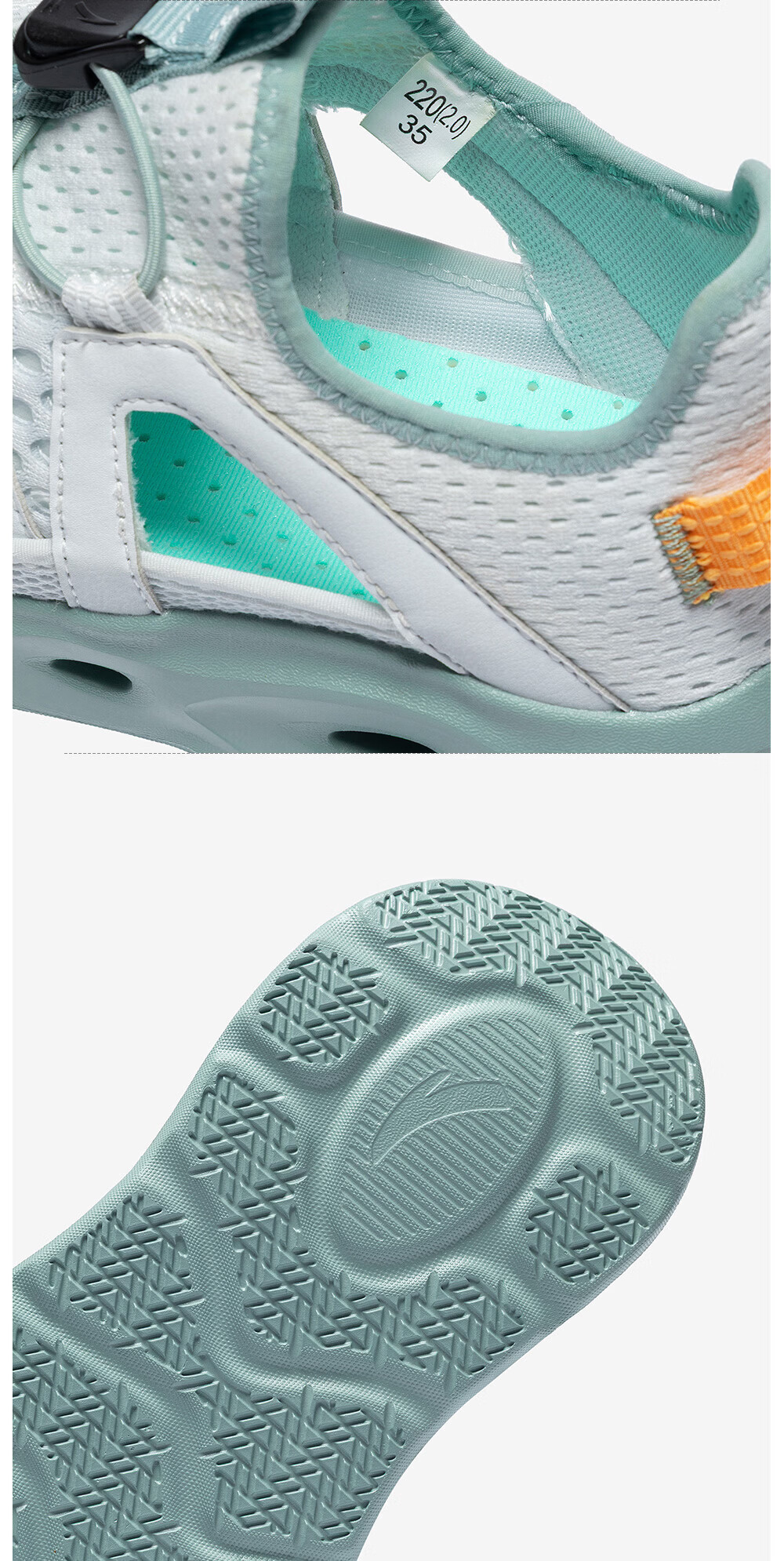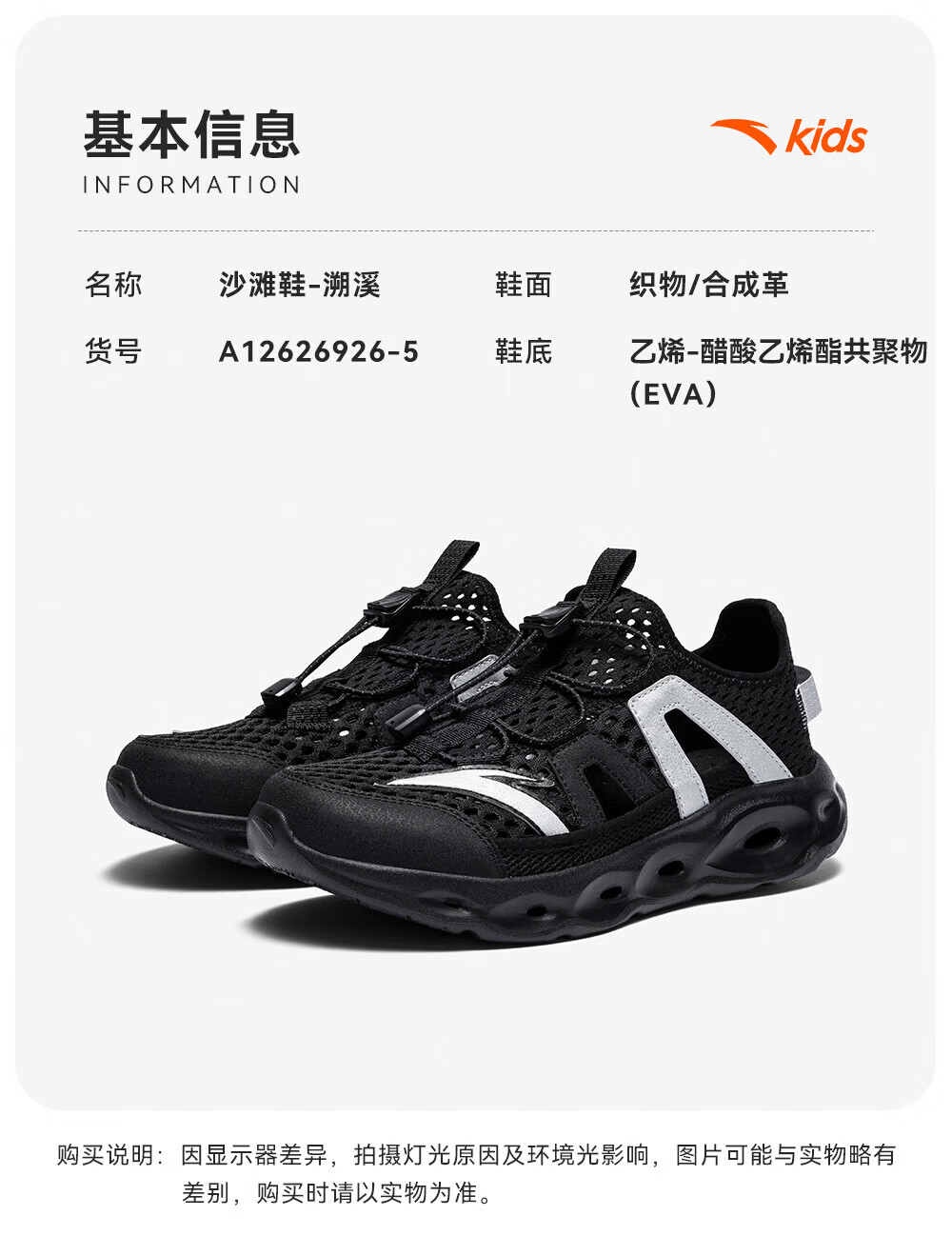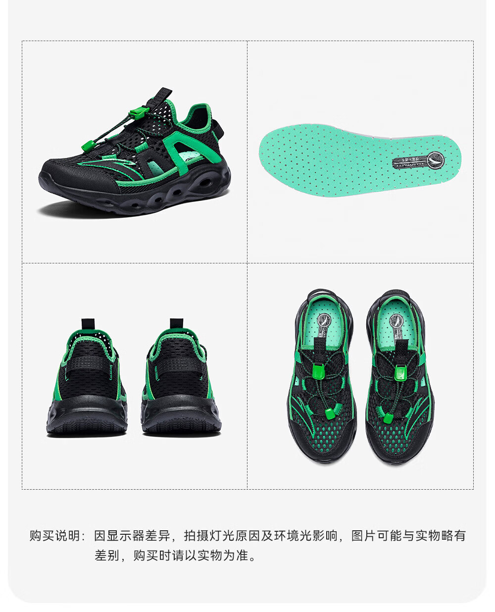 安踏儿童凉鞋男女童踩水王溯溪鞋2026年夏季户外速干学生包头抽绳鞋 【男】草白灰/浅烟绿-1 37