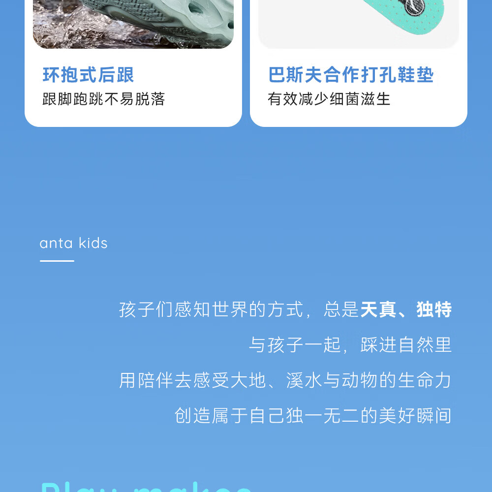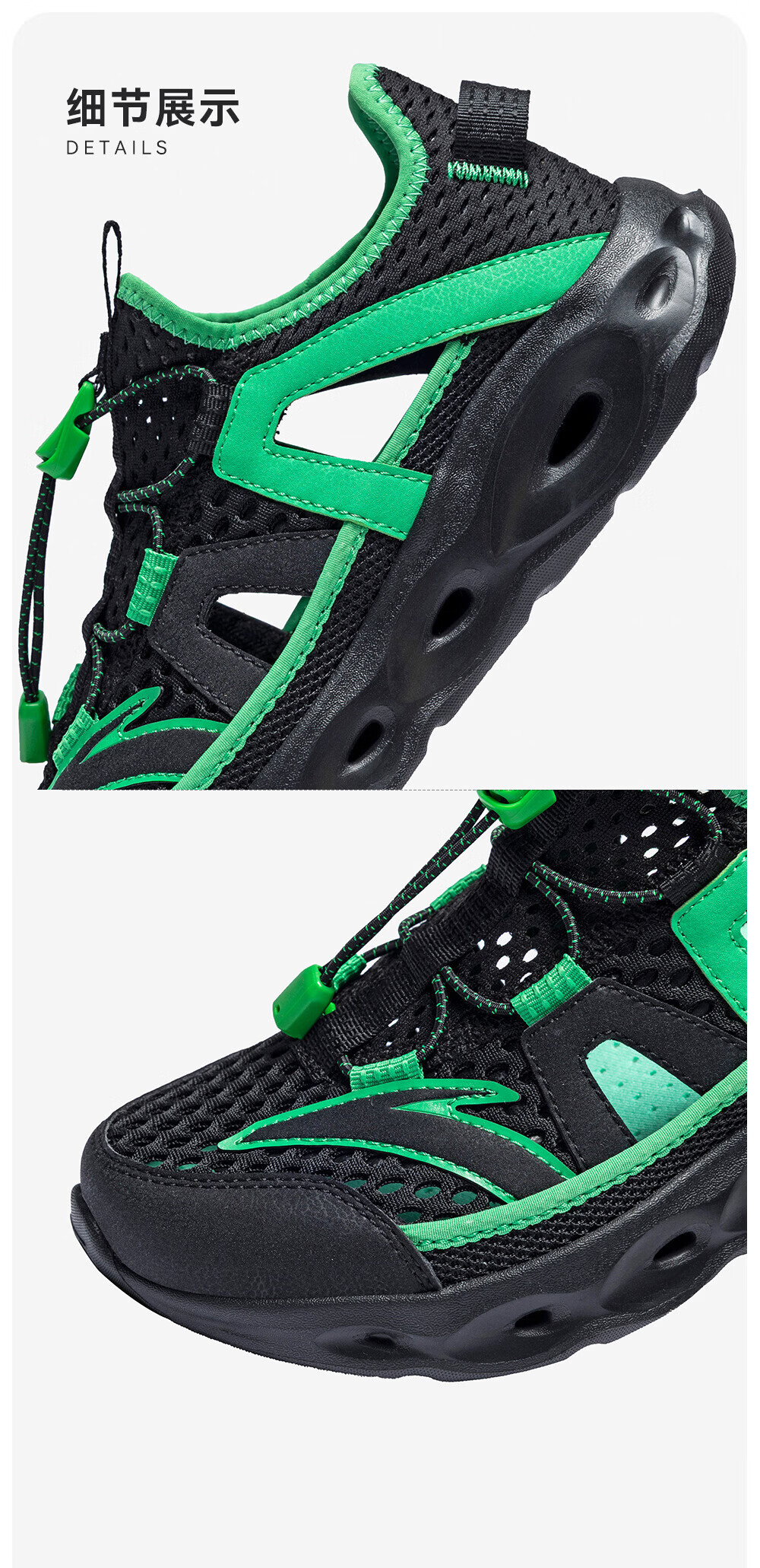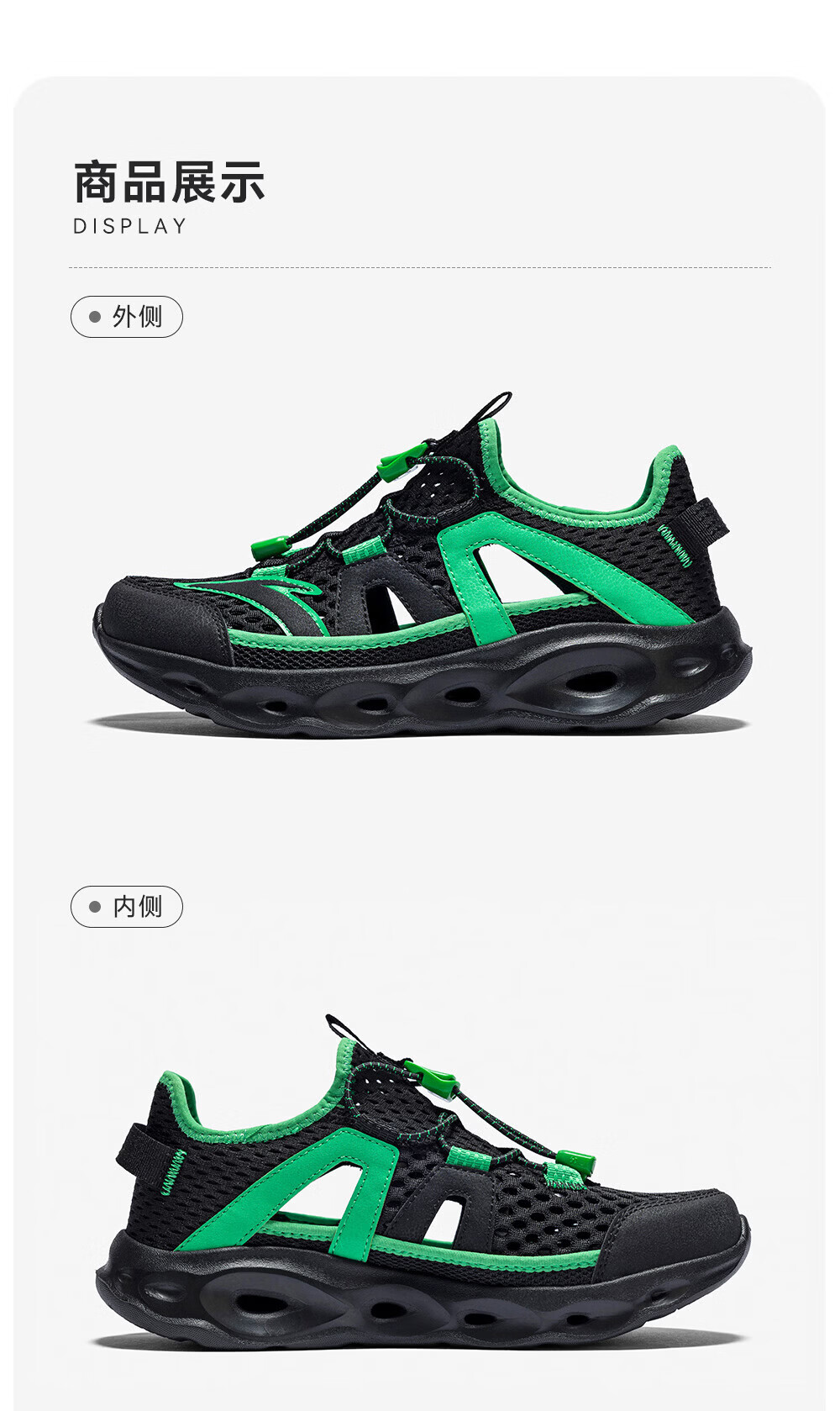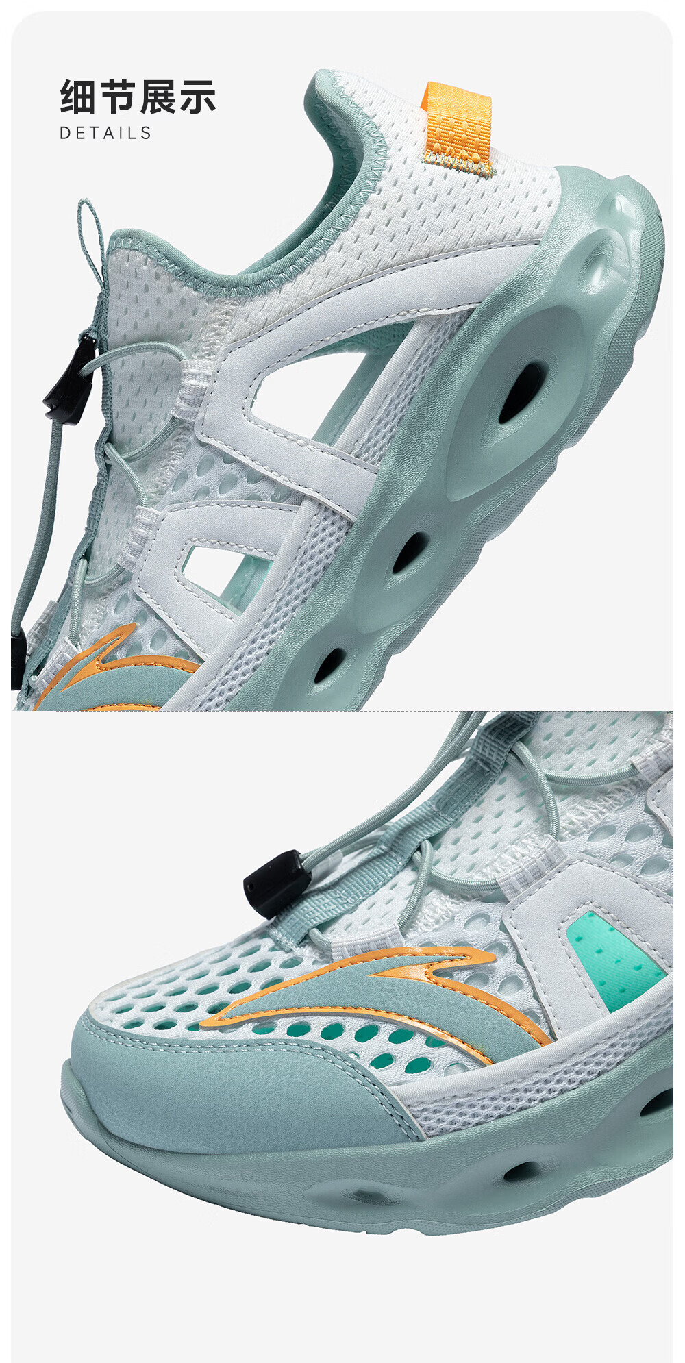 安踏儿童凉鞋男女童踩水王溯溪鞋2026年夏季户外速干学生包头抽绳鞋 【男】草白灰/浅烟绿-1 37