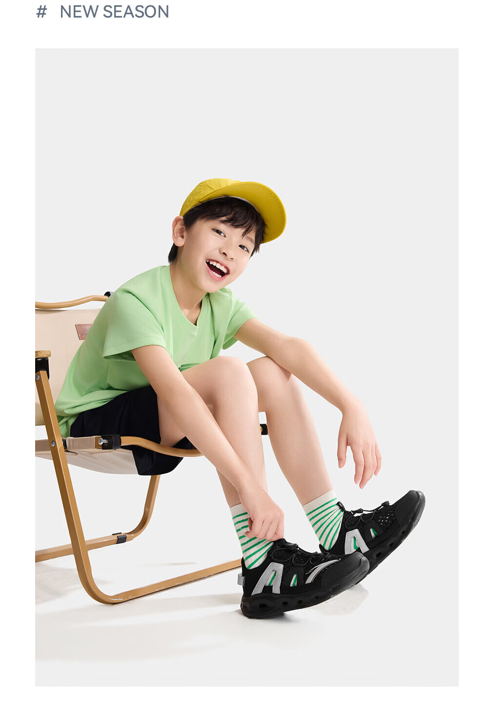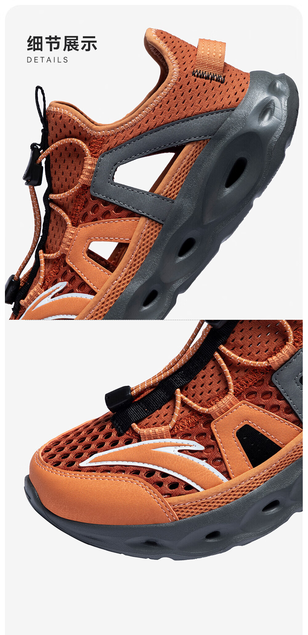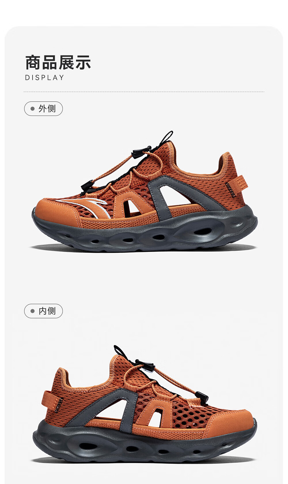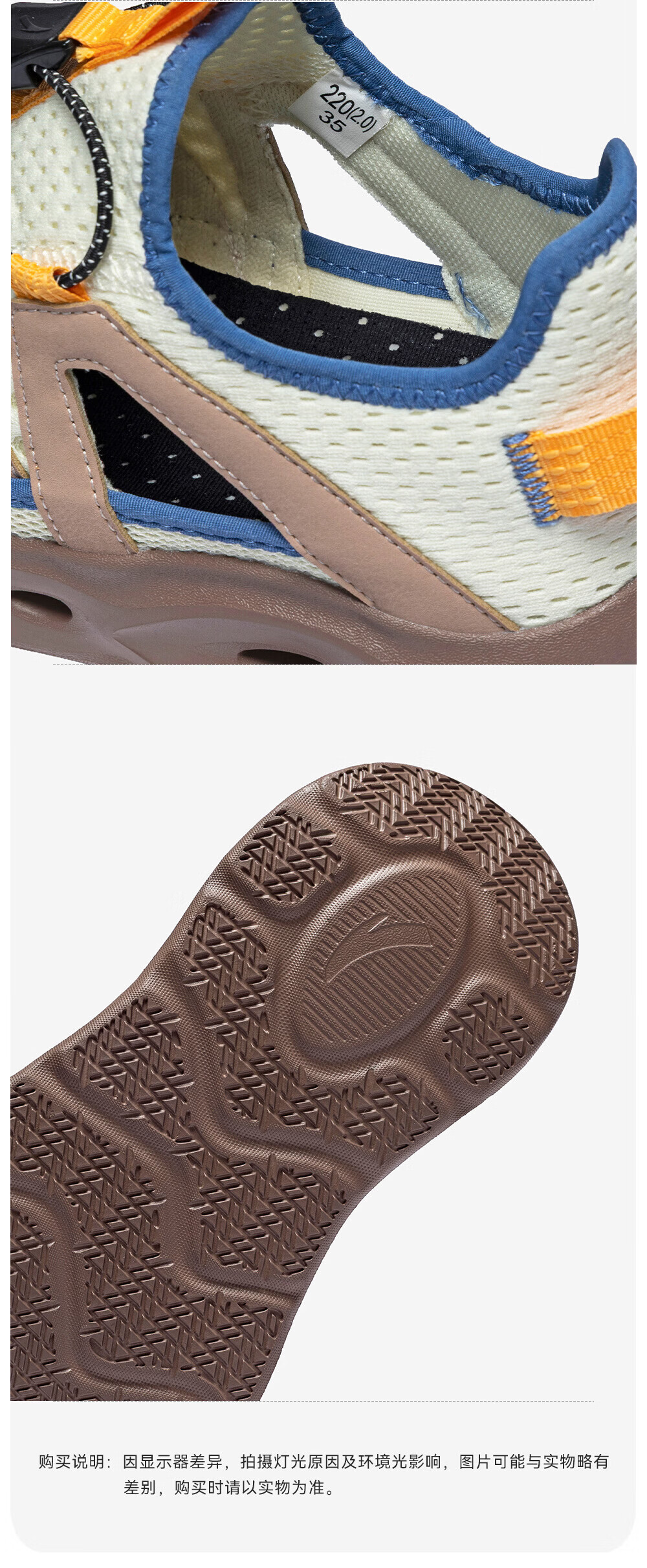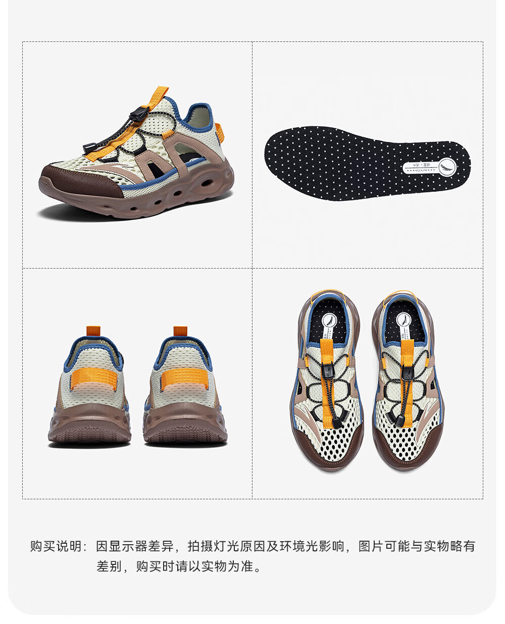 安踏儿童凉鞋男女童踩水王溯溪鞋2026年夏季户外速干学生包头抽绳鞋 【男】草白灰/浅烟绿-1 37