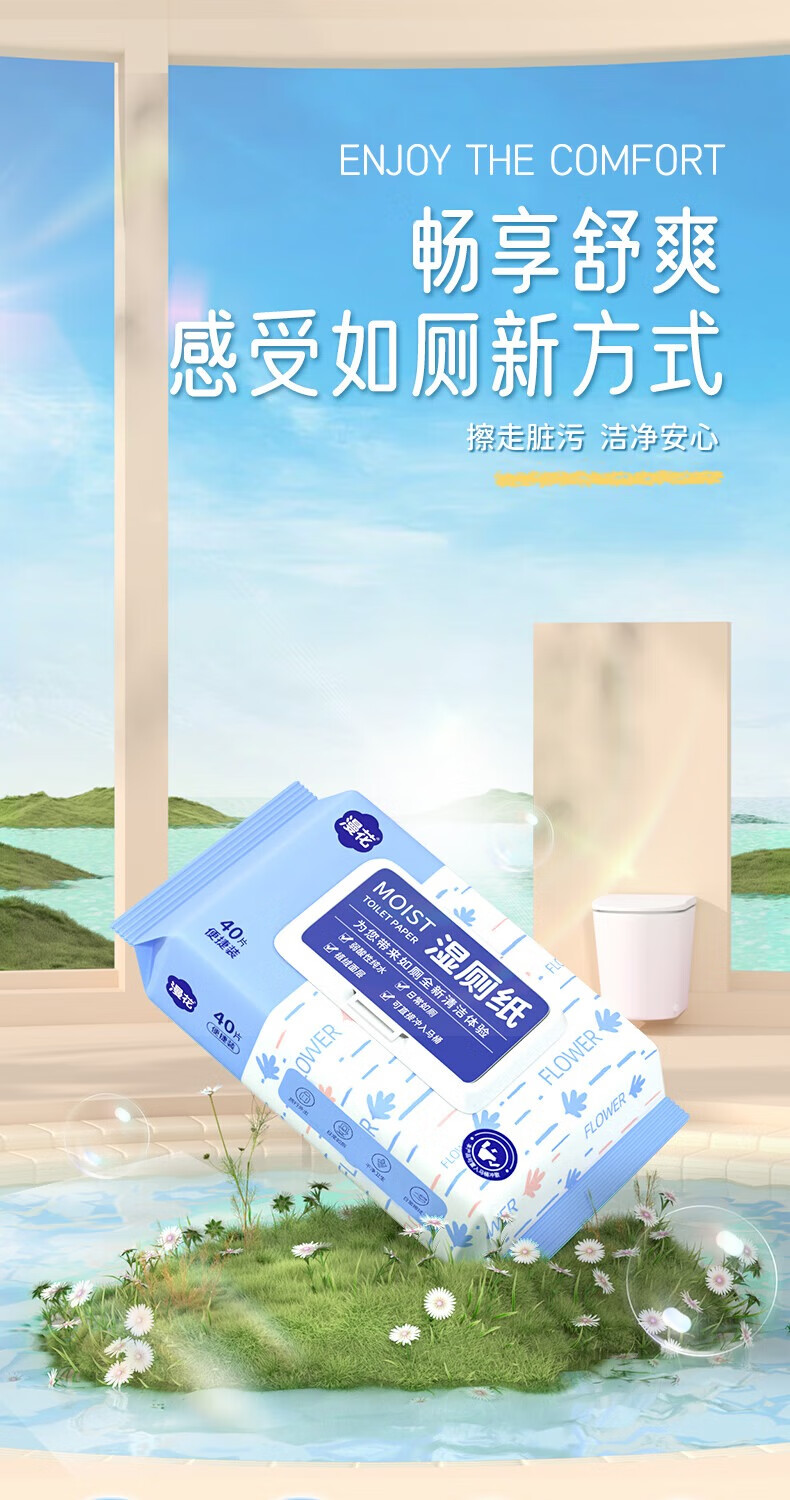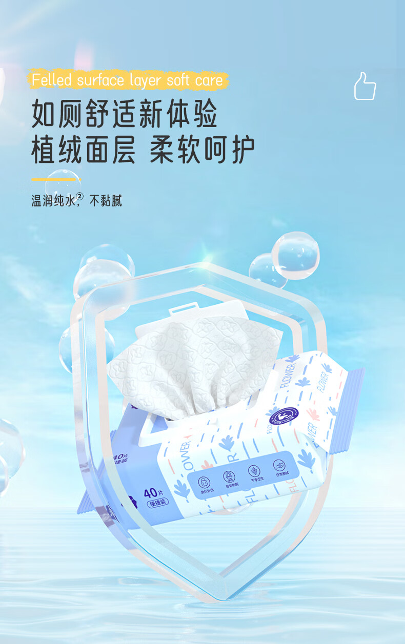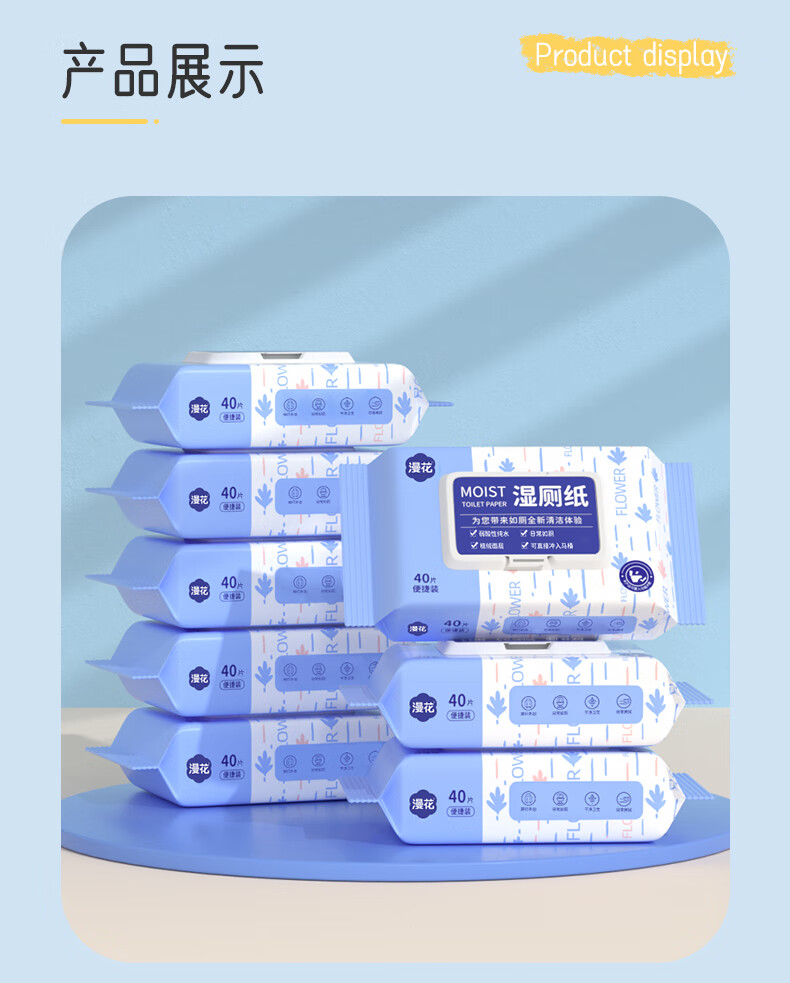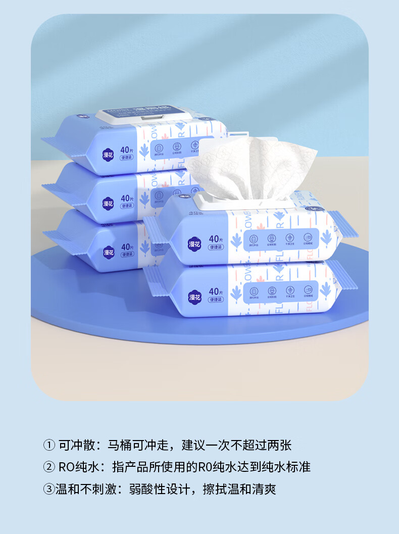 漫花湿厕纸家庭装洁厕湿巾男女清洁卫生湿纸巾 蓝色湿厕纸 40抽*1包