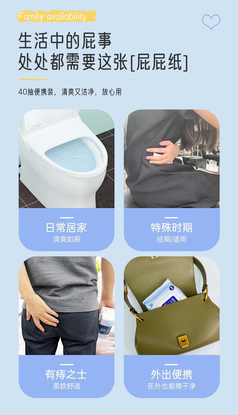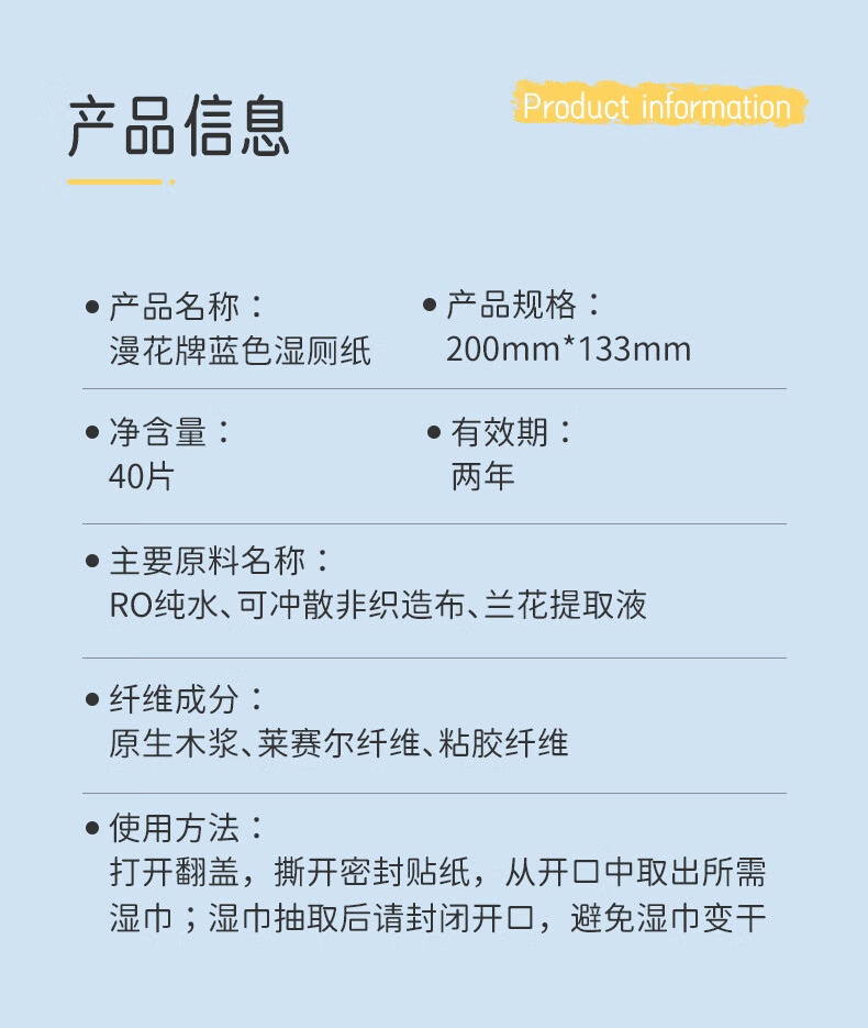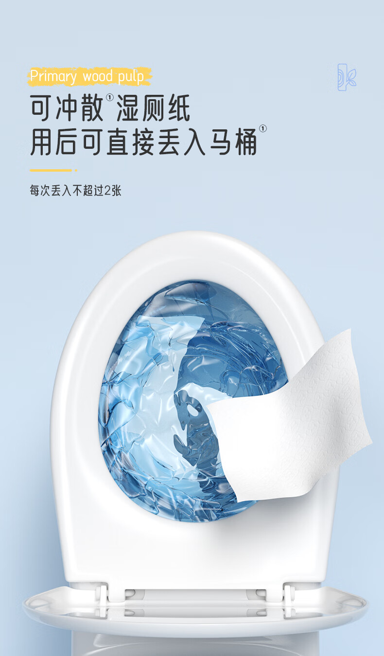 漫花湿厕纸家庭装洁厕湿巾男女清洁卫生湿纸巾 蓝色湿厕纸 40抽*1包