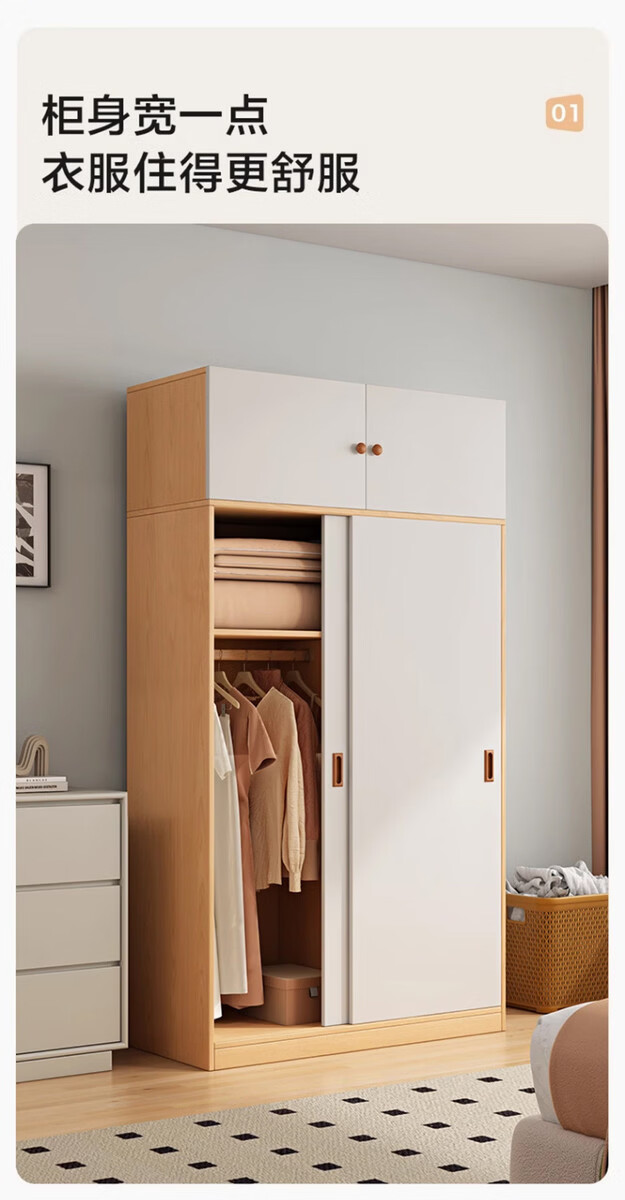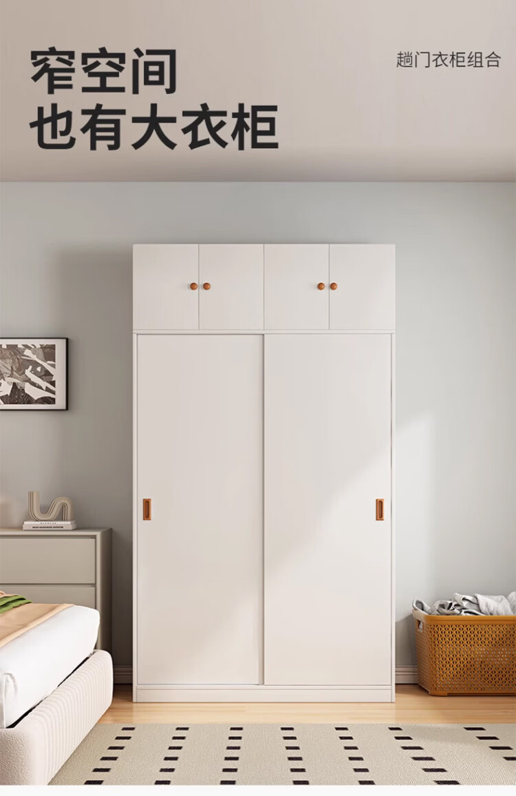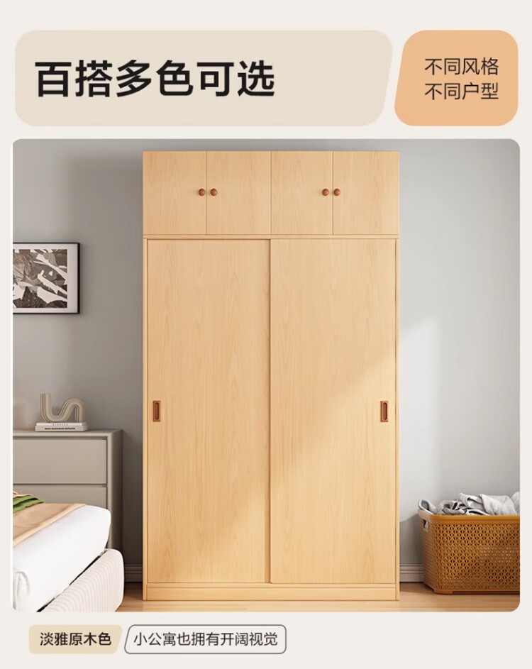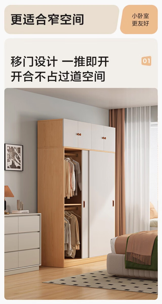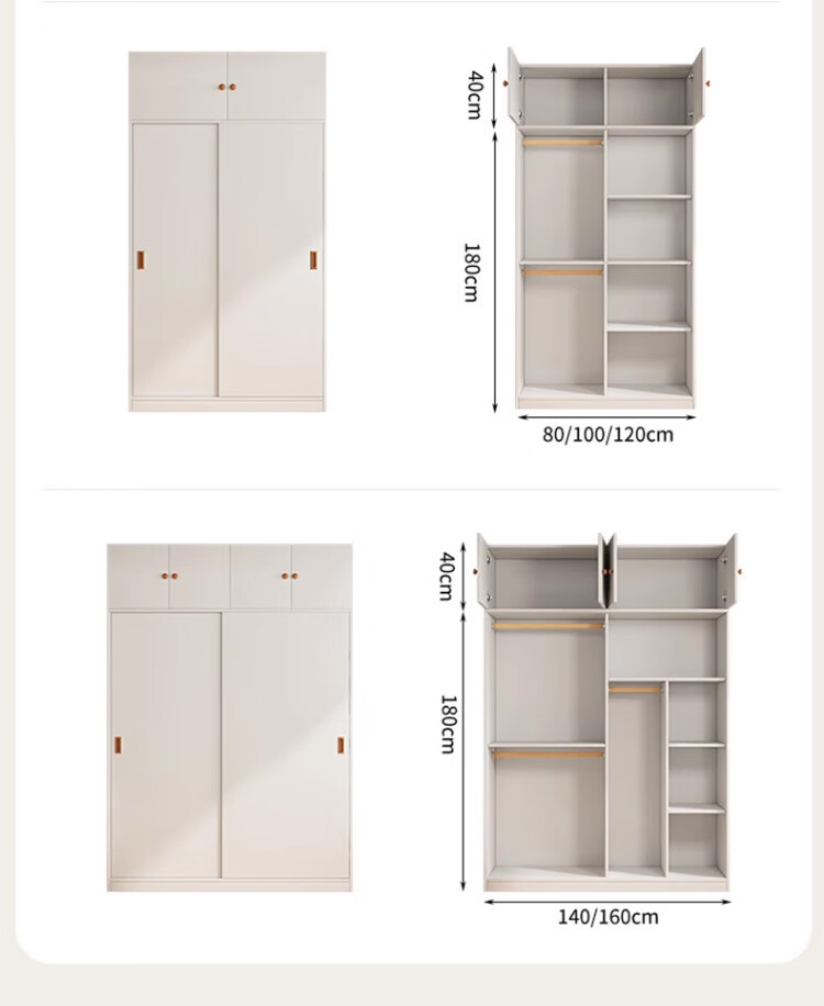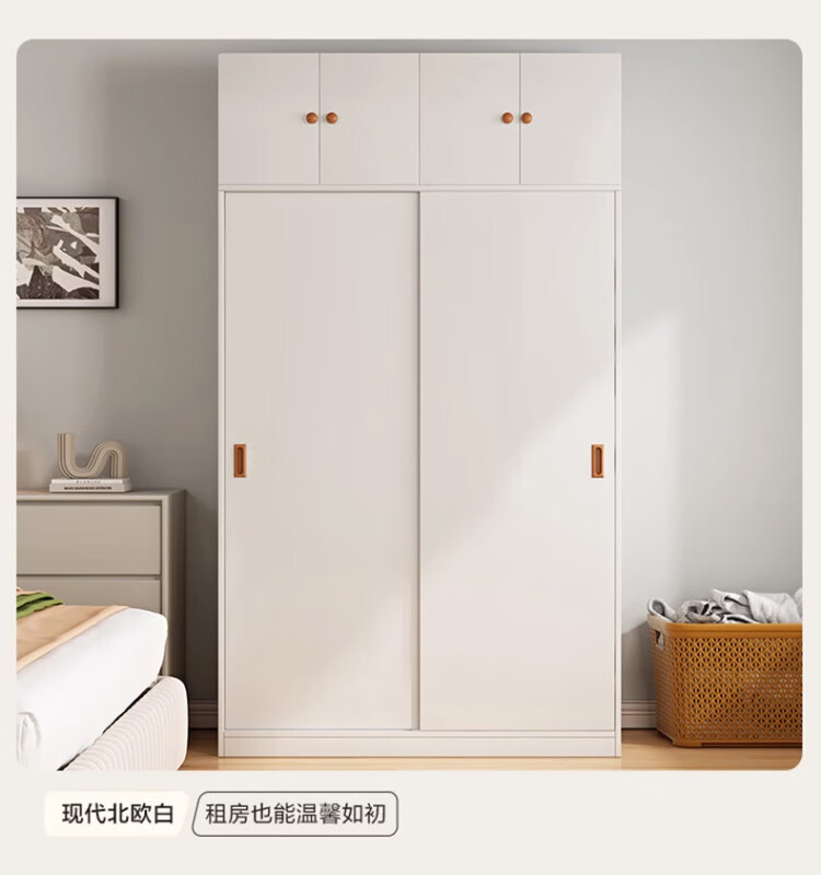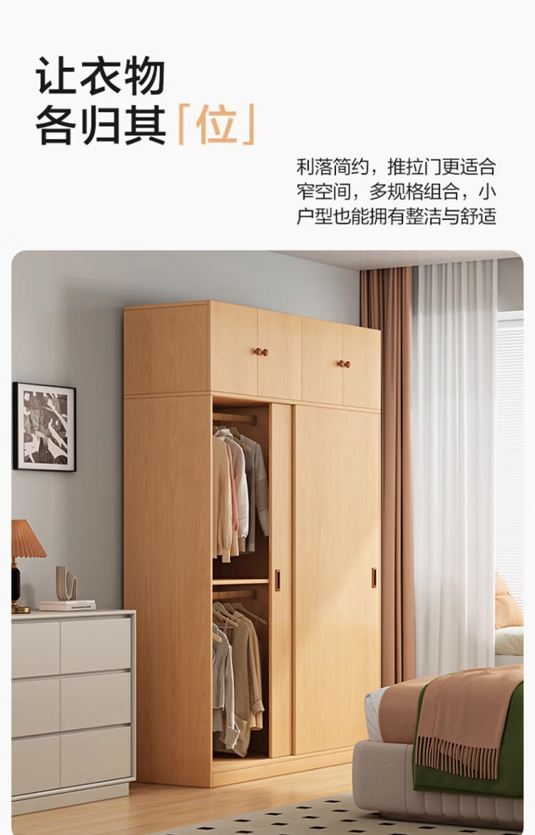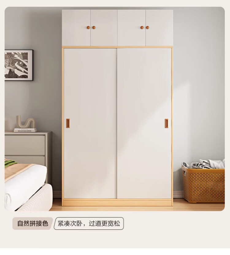 溥畔实木衣柜家用卧室奶油风全实木可定制儿童移门大衣橱储物收纳柜 160长50宽180高+顶柜 整装