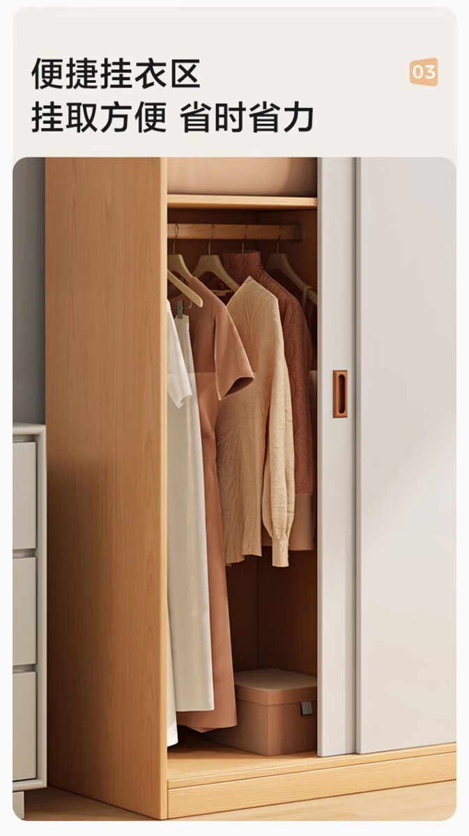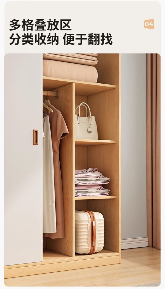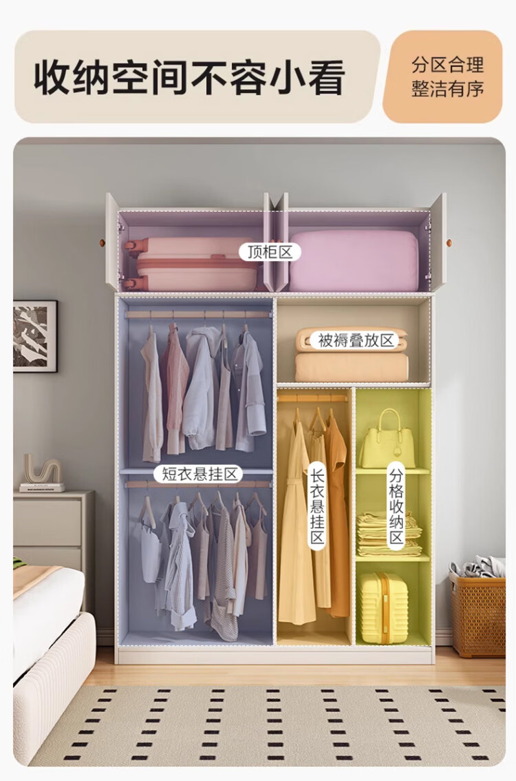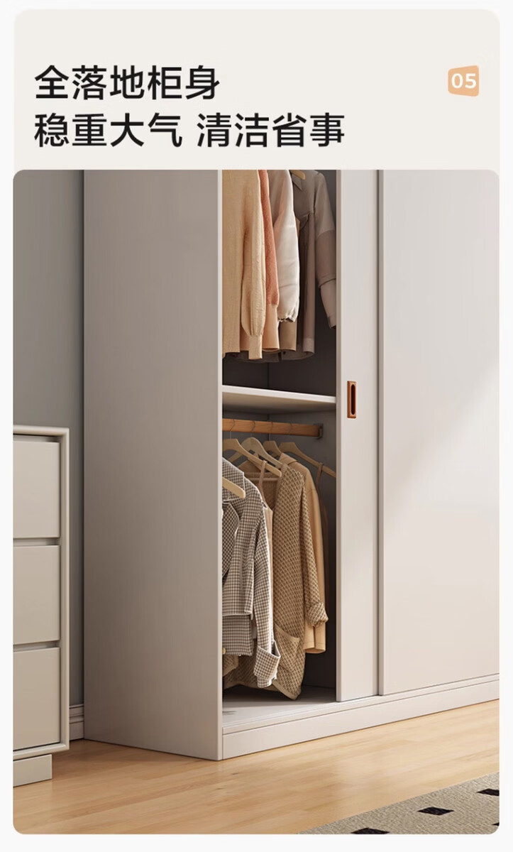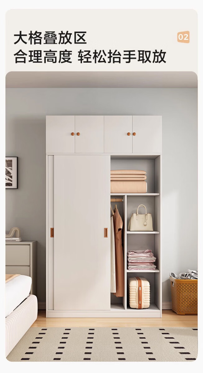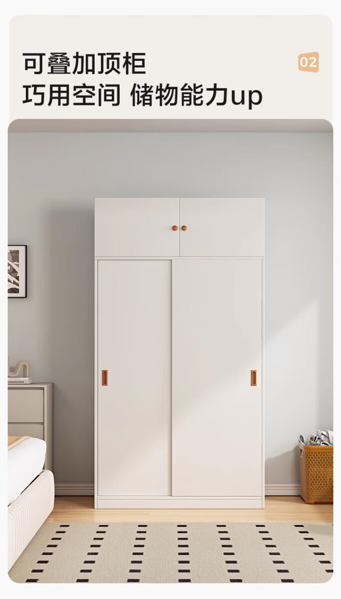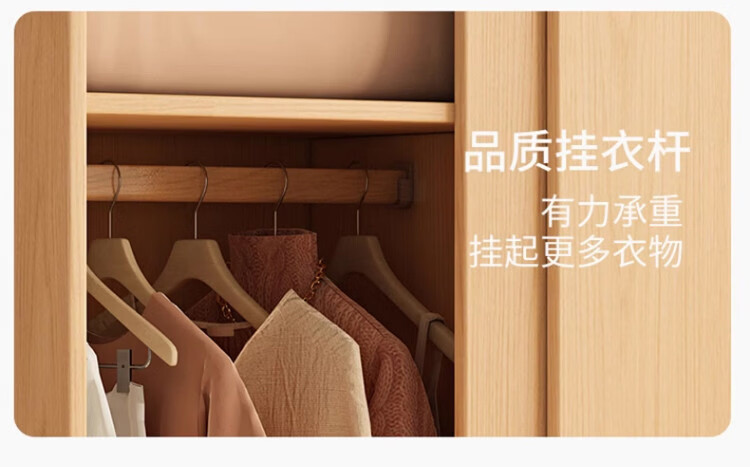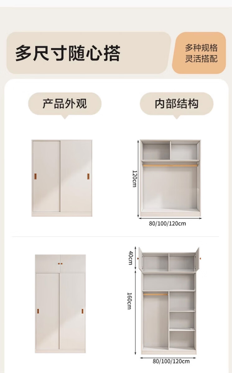 溥畔实木衣柜家用卧室奶油风全实木可定制儿童移门大衣橱储物收纳柜 160长50宽180高+顶柜 整装