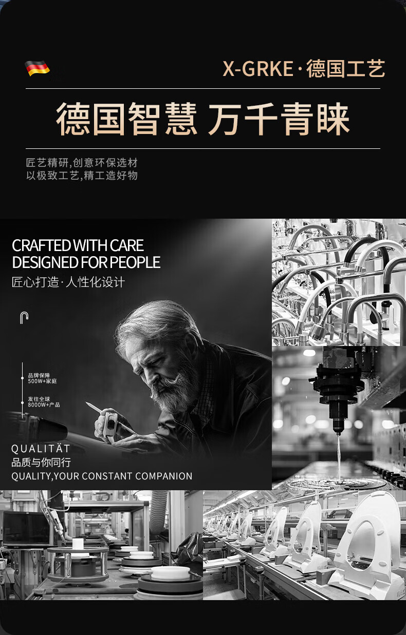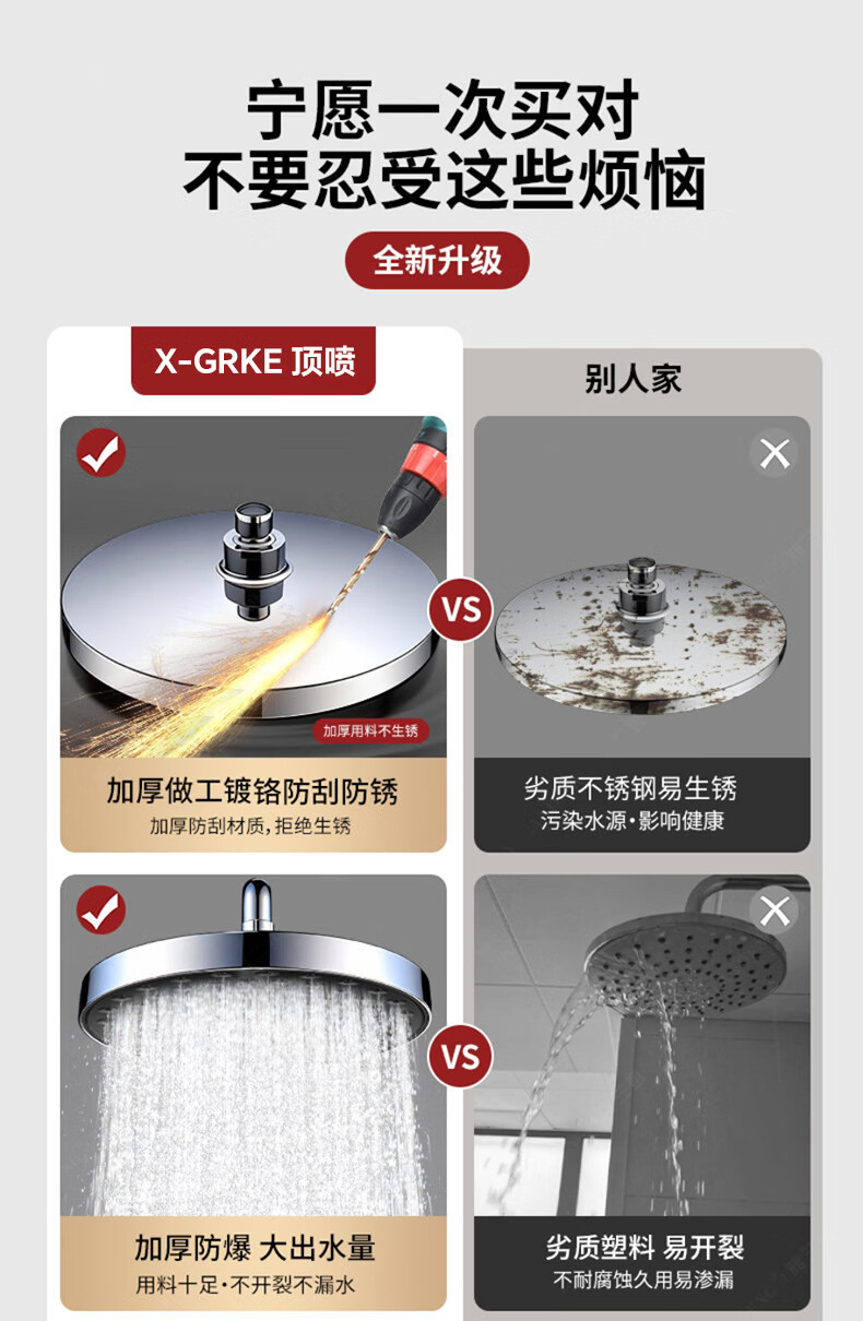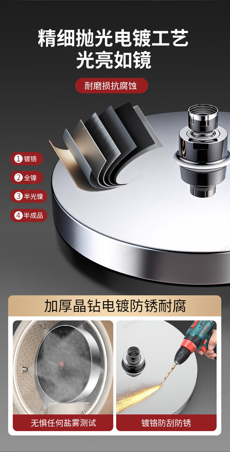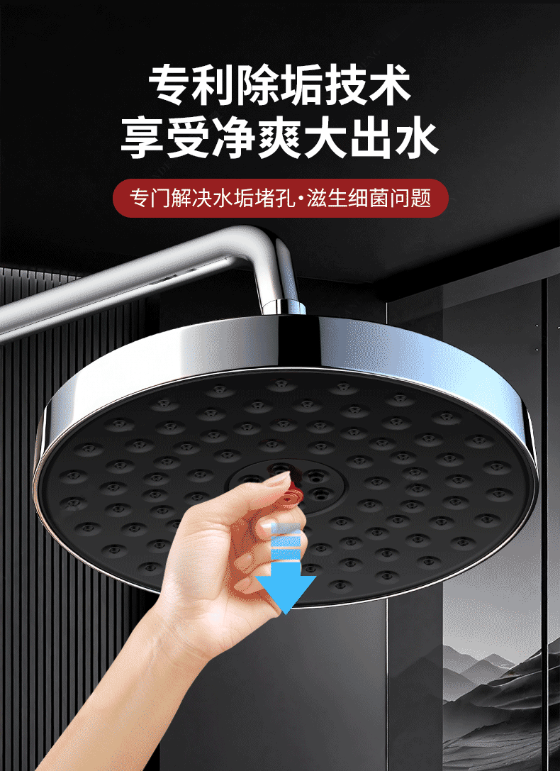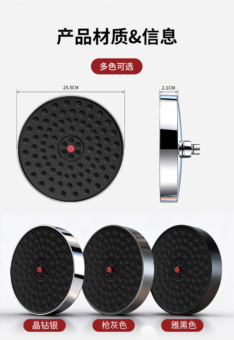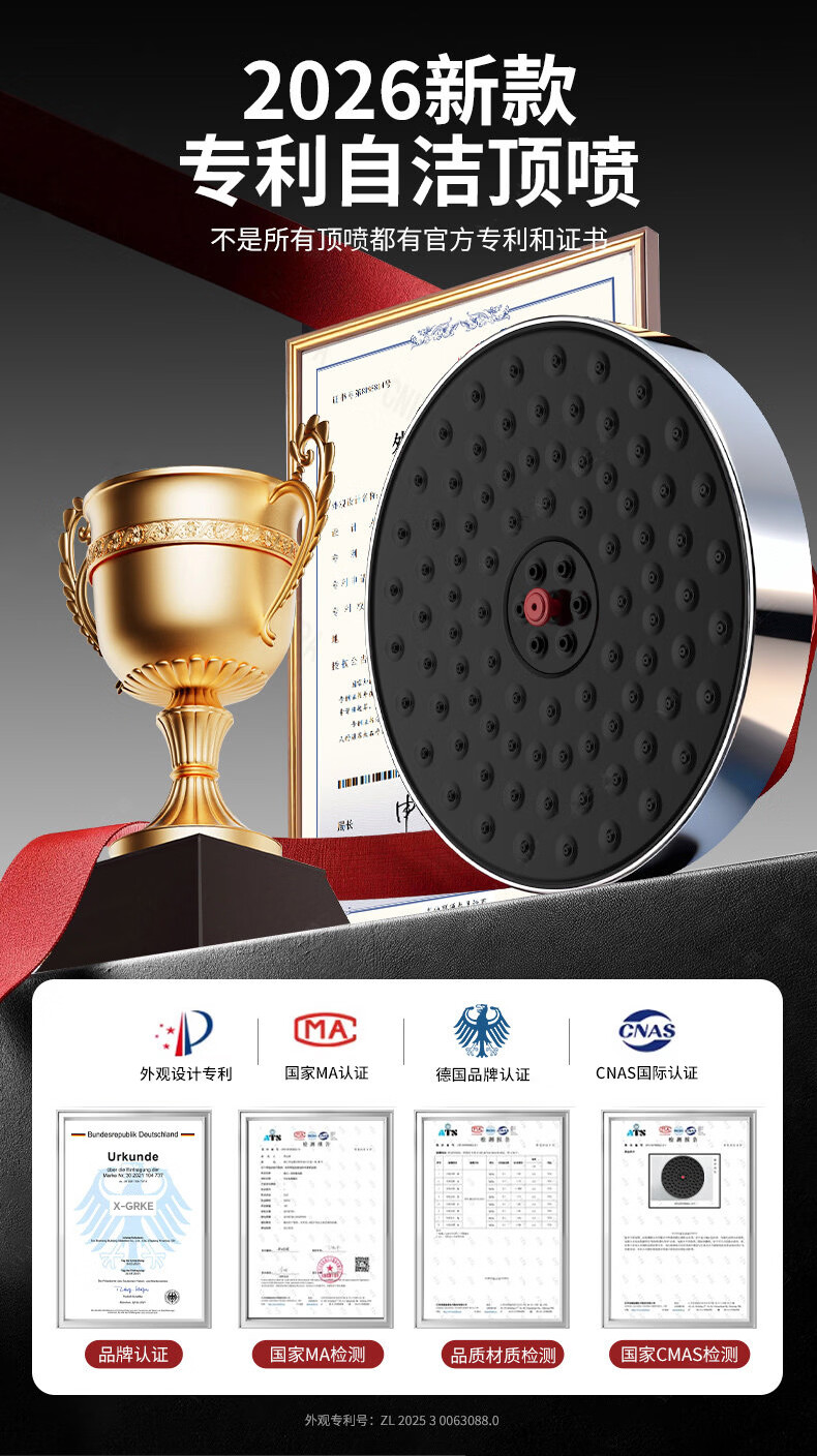 X-GRKE【德国】增压淋浴花洒顶喷家用浴室一键除垢花洒喷头沐浴顶喷头 圆形【一拉除垢】增压顶喷-枪灰 全新除垢顶喷丨堵塞分叉问题轻松解决