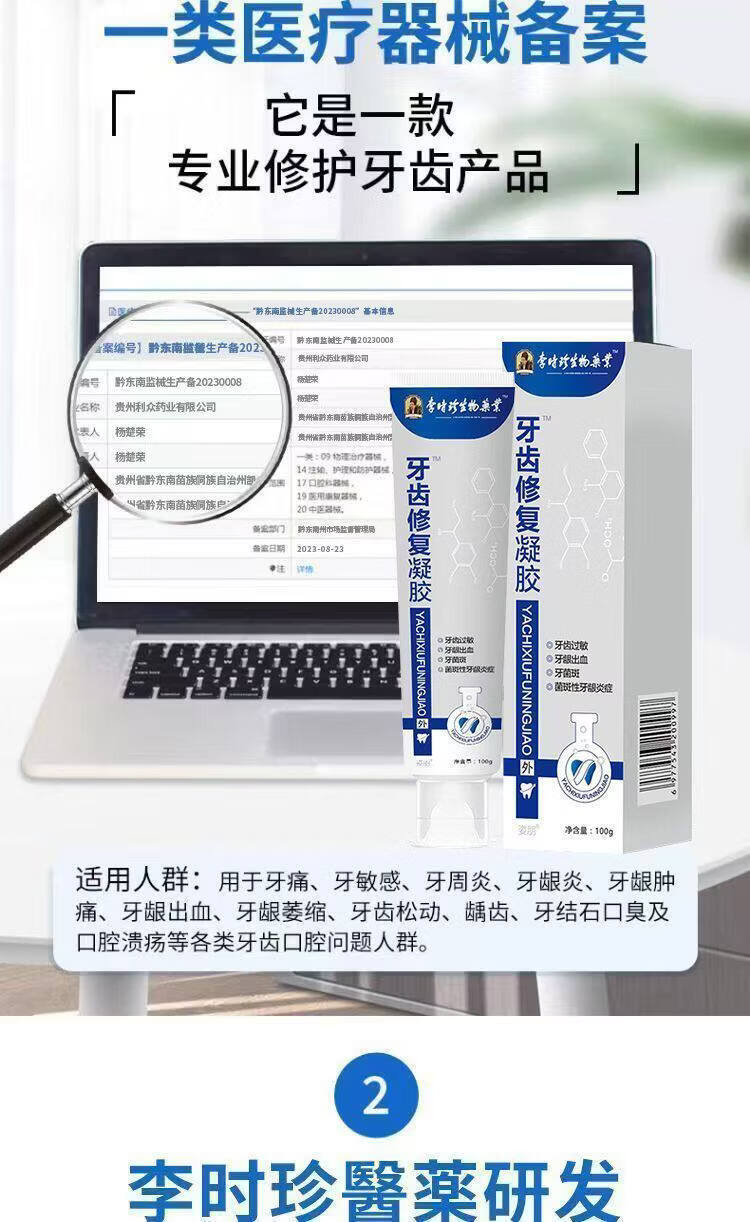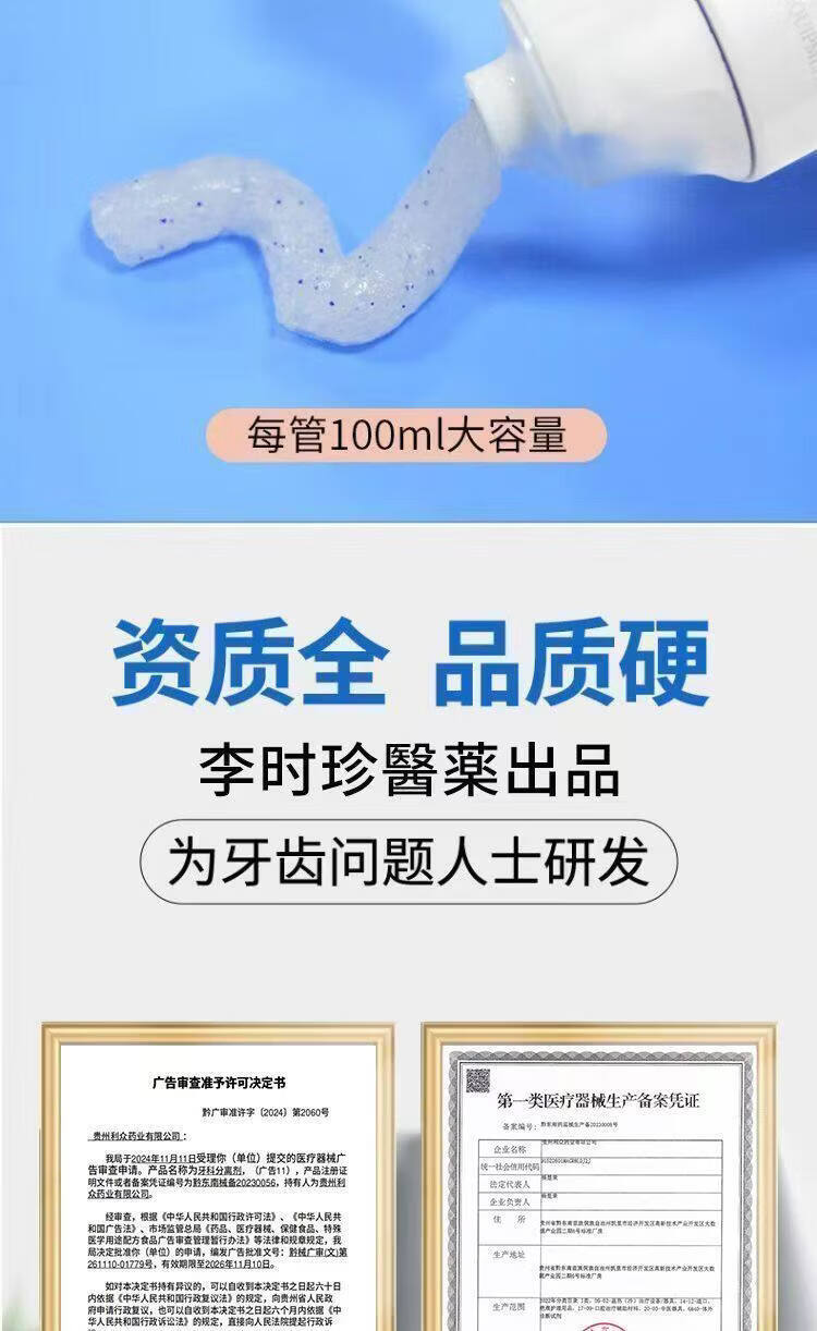 李时珍牙齿修复凝胶牙膏牙龈萎l缩牙齿松l动牙龈出血牙科分离剂固齿培龈 3盒【周期装】中度问题适用 【100g/支】正品保证