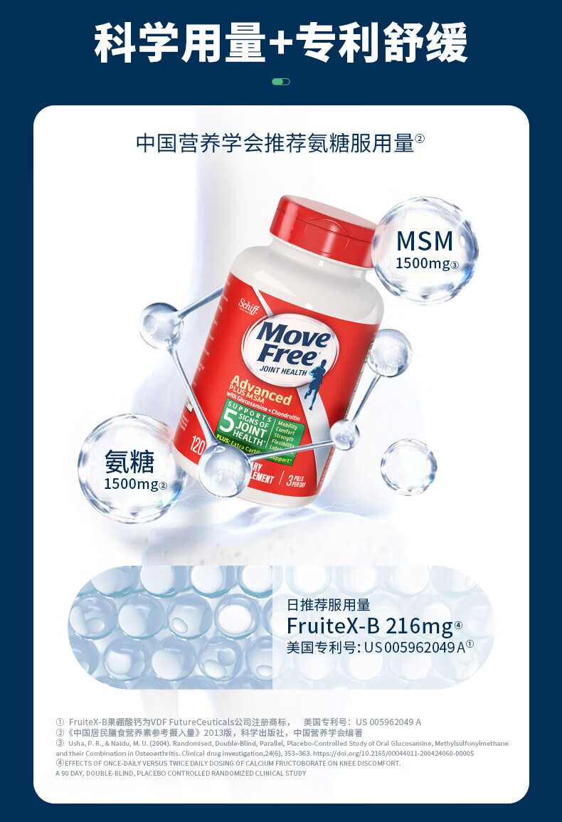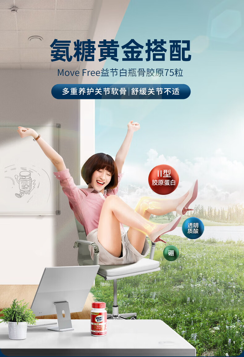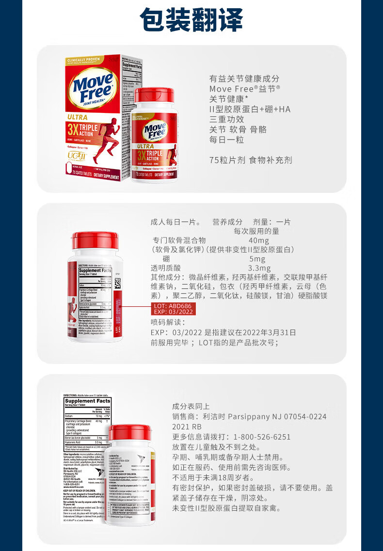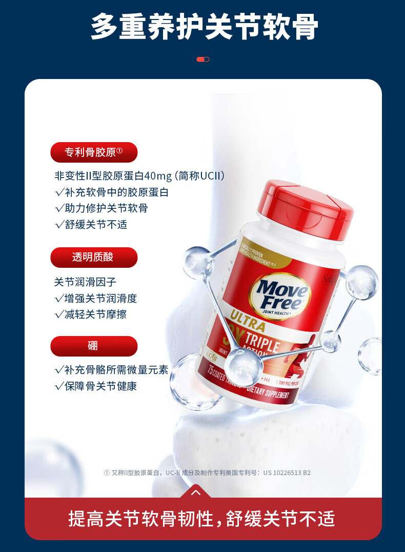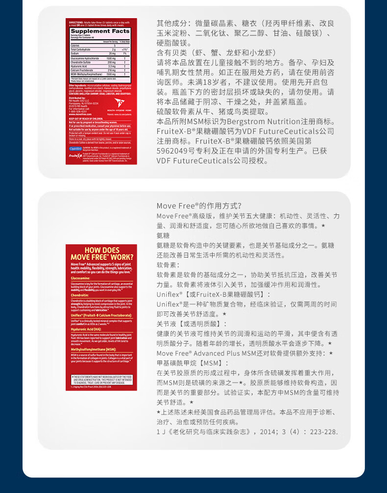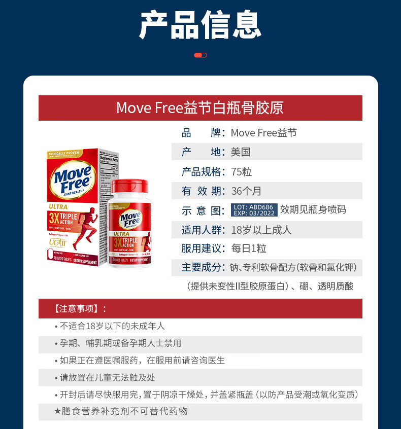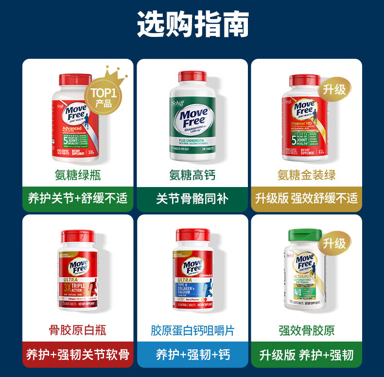 益节MoveFree氨糖软骨素 钙片维骨力美国进口中老年成人养护红瓶200粒