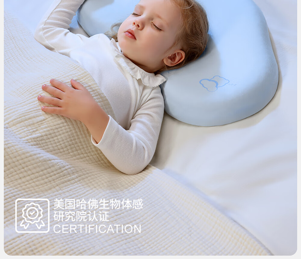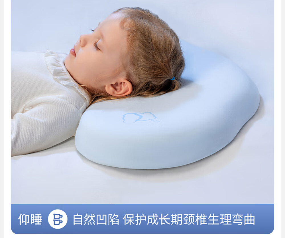 贝肽斯婴儿枕头6个月以上儿童分区宝宝枕护颈神器硅胶枕头1-3岁 云霭青