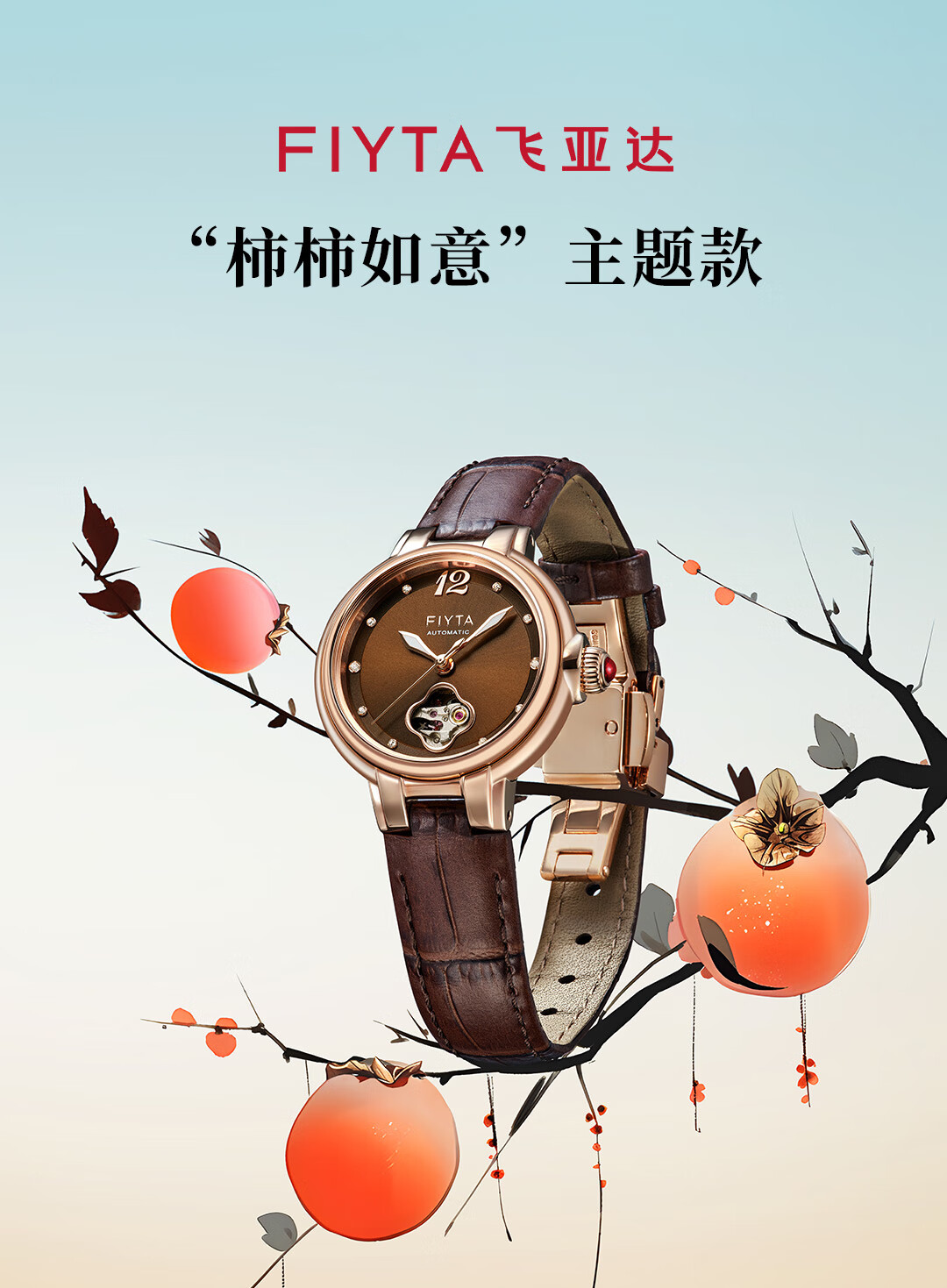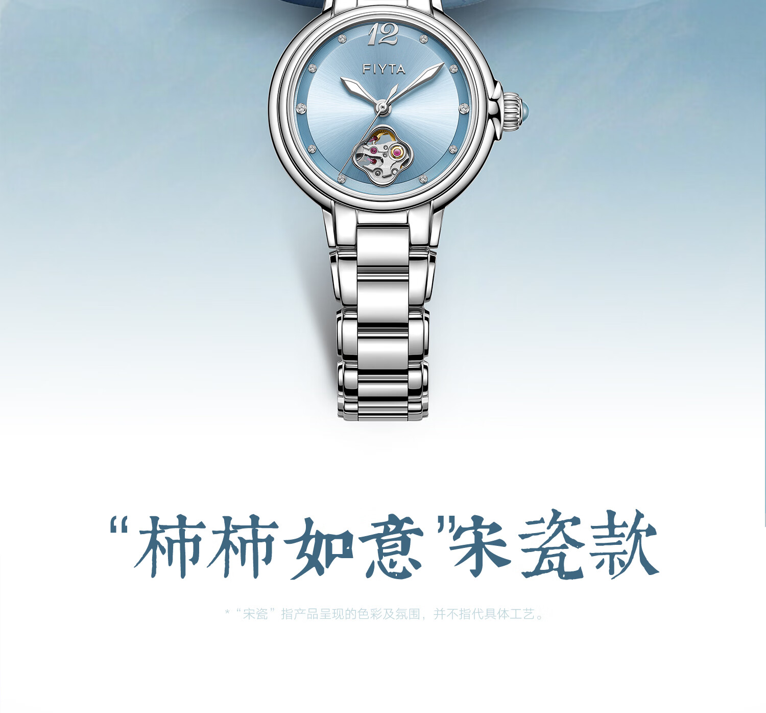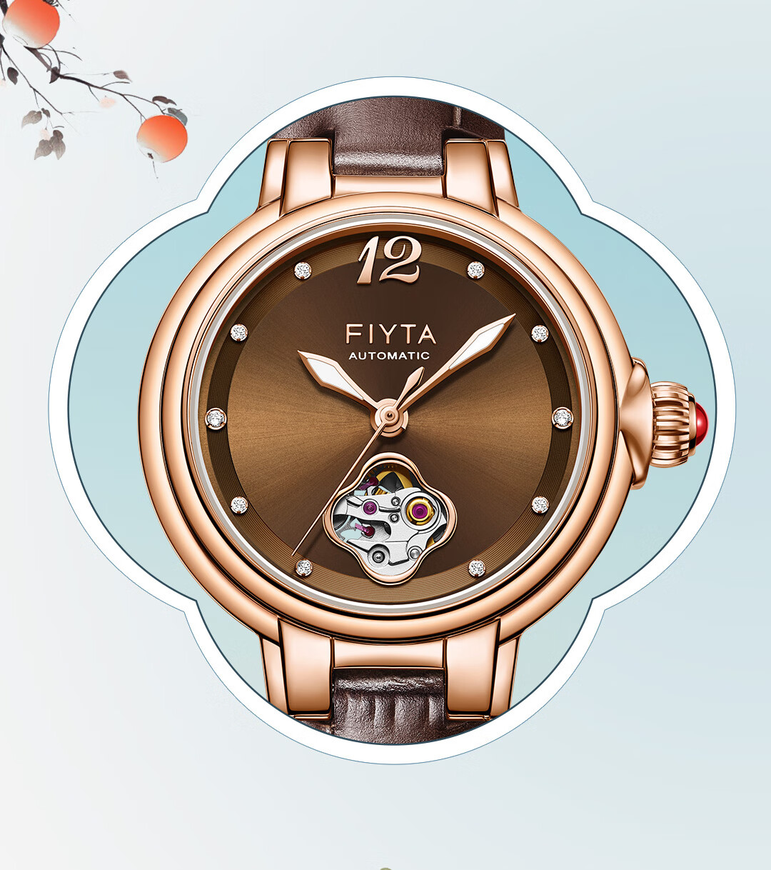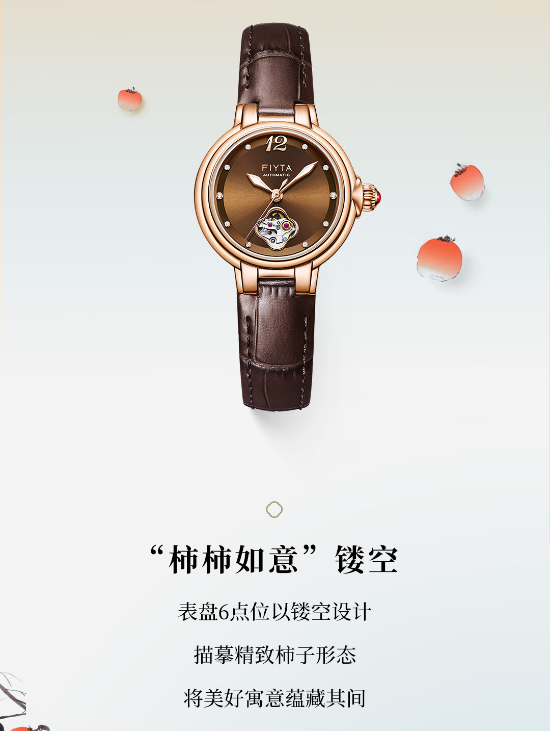 飞亚达(FIYTA)【节日礼物】女士手表女 倾城柿柿如意机械女表名表 送女友老婆 天青宋瓷款