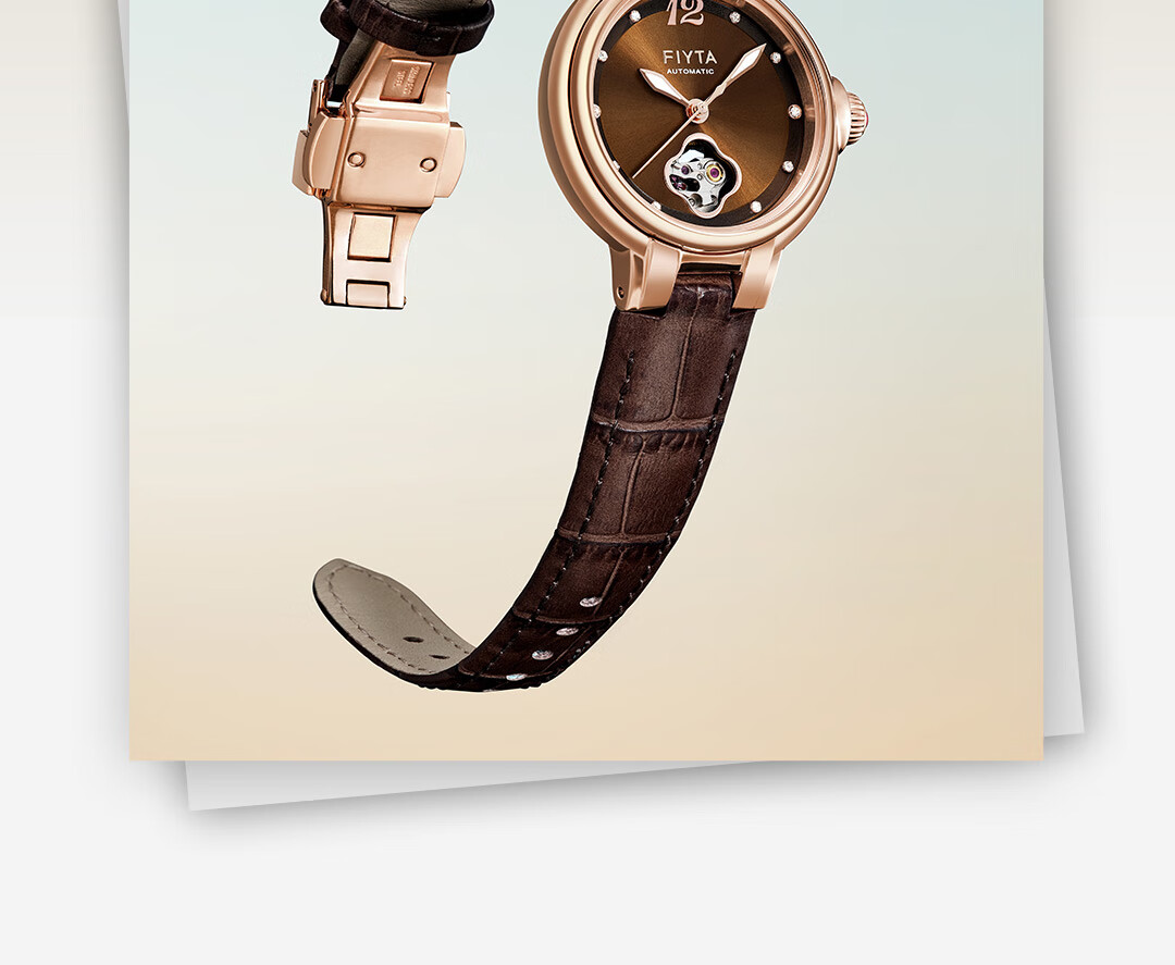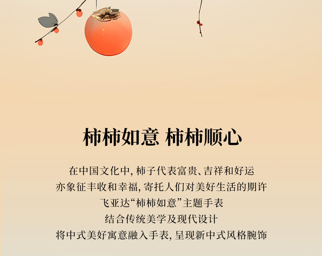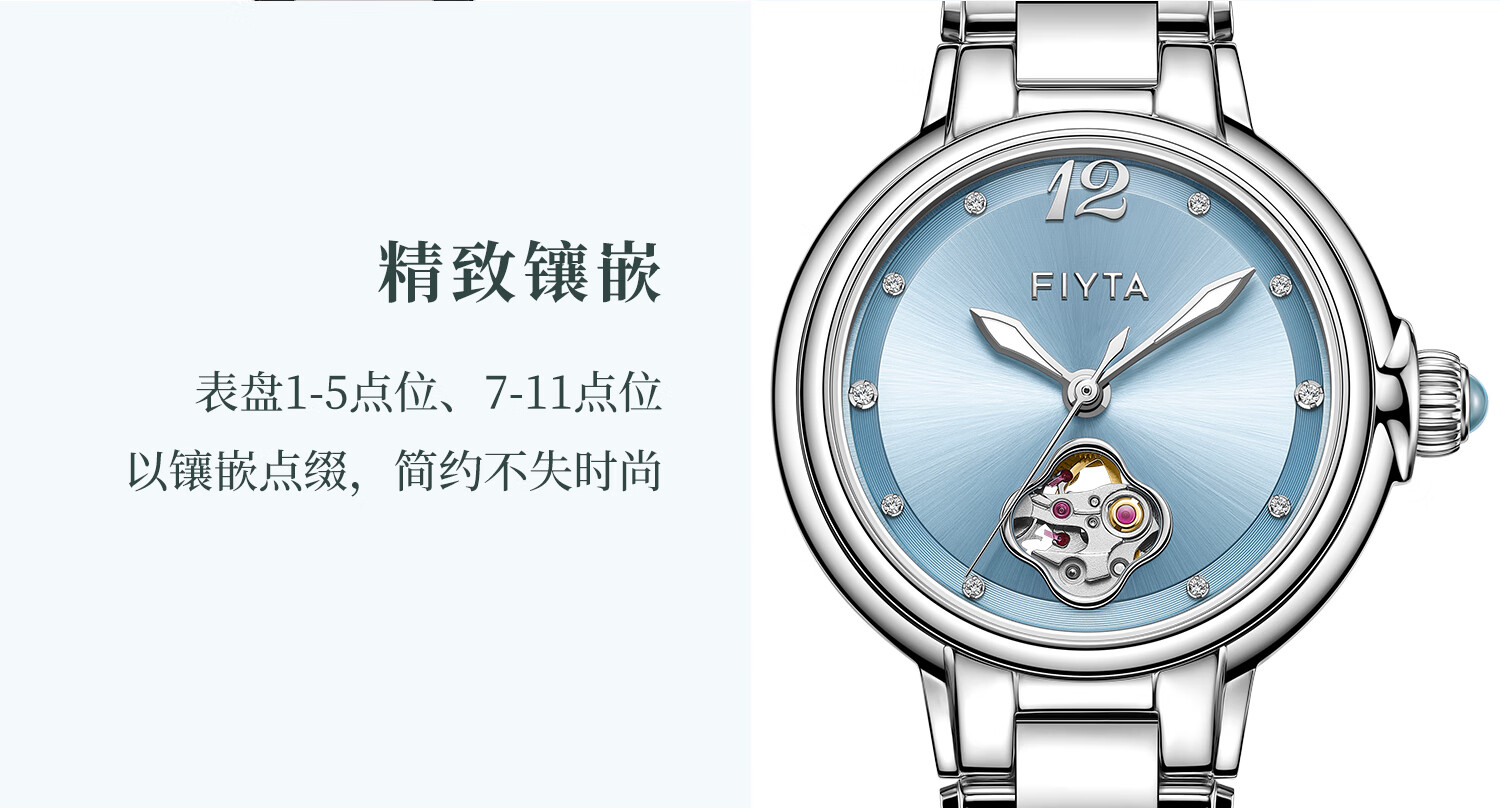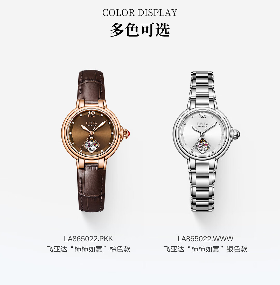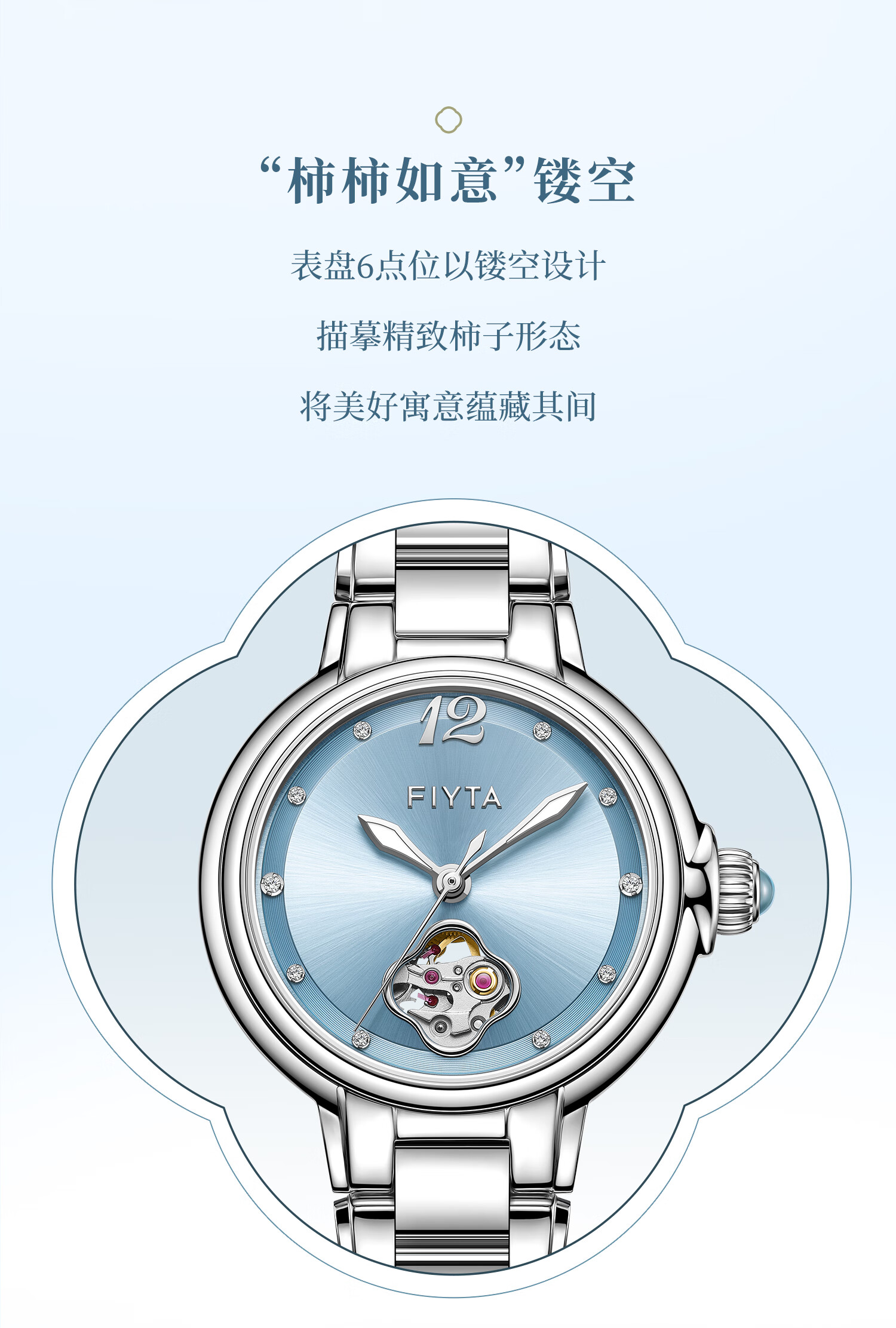 飞亚达(FIYTA)【节日礼物】女士手表女 倾城柿柿如意机械女表名表 送女友老婆 天青宋瓷款
