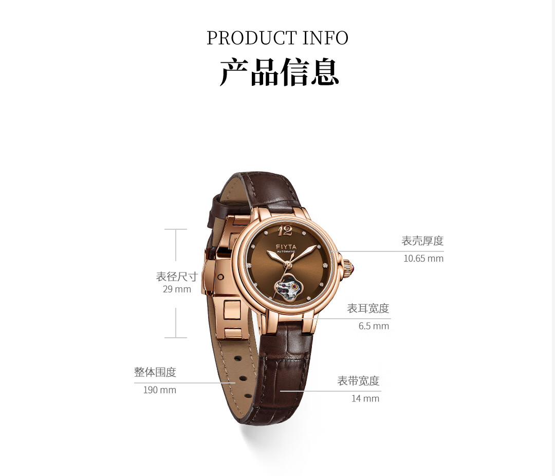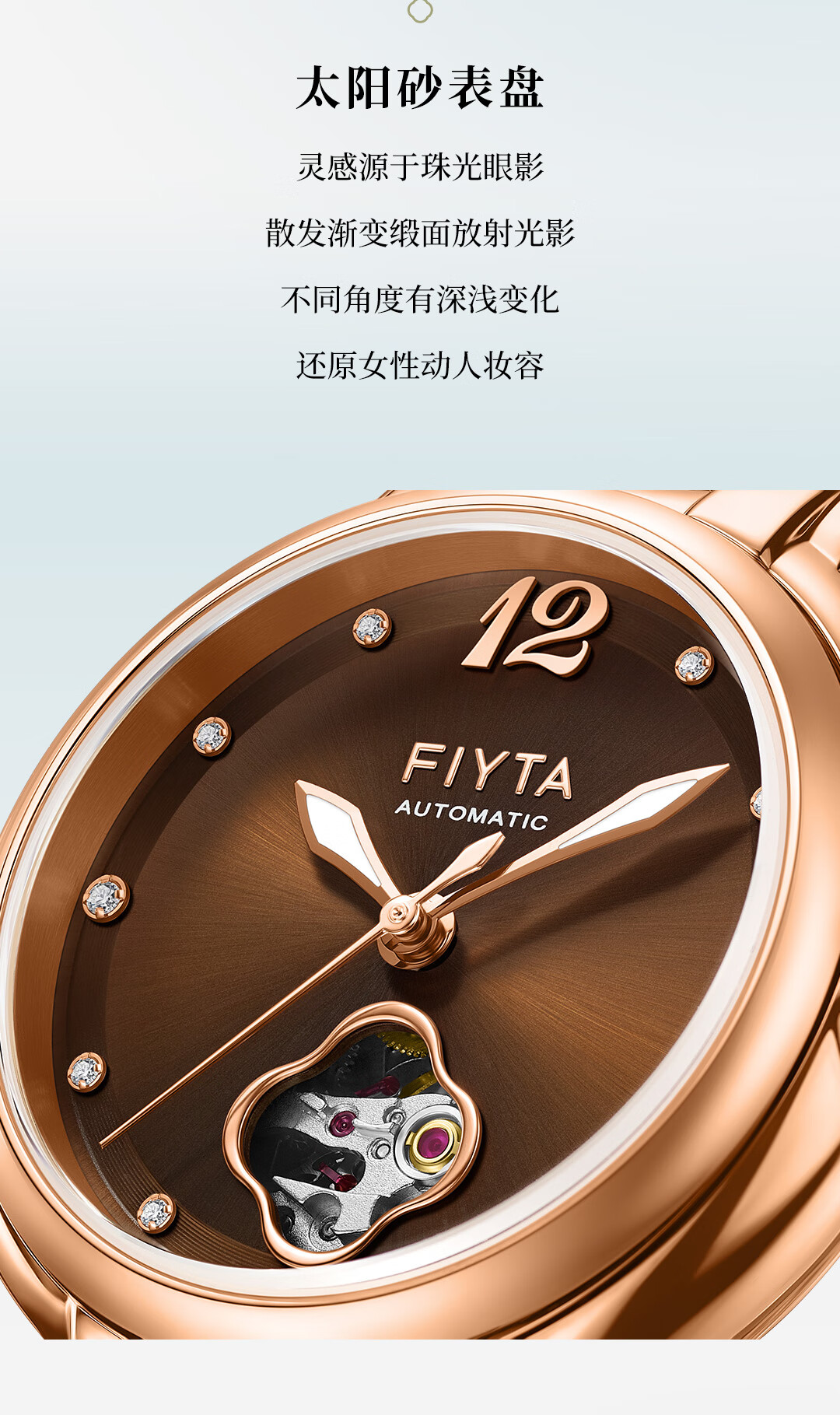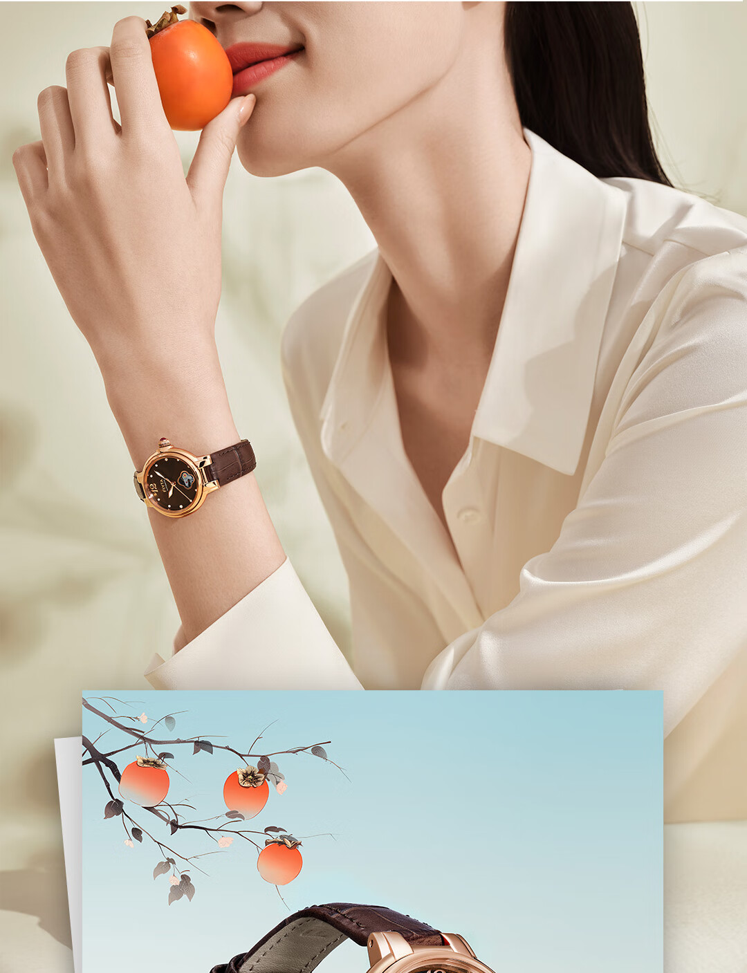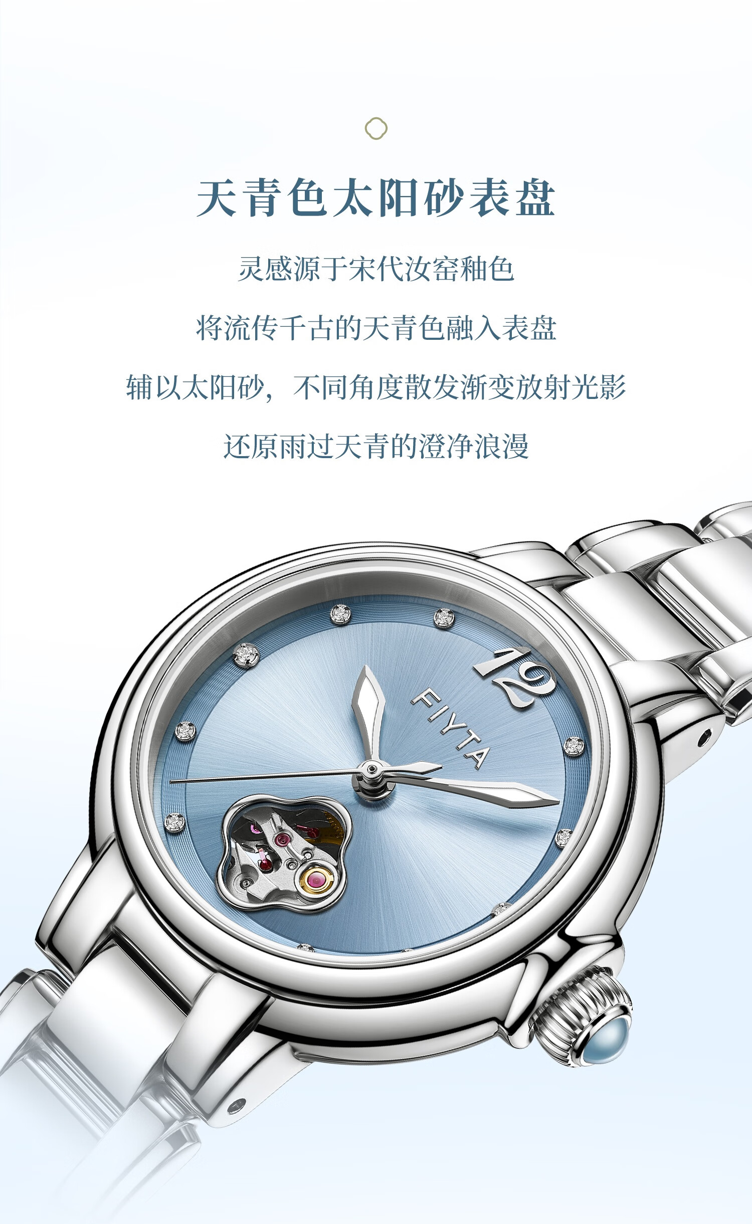 飞亚达(FIYTA)【节日礼物】女士手表女 倾城柿柿如意机械女表名表 送女友老婆 天青宋瓷款