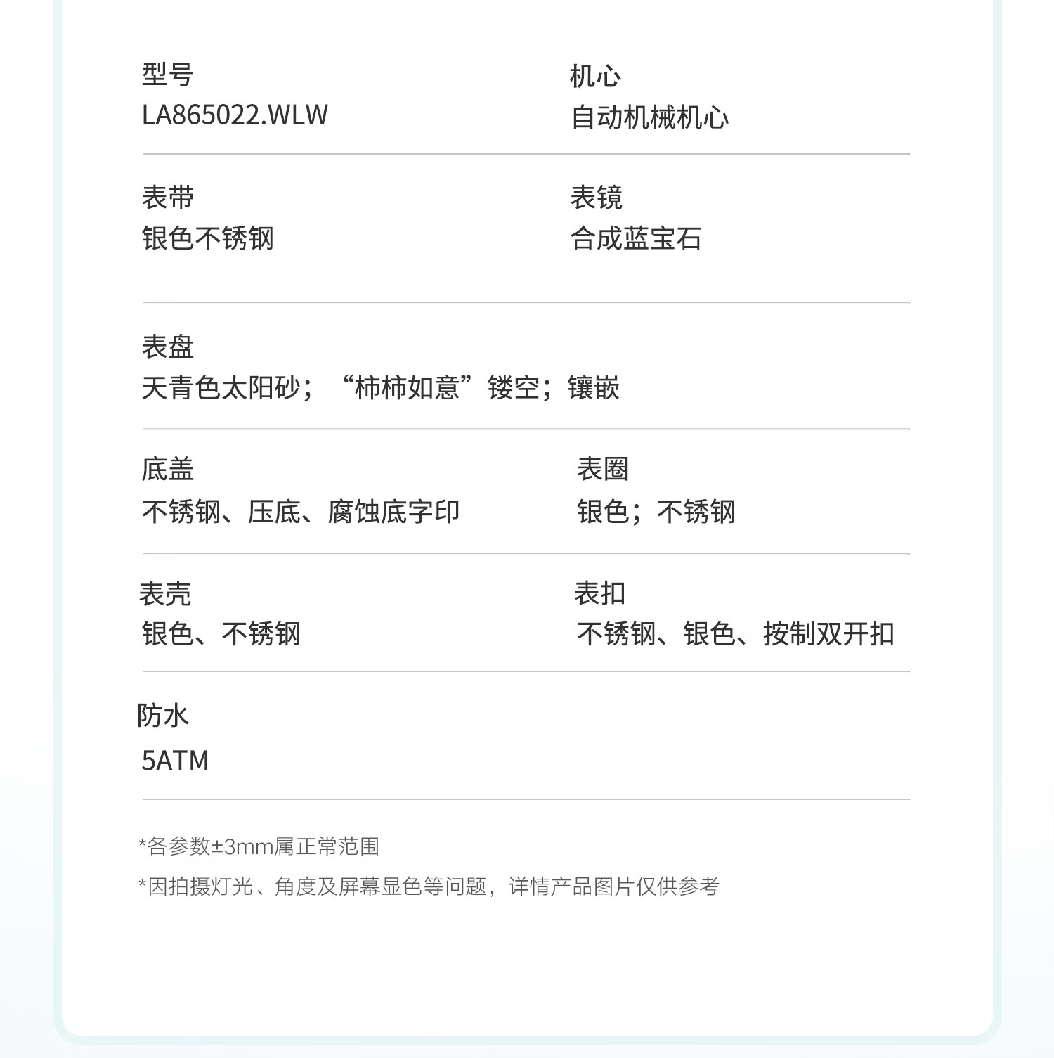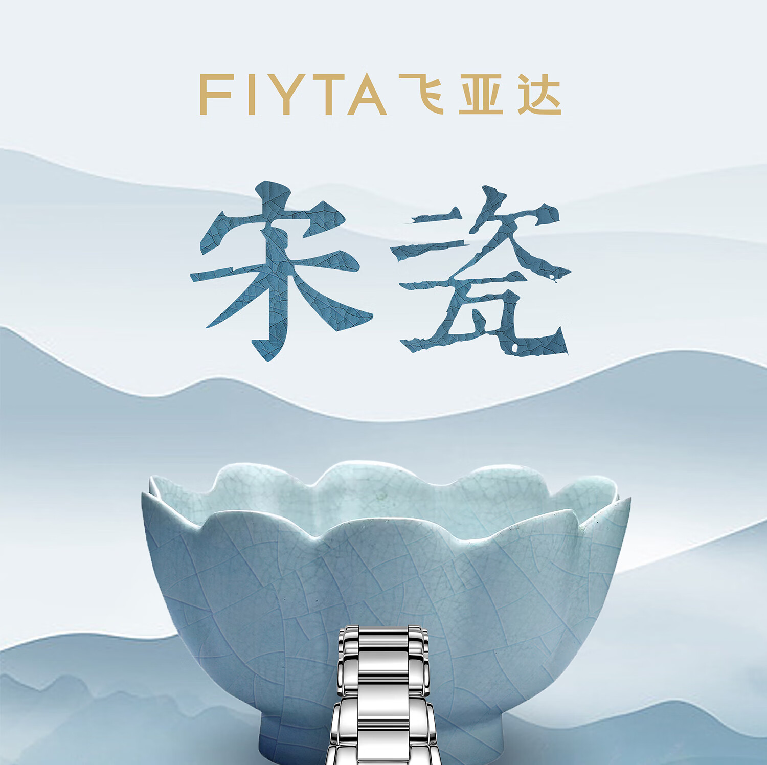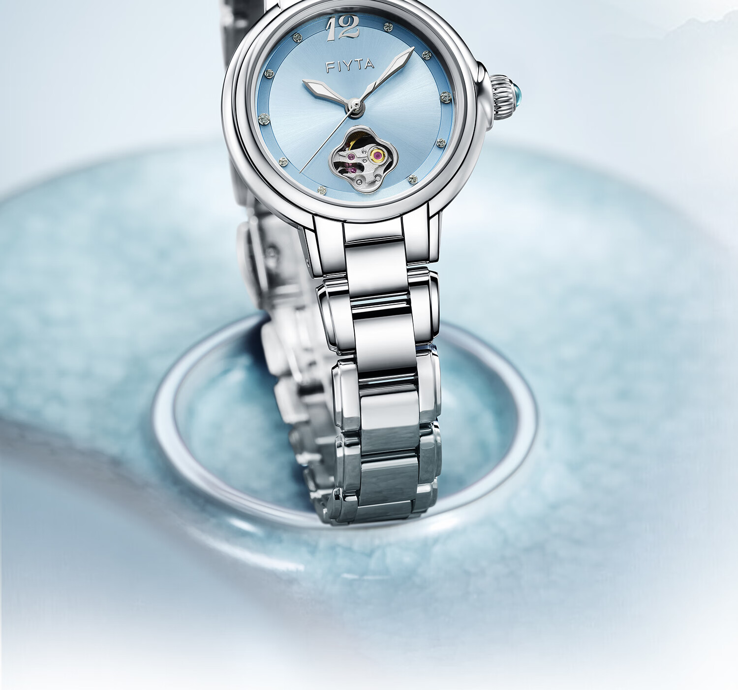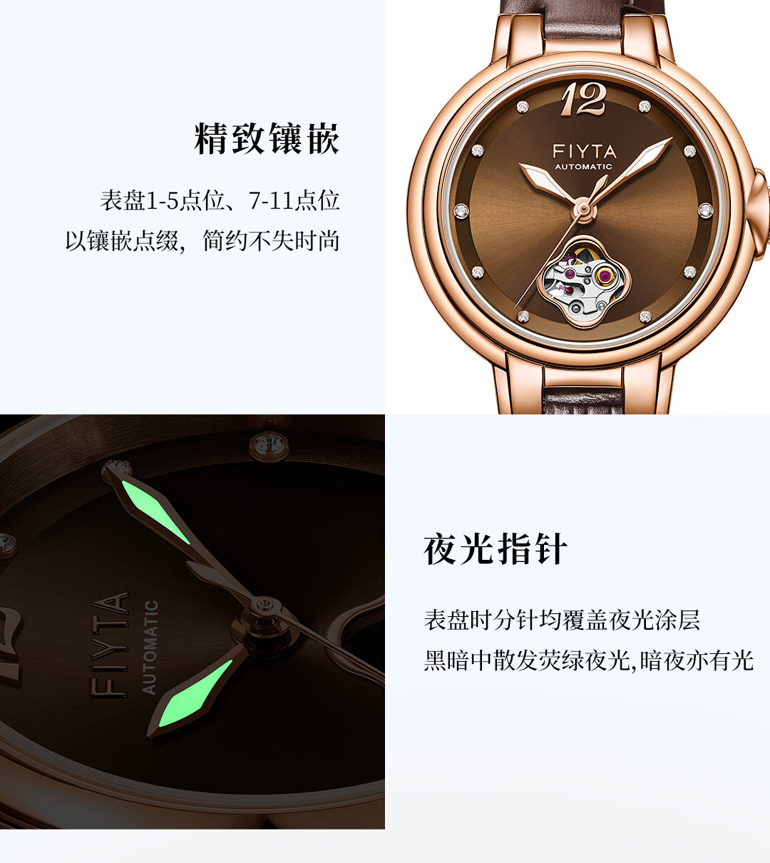 飞亚达(FIYTA)【节日礼物】女士手表女 倾城柿柿如意机械女表名表 送女友老婆 天青宋瓷款