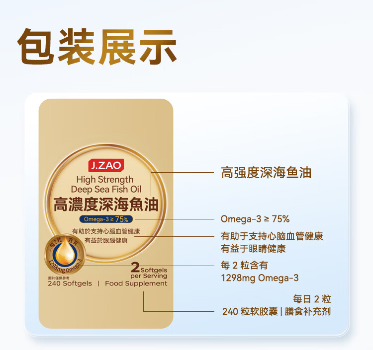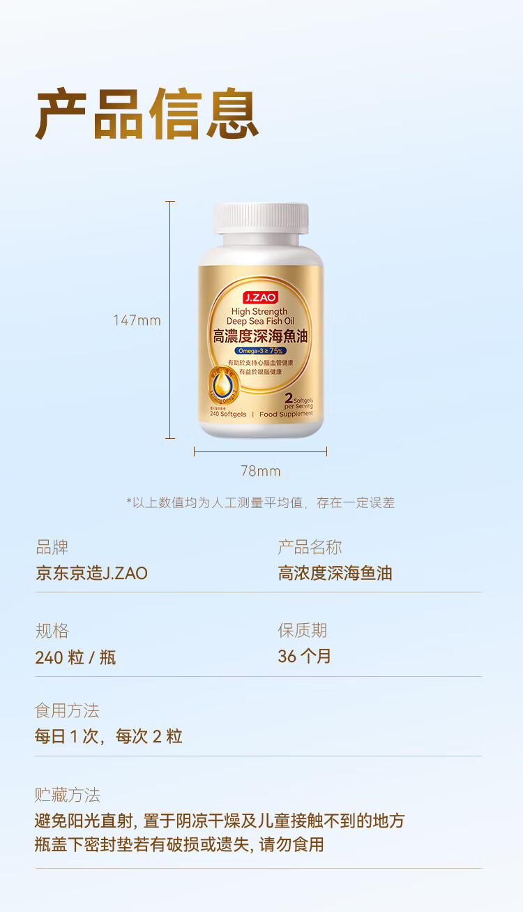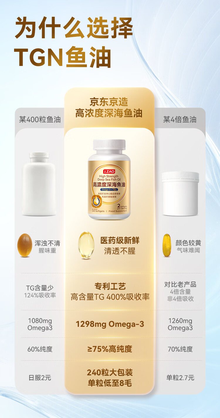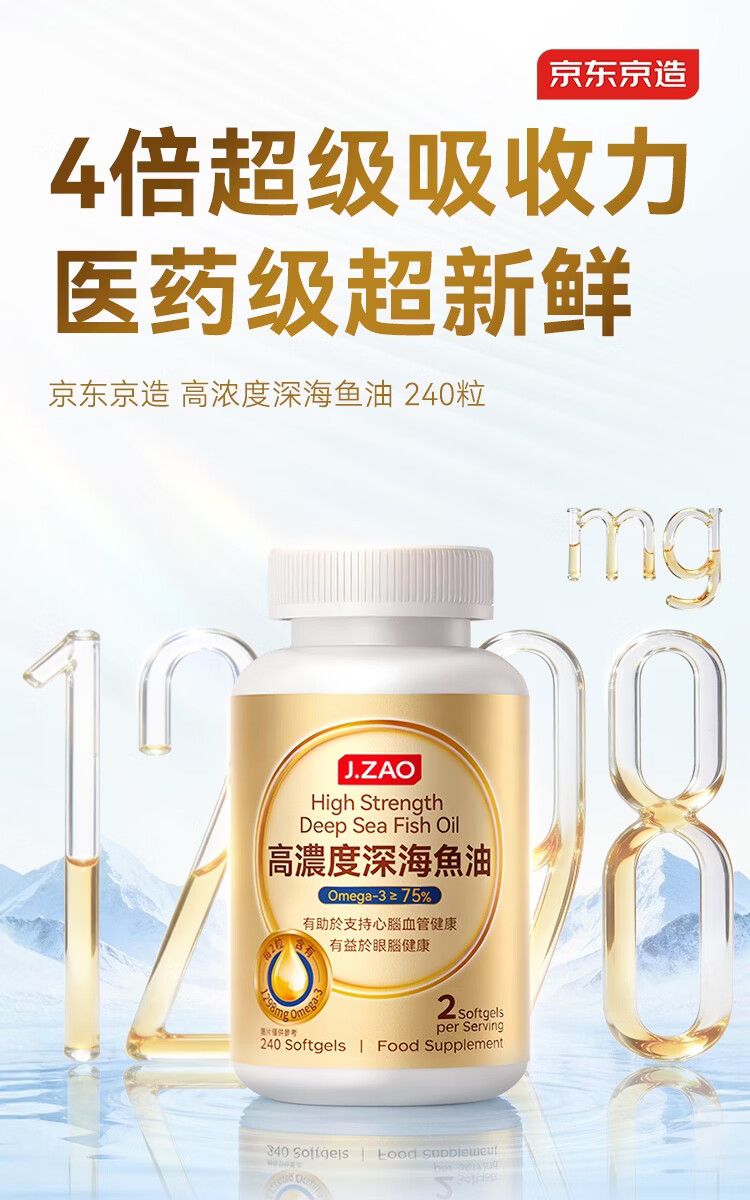 京东京造4倍rTG高浓度深海鱼油240粒 omega-3医药级TGN降血脂DHA