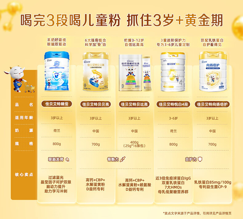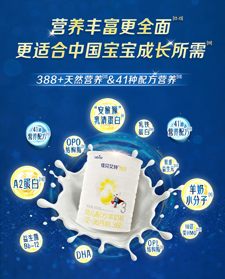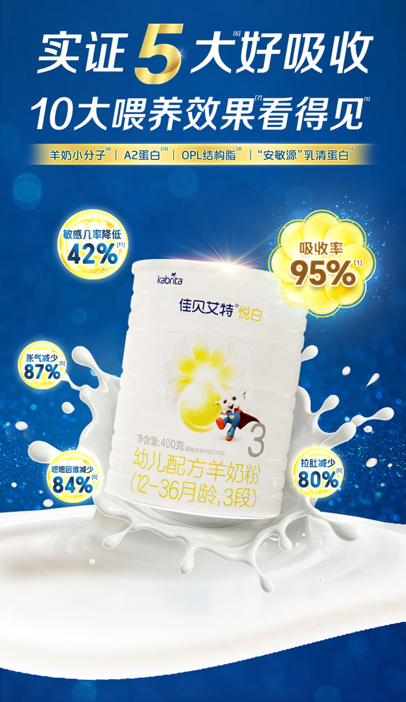 佳贝艾特(Kabrita)新国标婴儿羊奶粉 3段(1-3岁)悦白400g荷兰原装进口