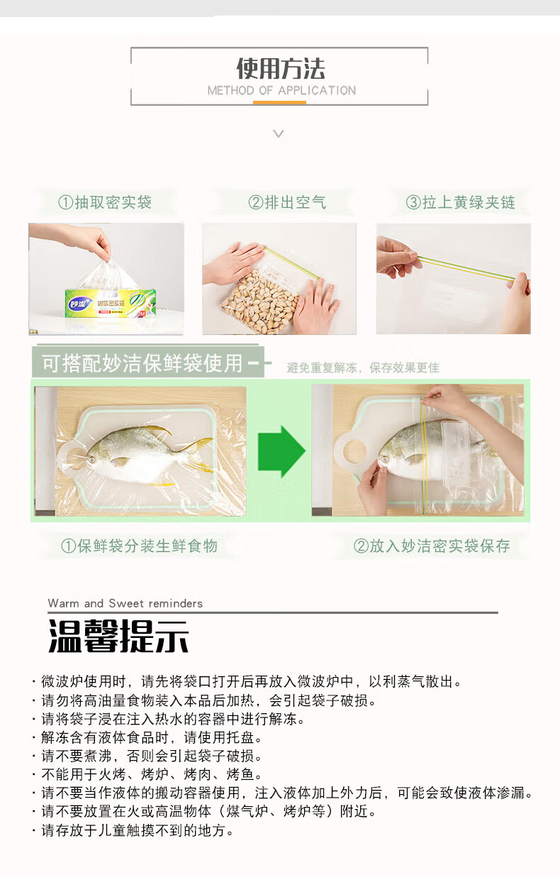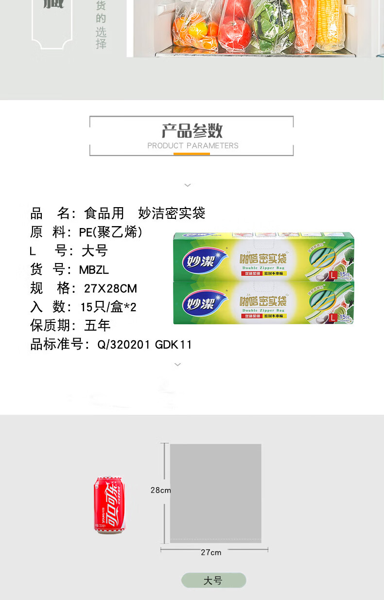 妙洁大号密封袋30只 加厚食品级保鲜自封袋