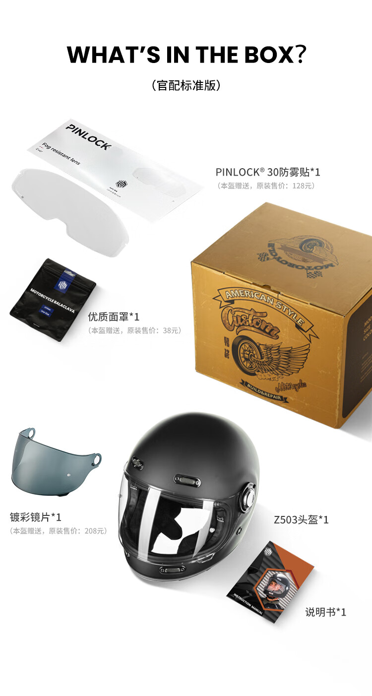 ILM摩托车头盔复古全盔超宽视野轻量化巡航机车头盔电动车 亮黑 XL