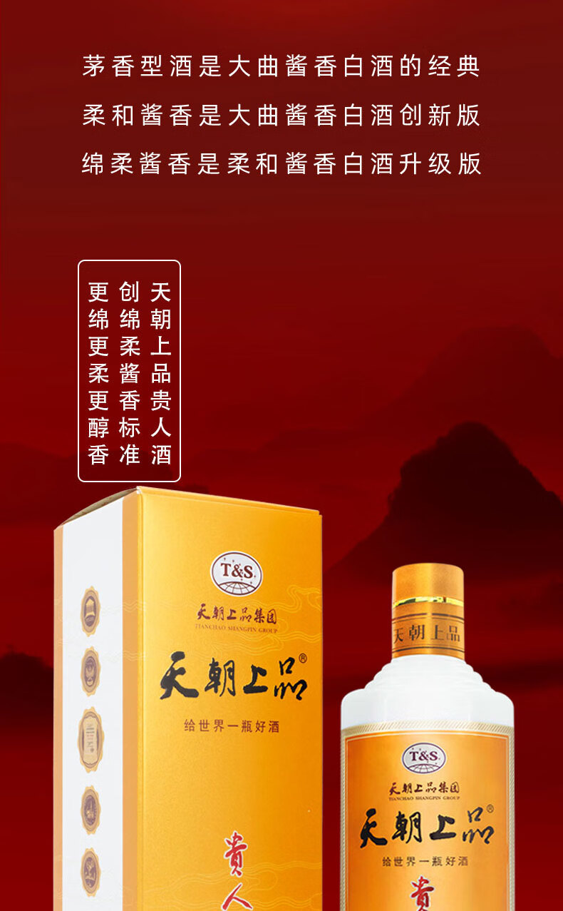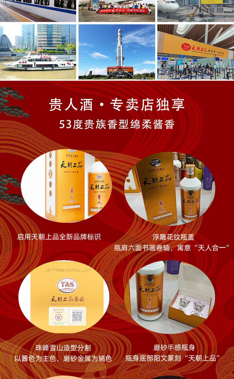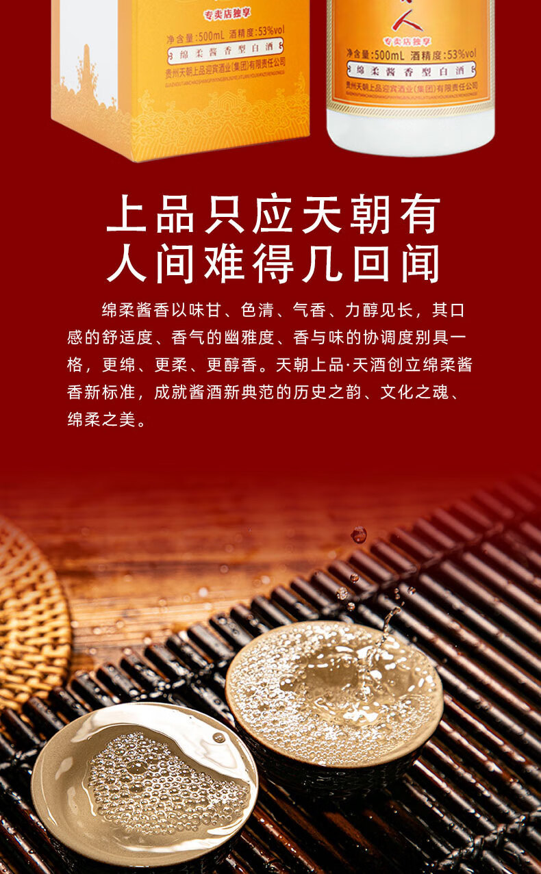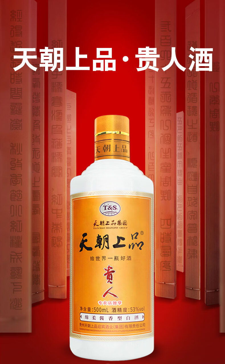 天朝上品新贵人酒绵柔酱香型白酒53度贵州白酒节日送礼婚宴喜宴商务用酒 53度 500mL 6瓶 整箱三个礼袋