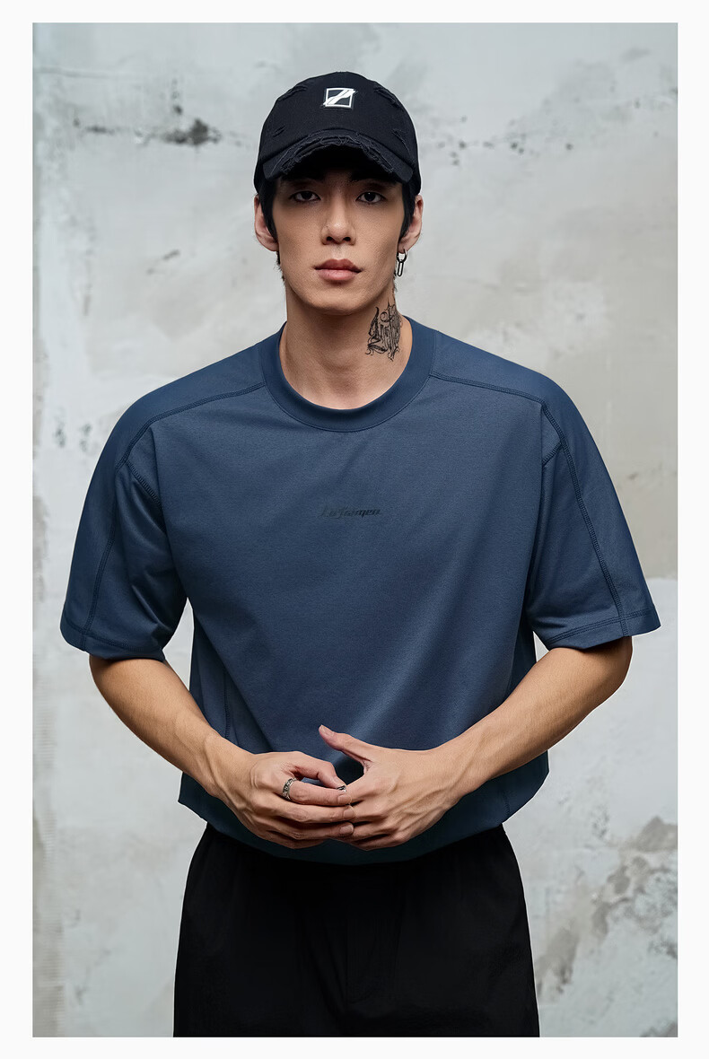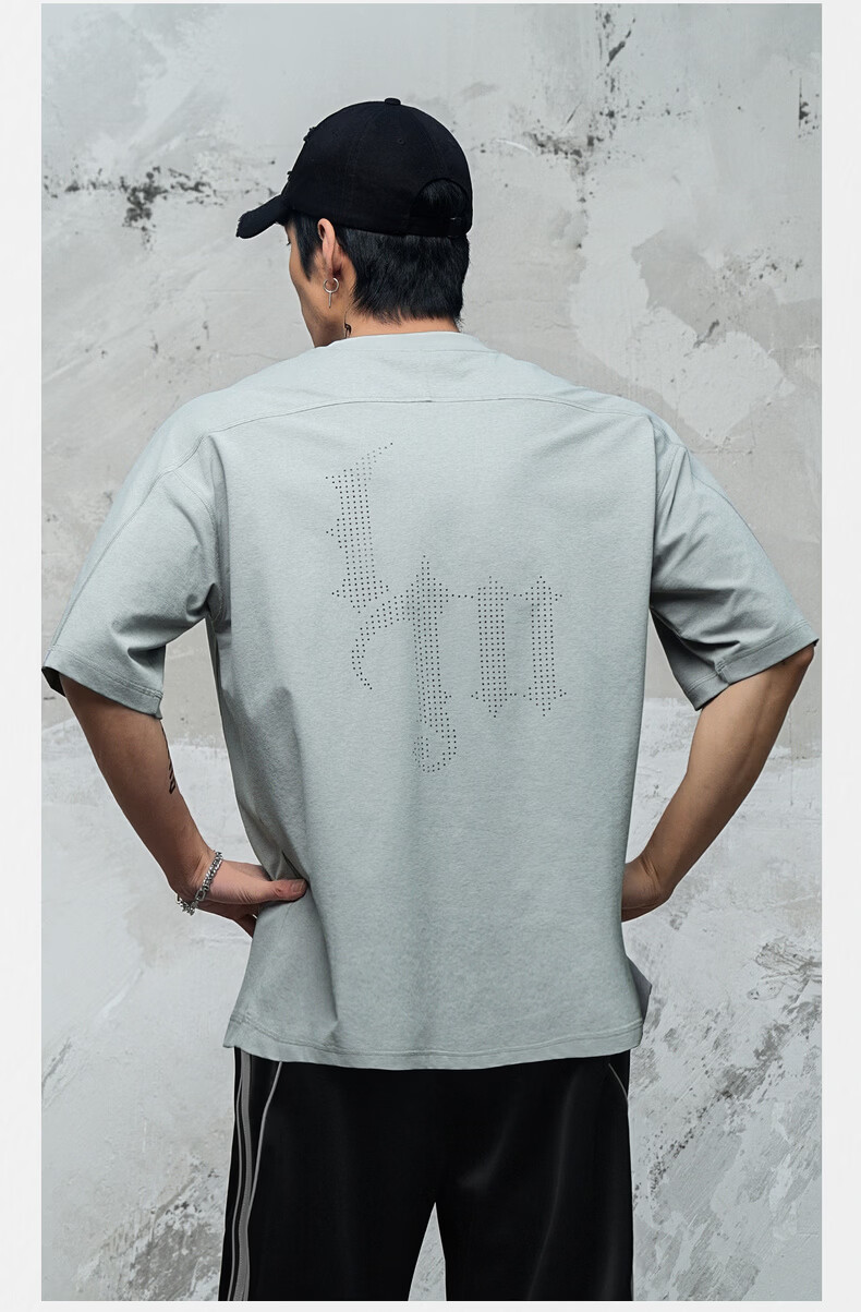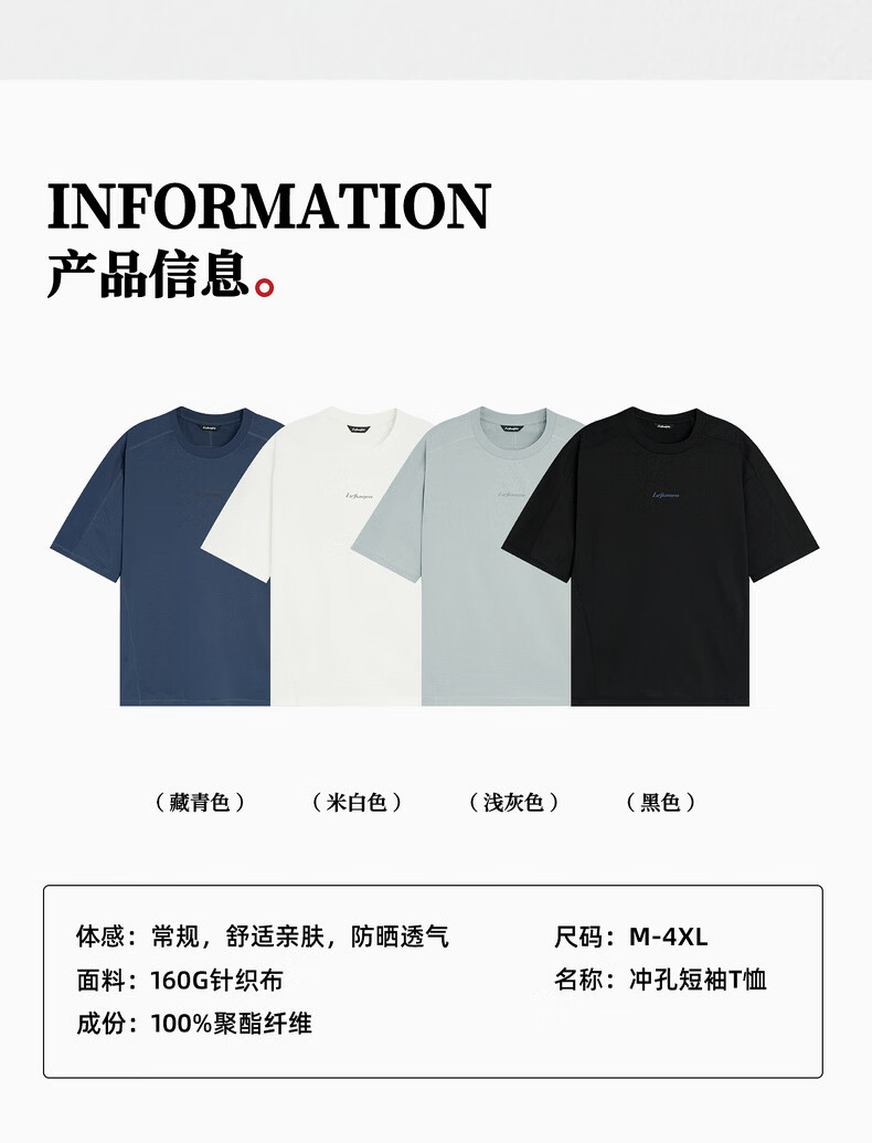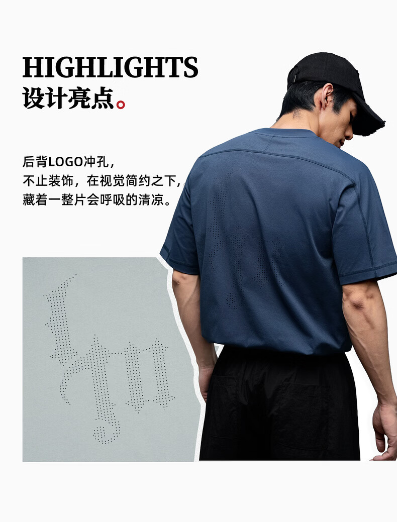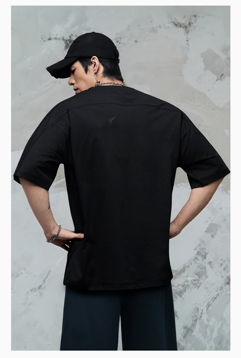 鹿家门运动健身速干T恤男夏季休闲防晒UPF50+短袖冲孔透气运动上衣 黑色 4XL 推荐220-240斤