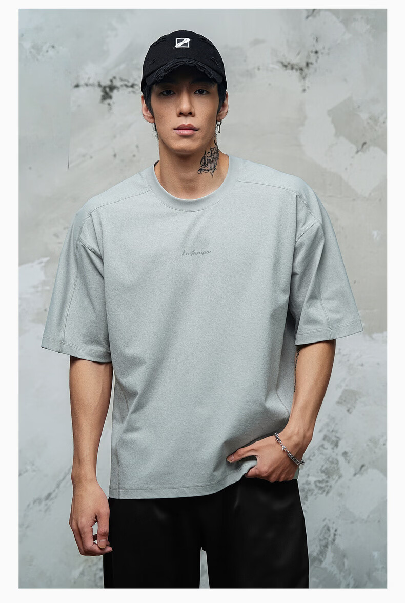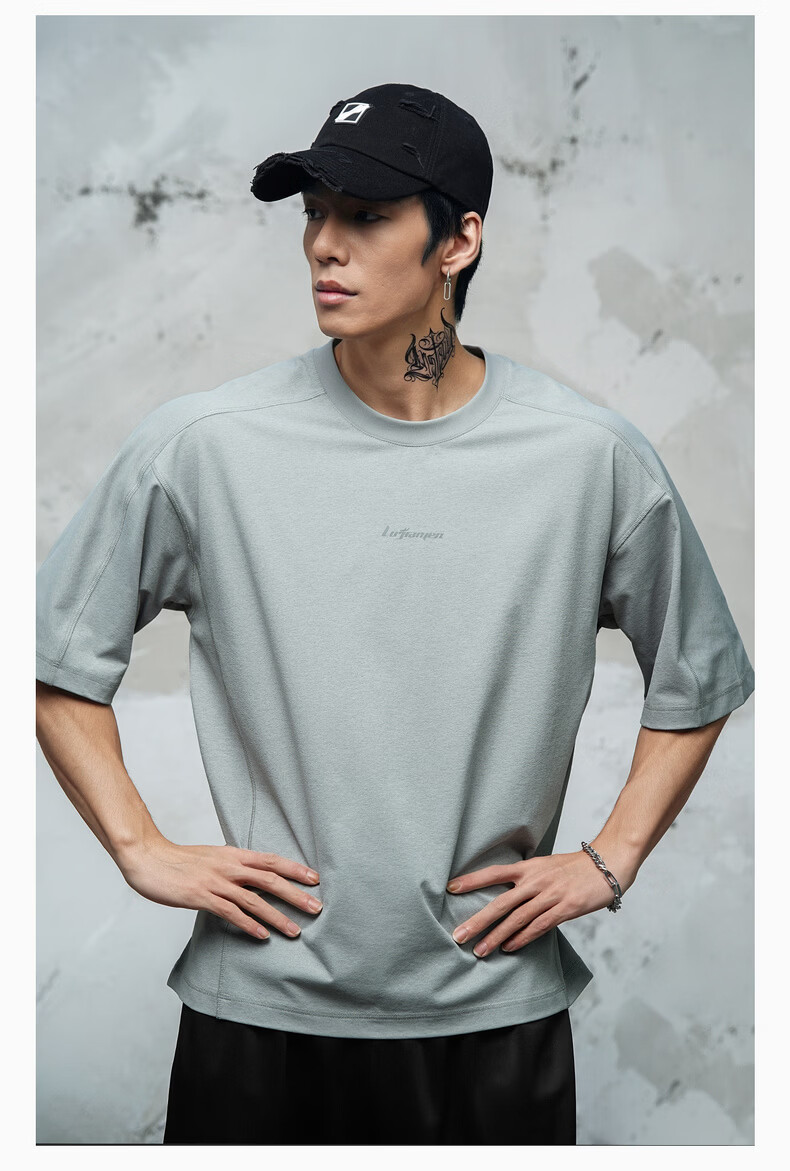 锐图森男士夏季速干运动套装凉感短袖短裤套装简约户外跑步健身运动套装 Z04套装灰色 XL(建议110-125斤)