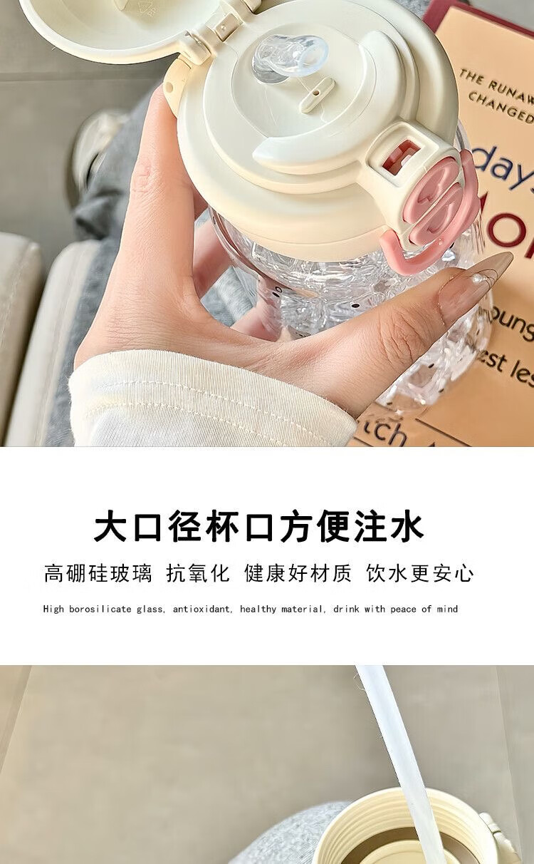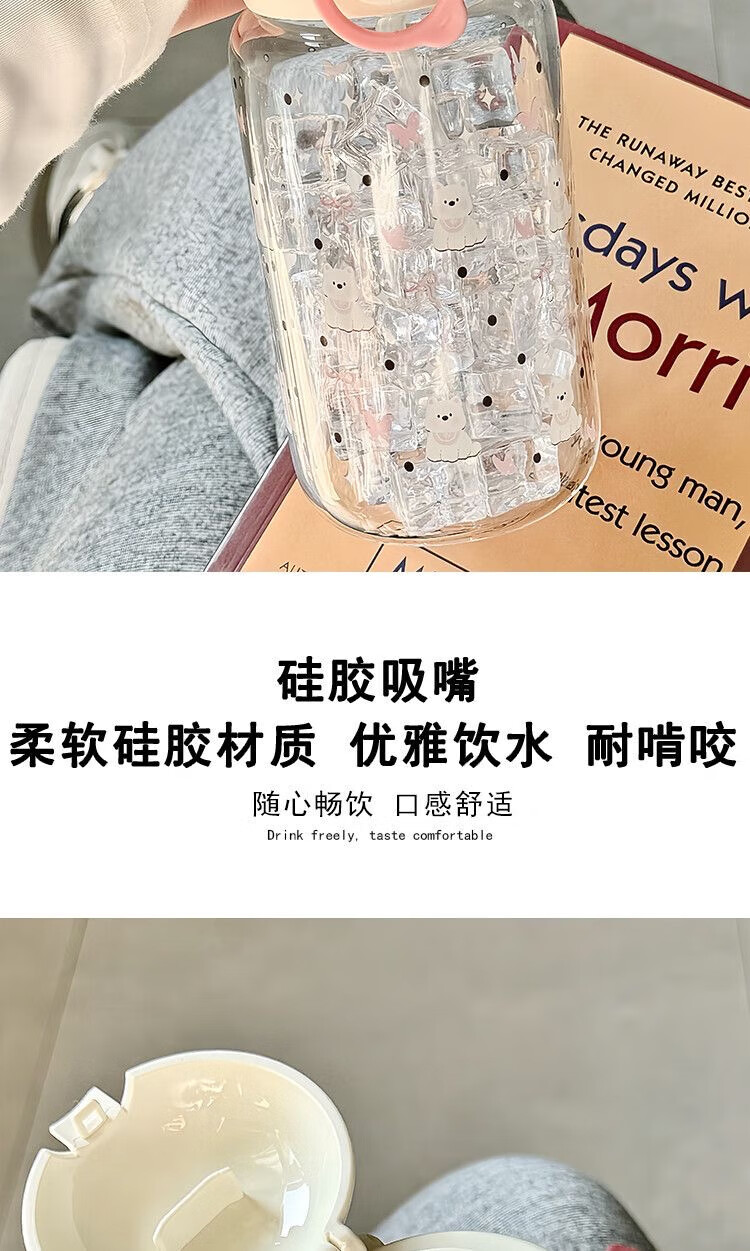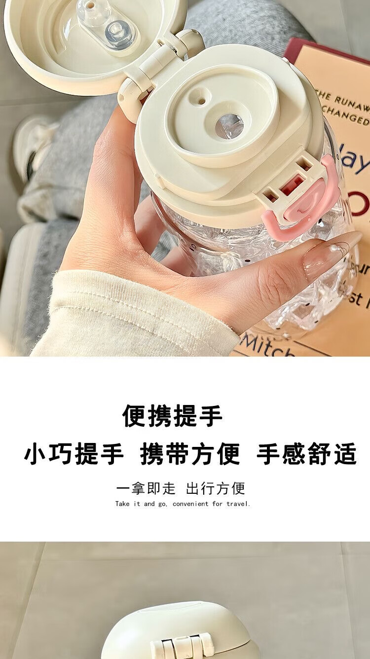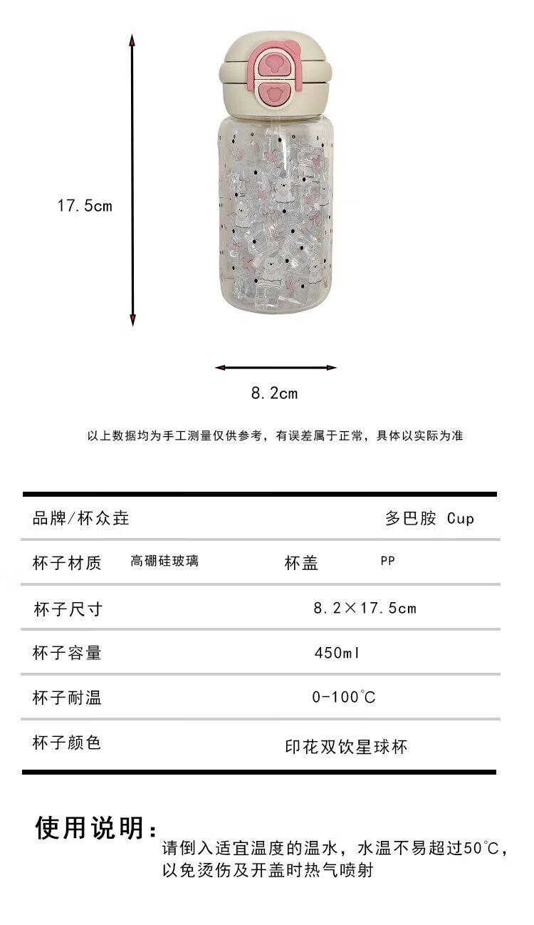 儿童水杯塑料实用卡通可爱双饮口女高颜值耐摔便携家用男吸管学生 白色点点 500ml 【PC材质】耐高温