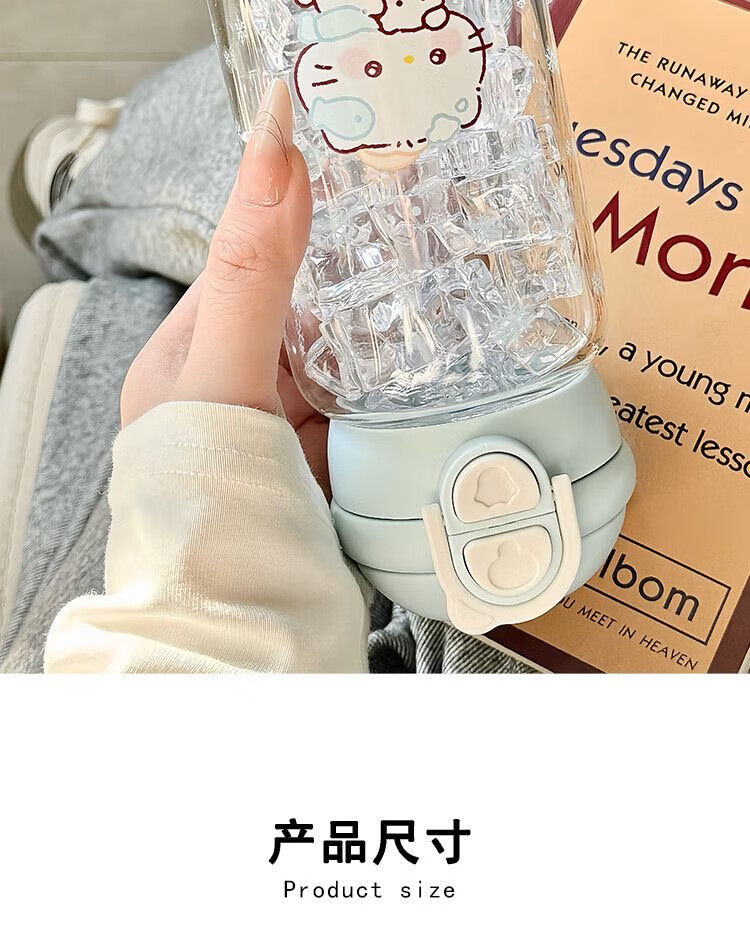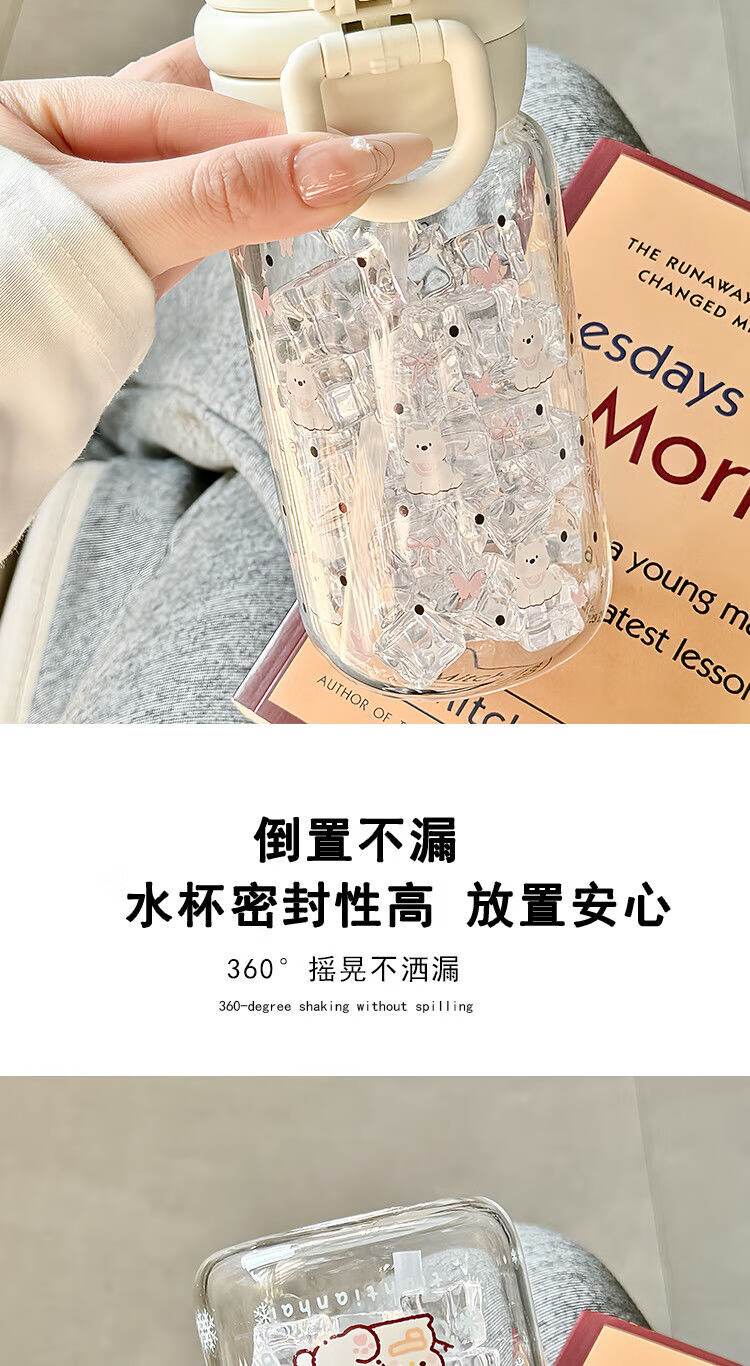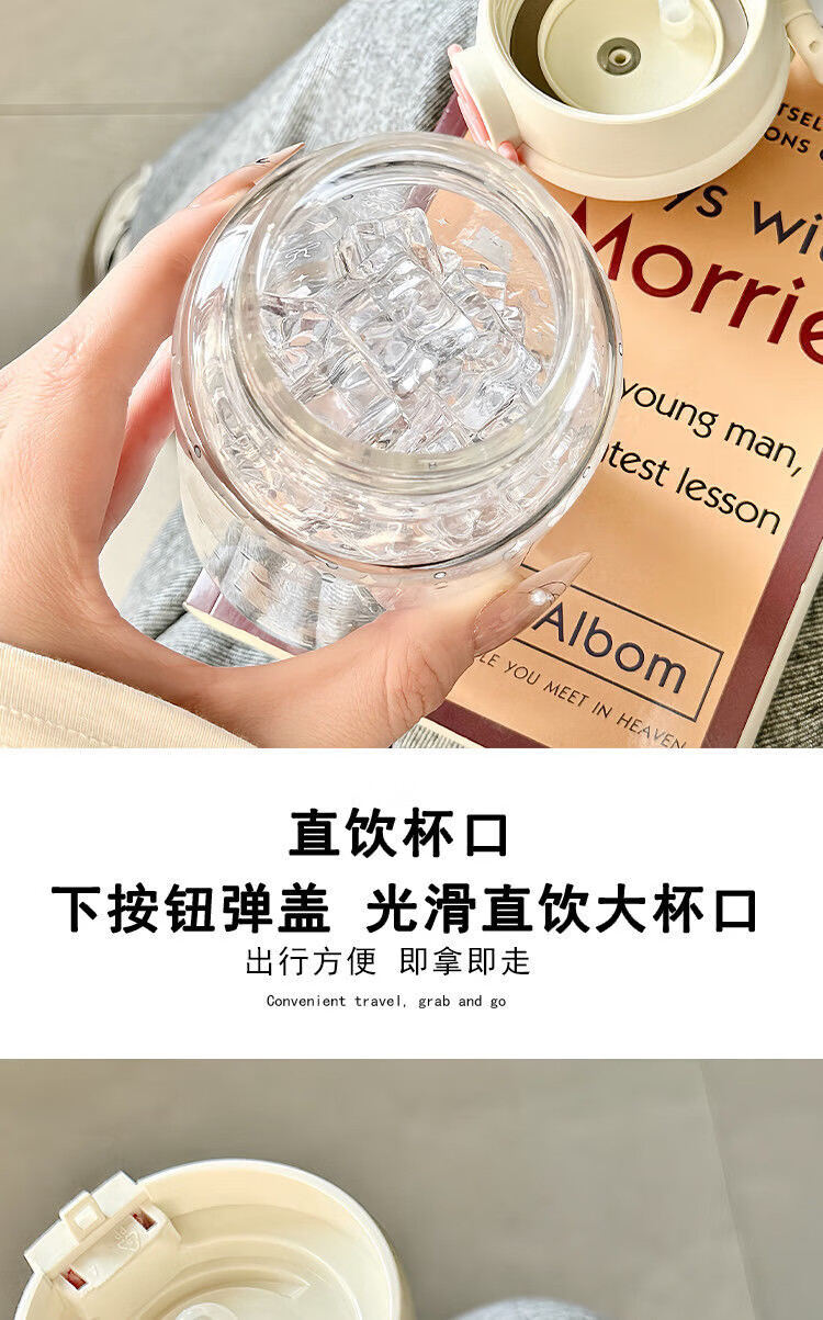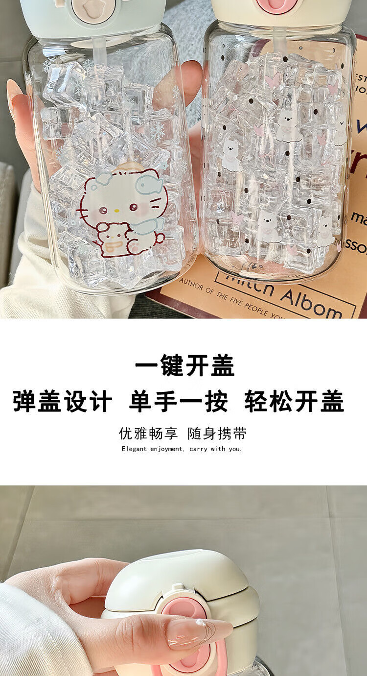 儿童水杯塑料实用卡通可爱双饮口女高颜值耐摔便携家用男吸管学生 白色点点 500ml 【PC材质】耐高温