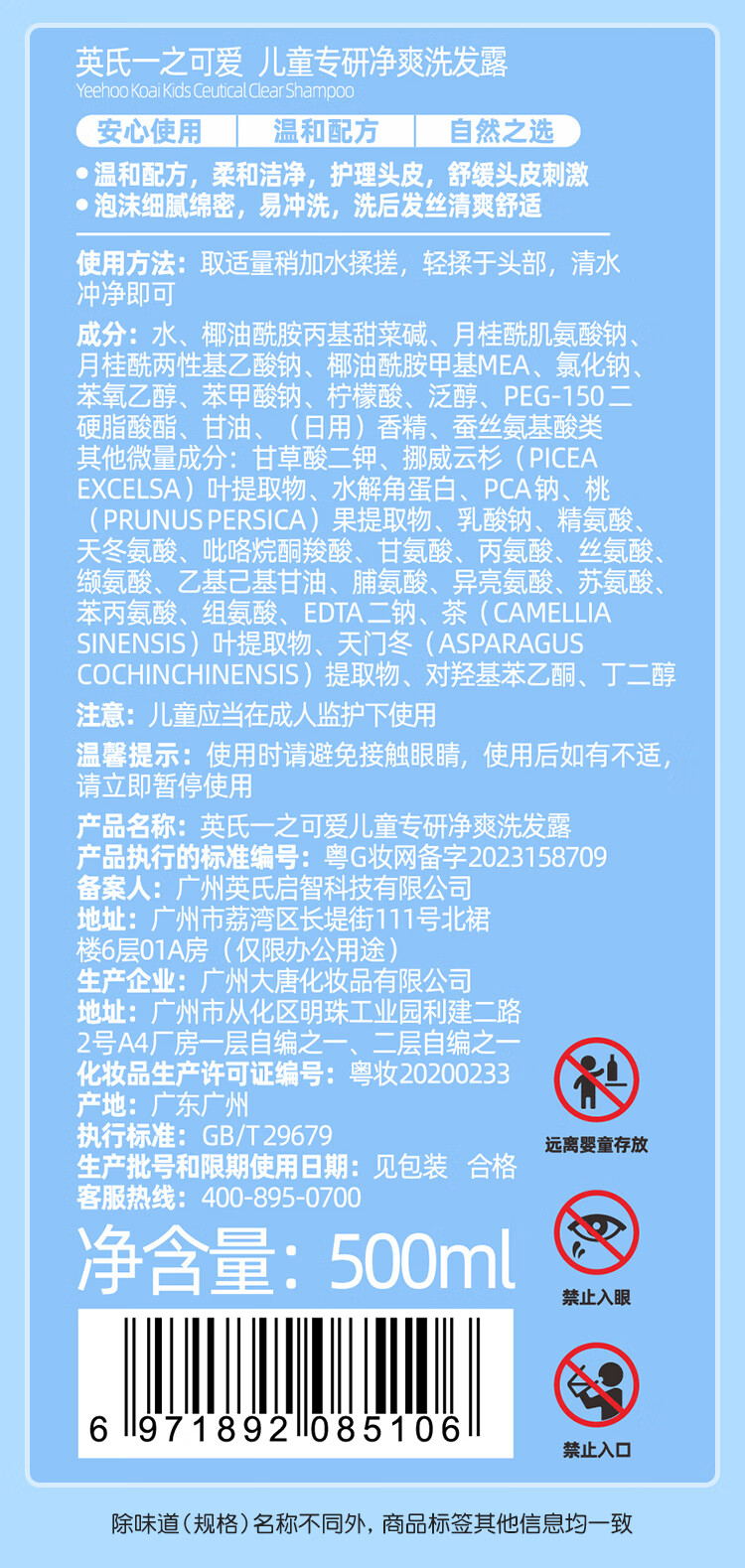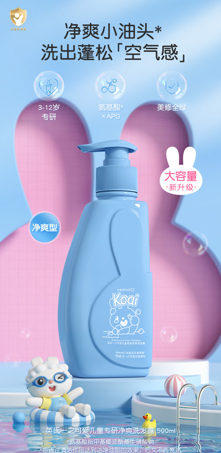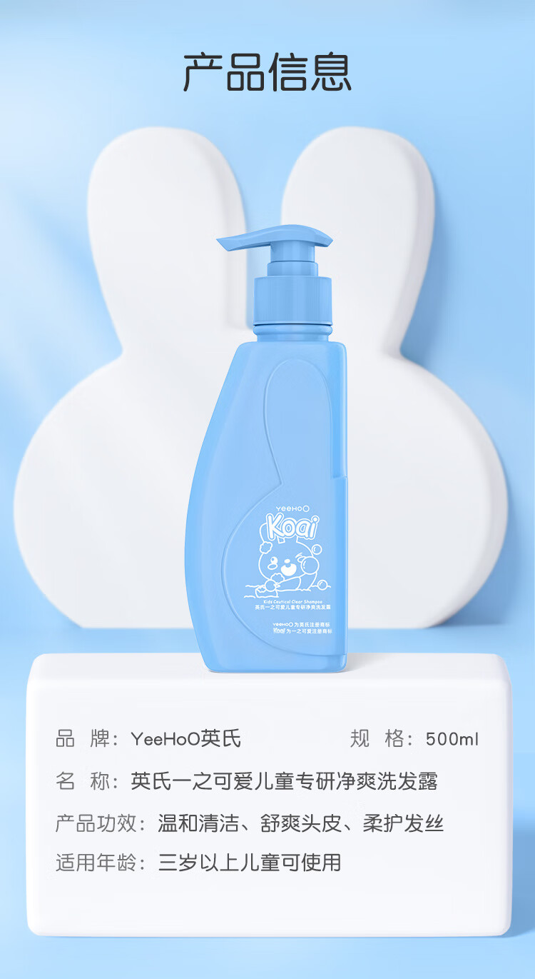 英氏儿童洗发水 儿童专用洗发露宝宝洗头水控油舒爽氨基酸洗发露500ml