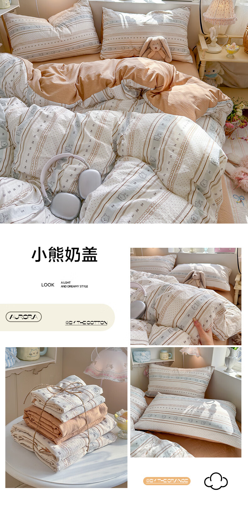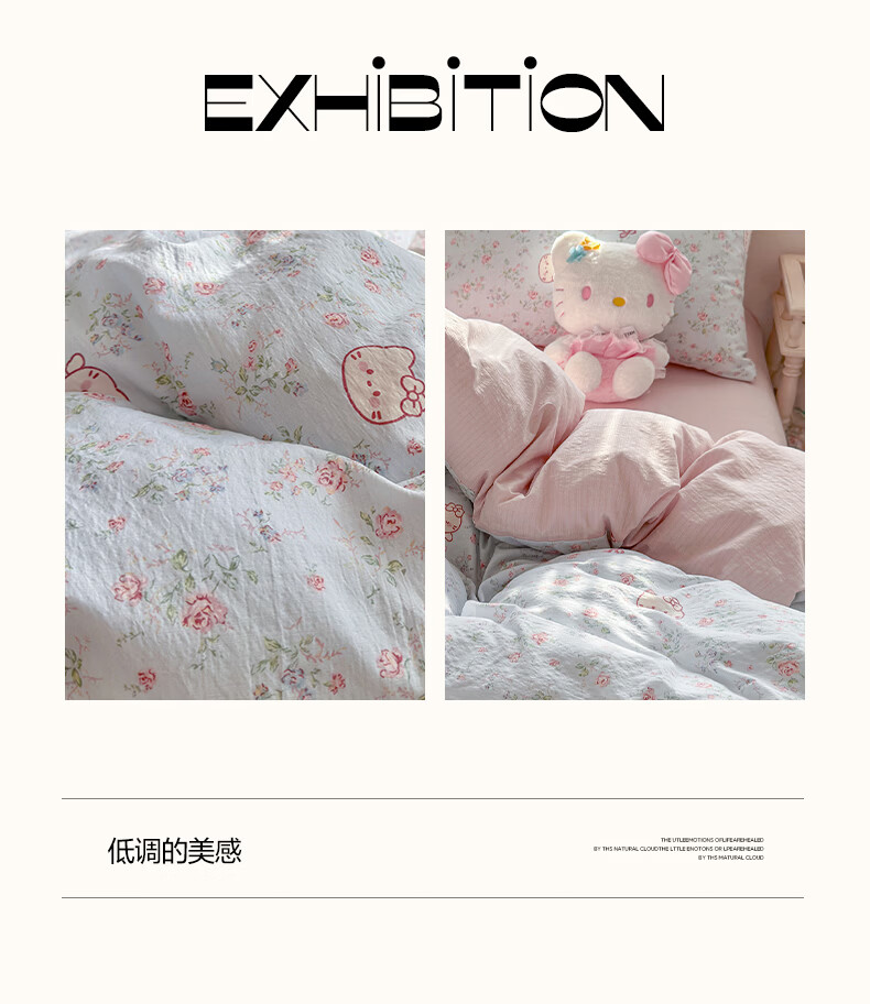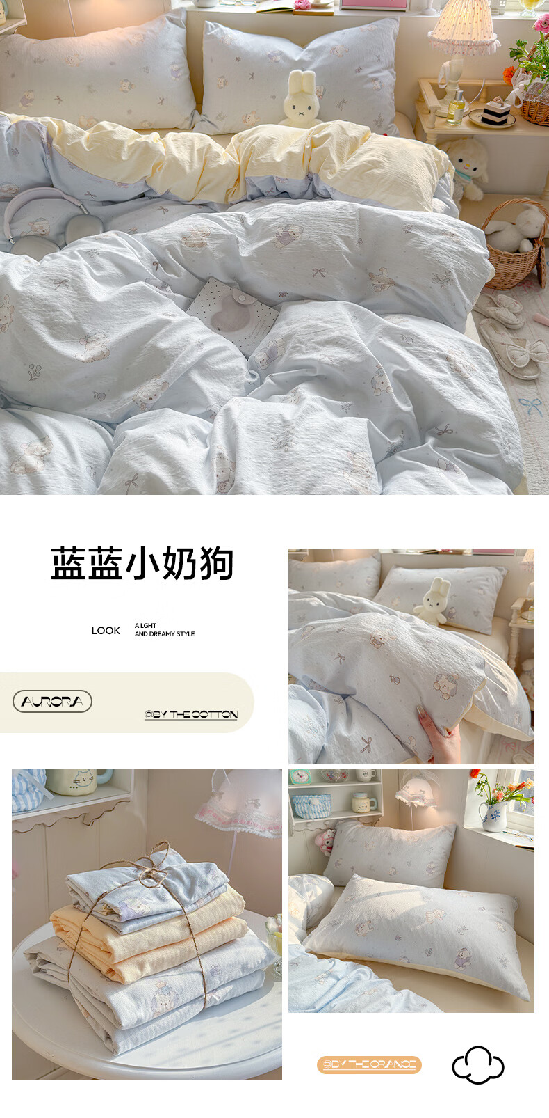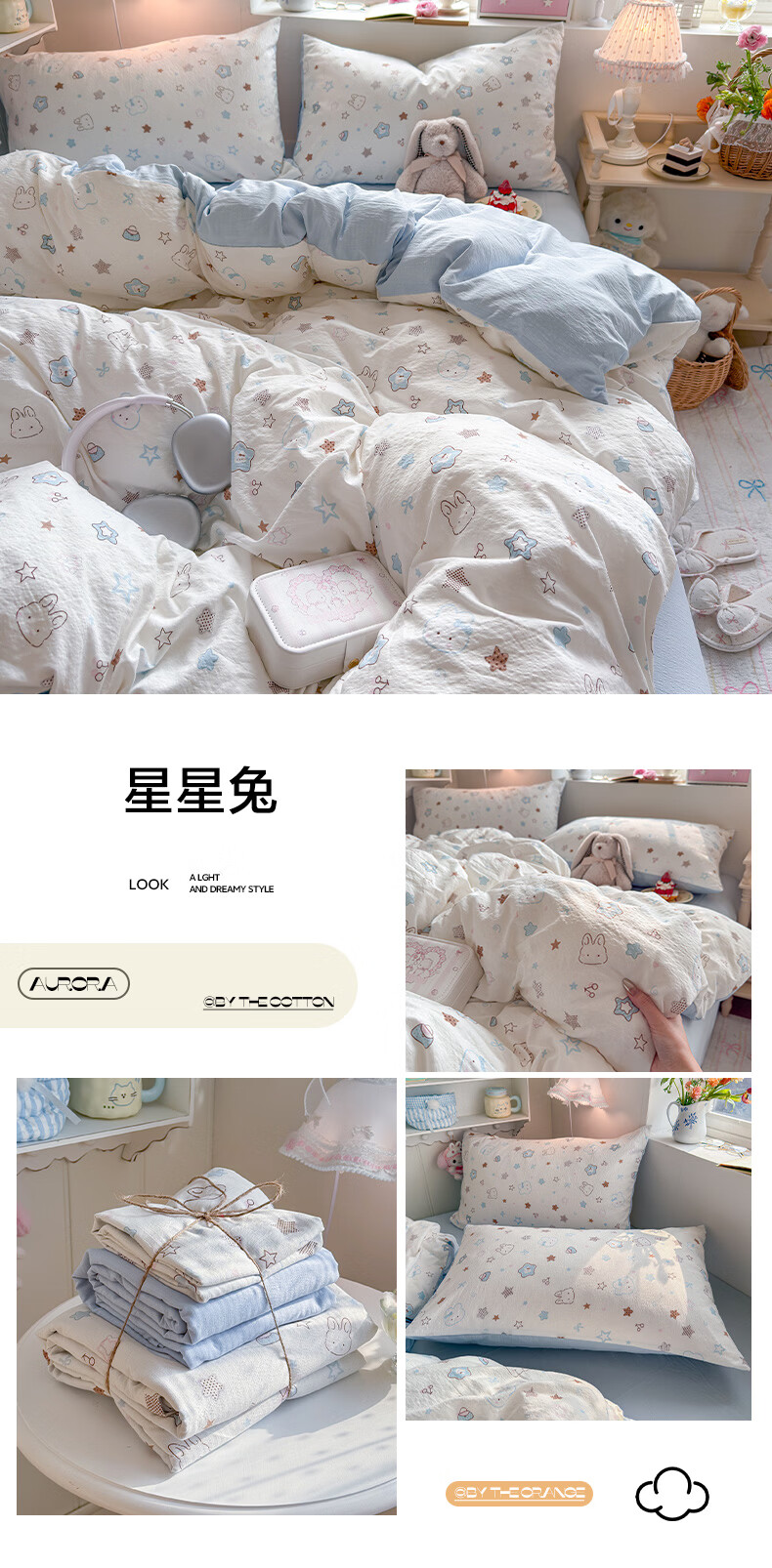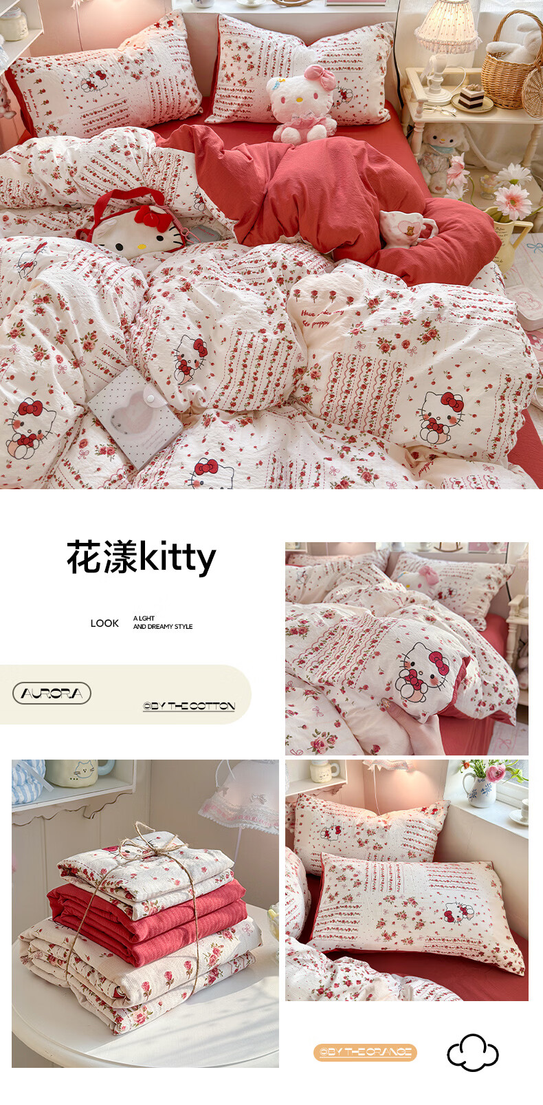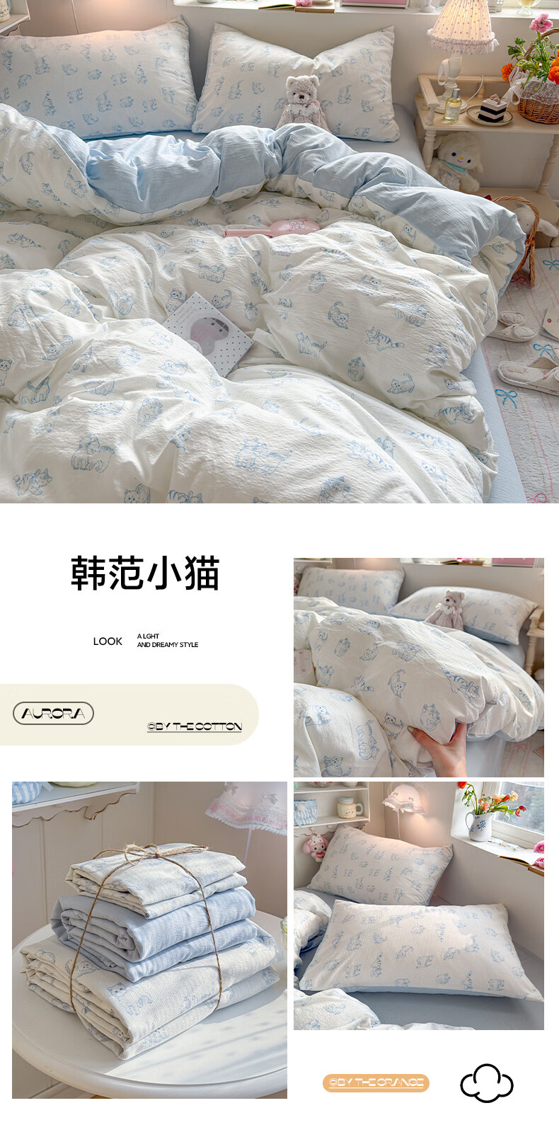 一默四件套被套床单床笠枕套居家A类小清新系列云感双层纱木棉四件套 kitty甜梦窝 2.0m 床单款 (被套200*230cm) 四件套