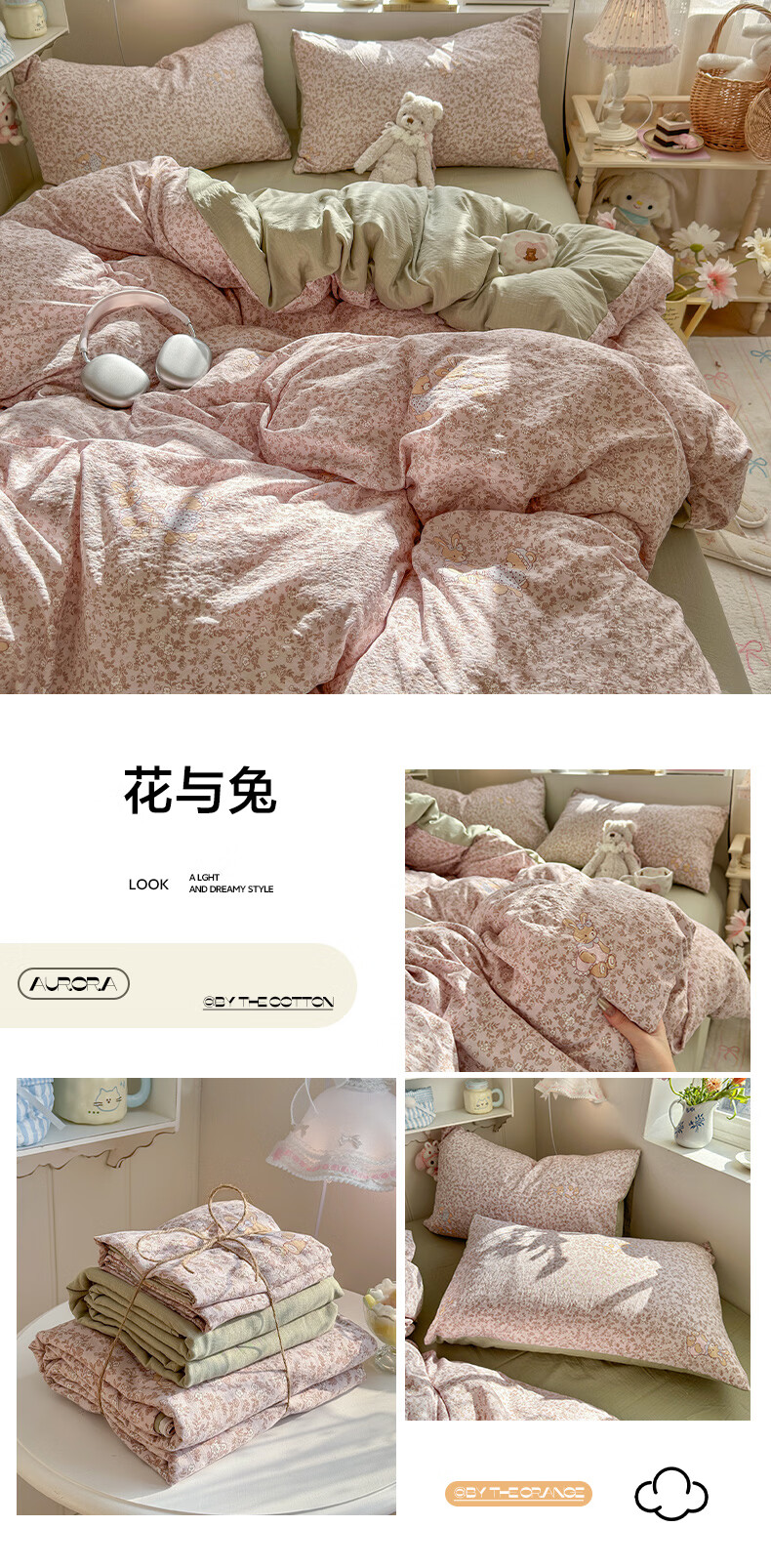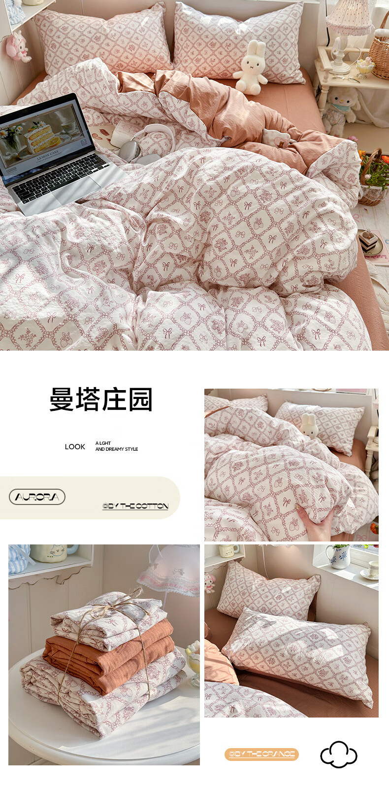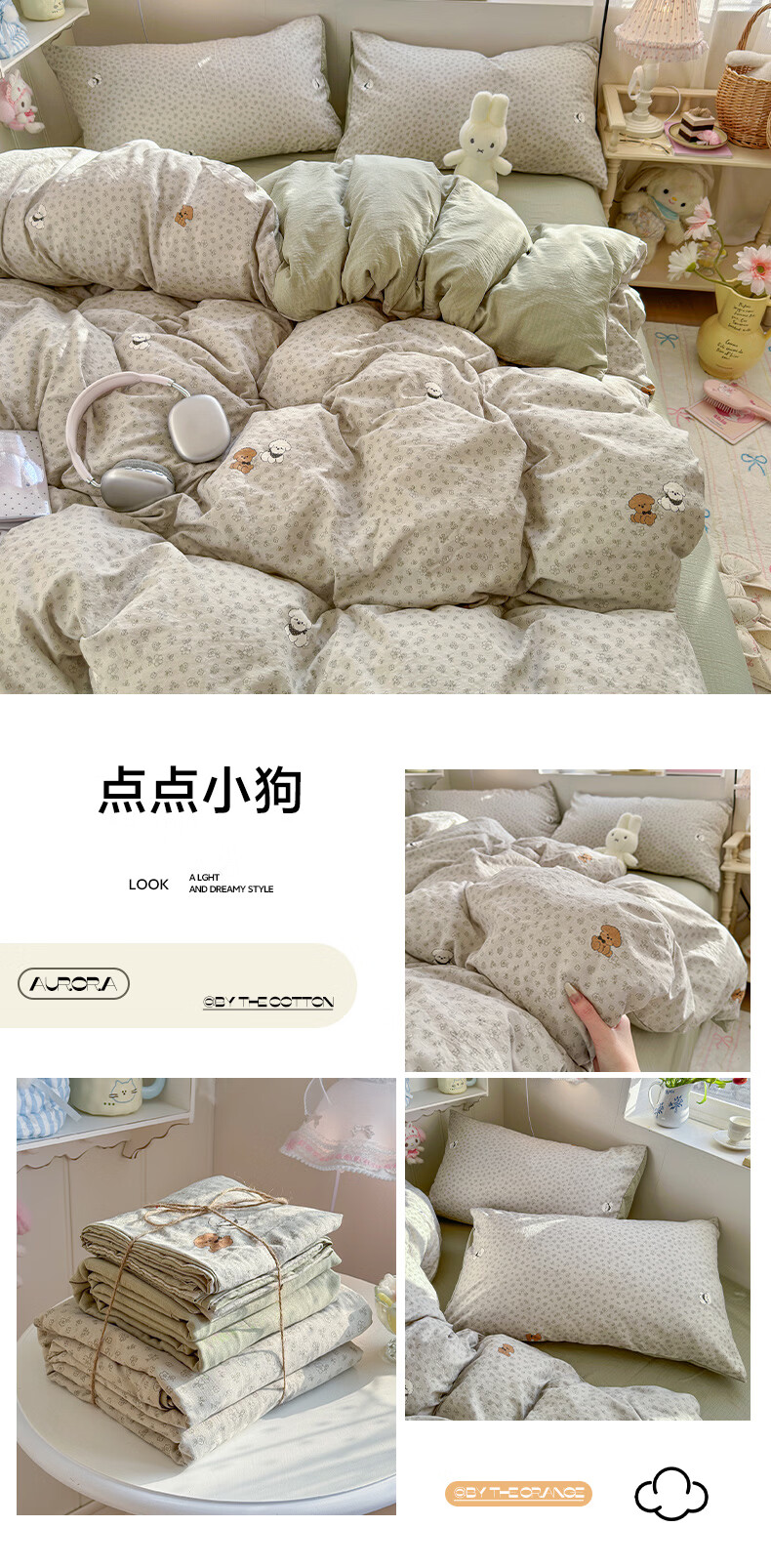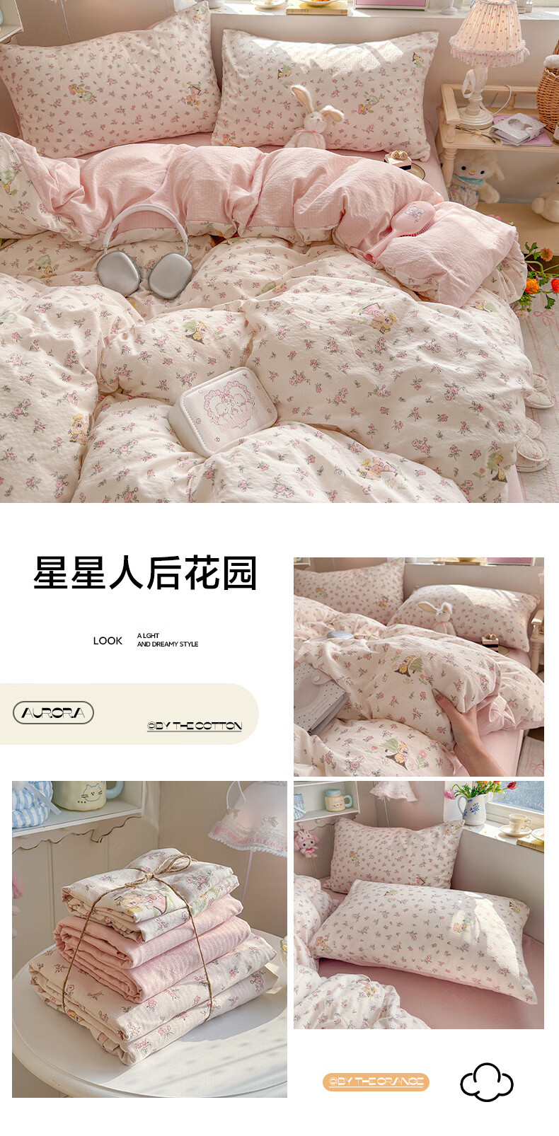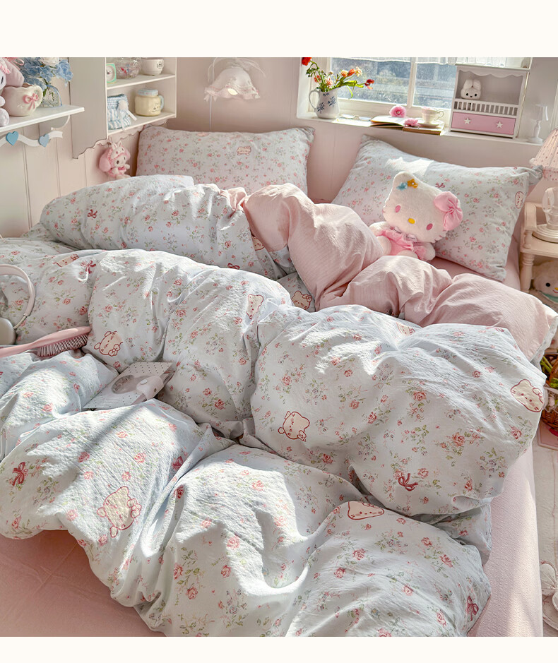 一默四件套被套床单床笠枕套居家A类小清新系列云感双层纱木棉四件套 kitty甜梦窝 2.0m 床单款 (被套200*230cm) 四件套