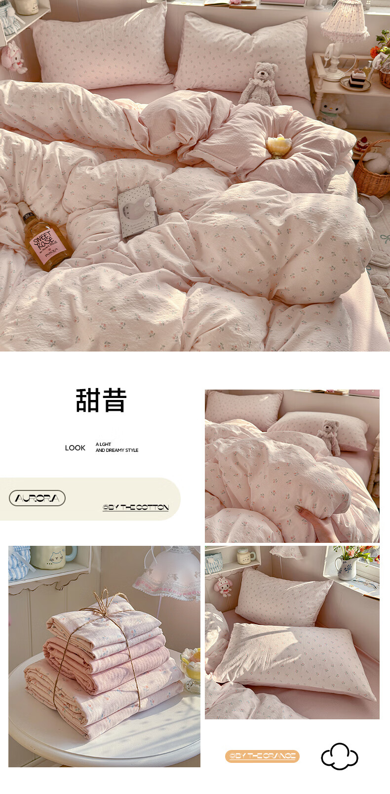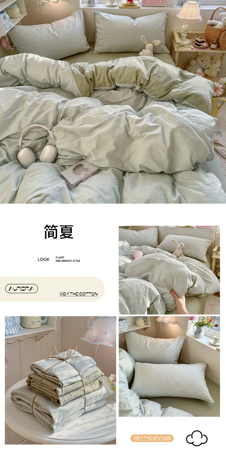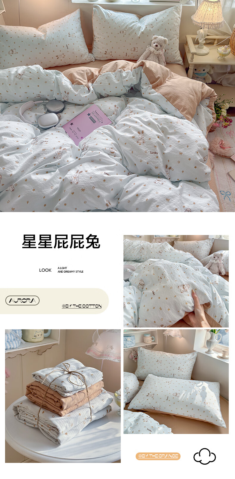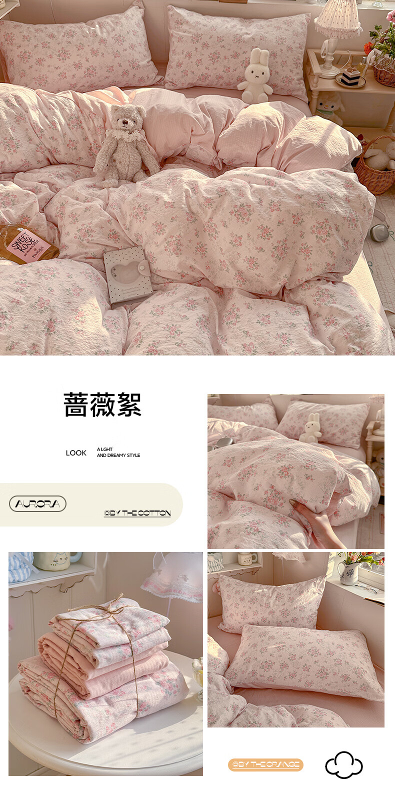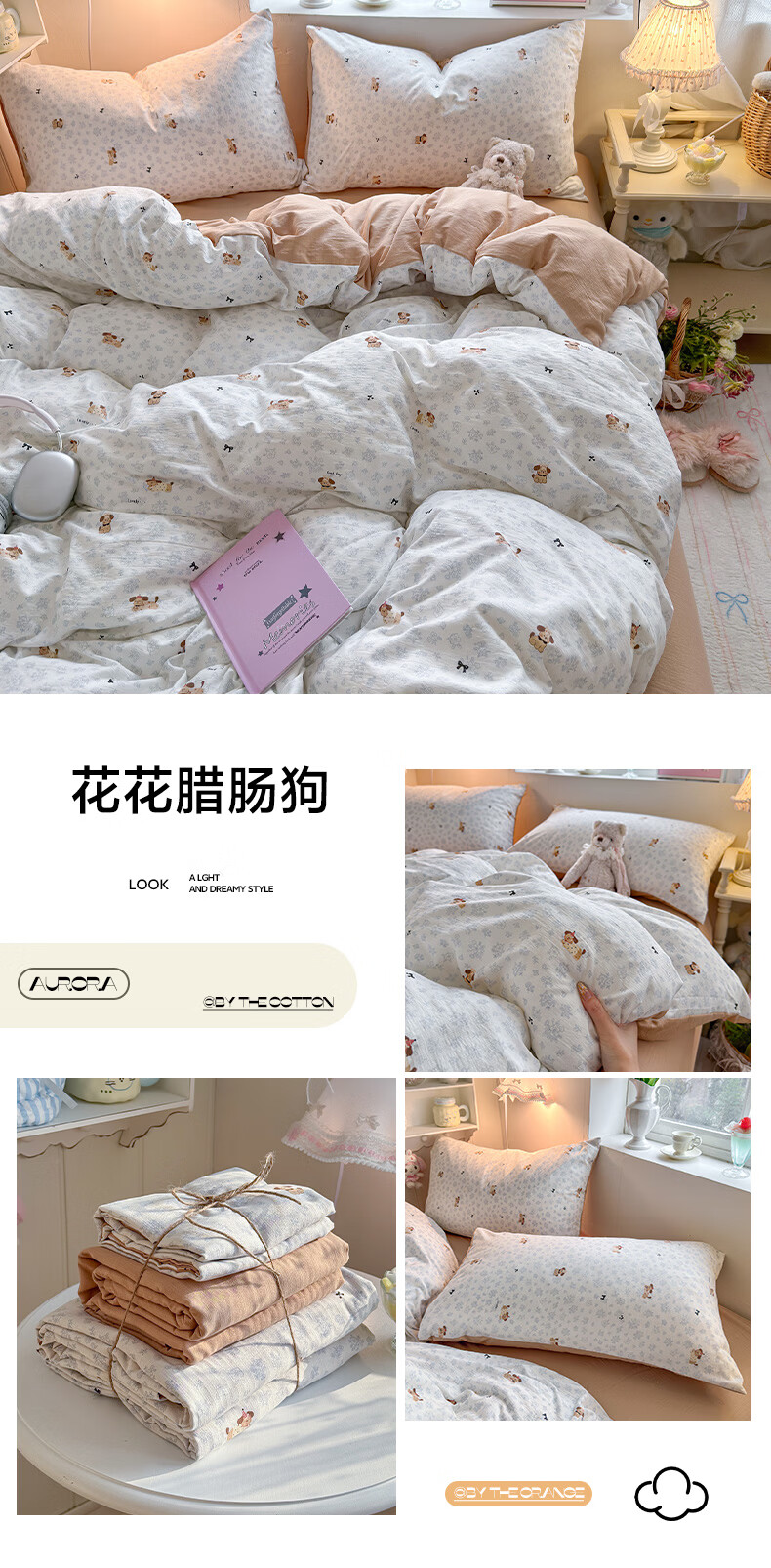 一默四件套被套床单床笠枕套居家A类小清新系列云感双层纱木棉四件套 kitty甜梦窝 2.0m 床单款 (被套200*230cm) 四件套