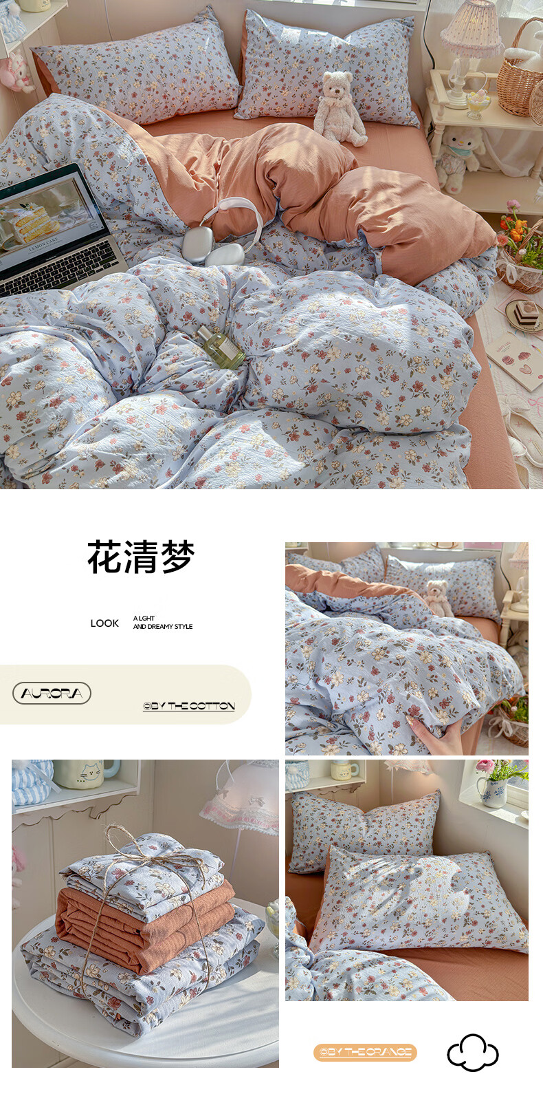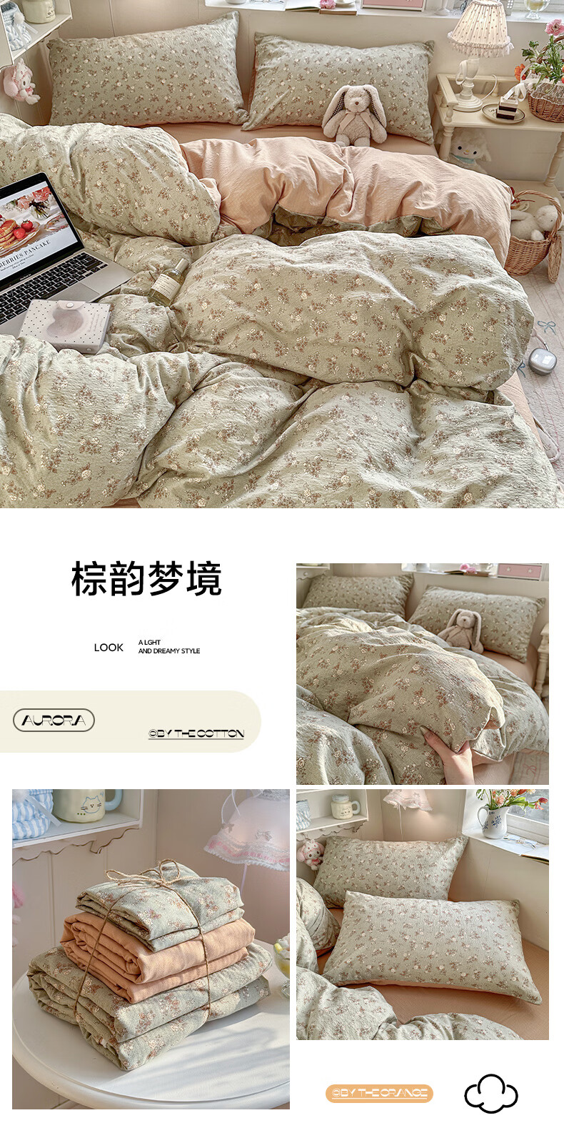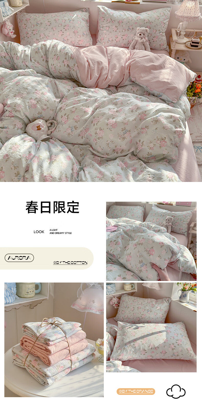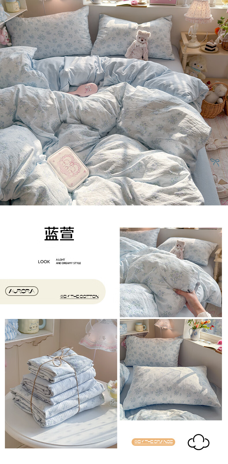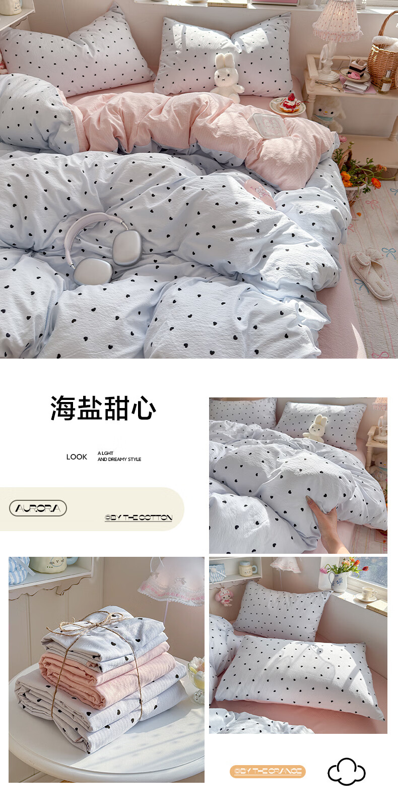一默四件套被套床单床笠枕套居家A类小清新系列云感双层纱木棉四件套 kitty甜梦窝 2.0m 床单款 (被套200*230cm) 四件套