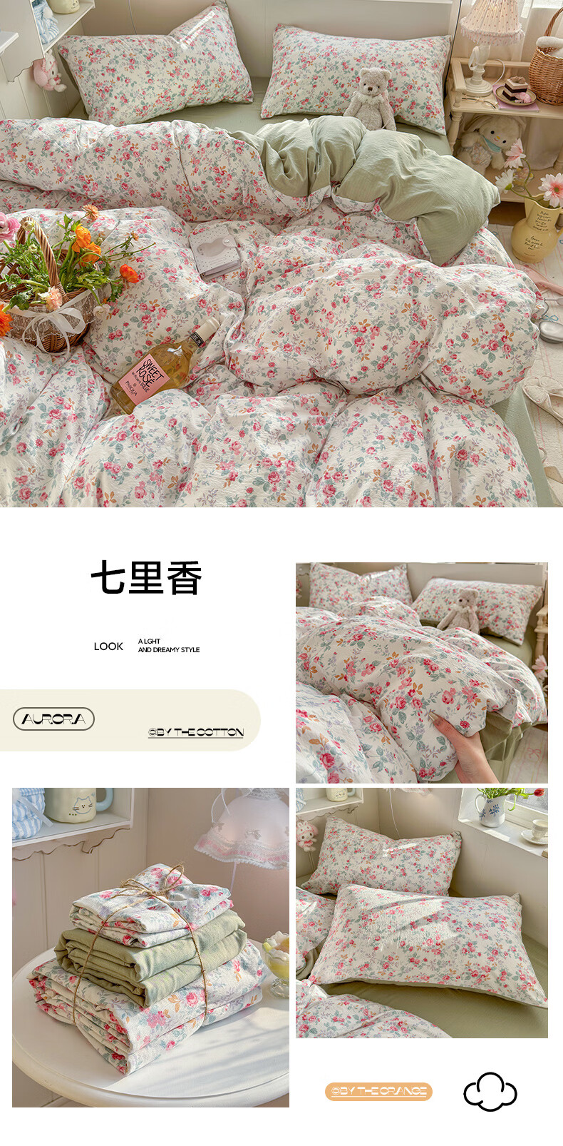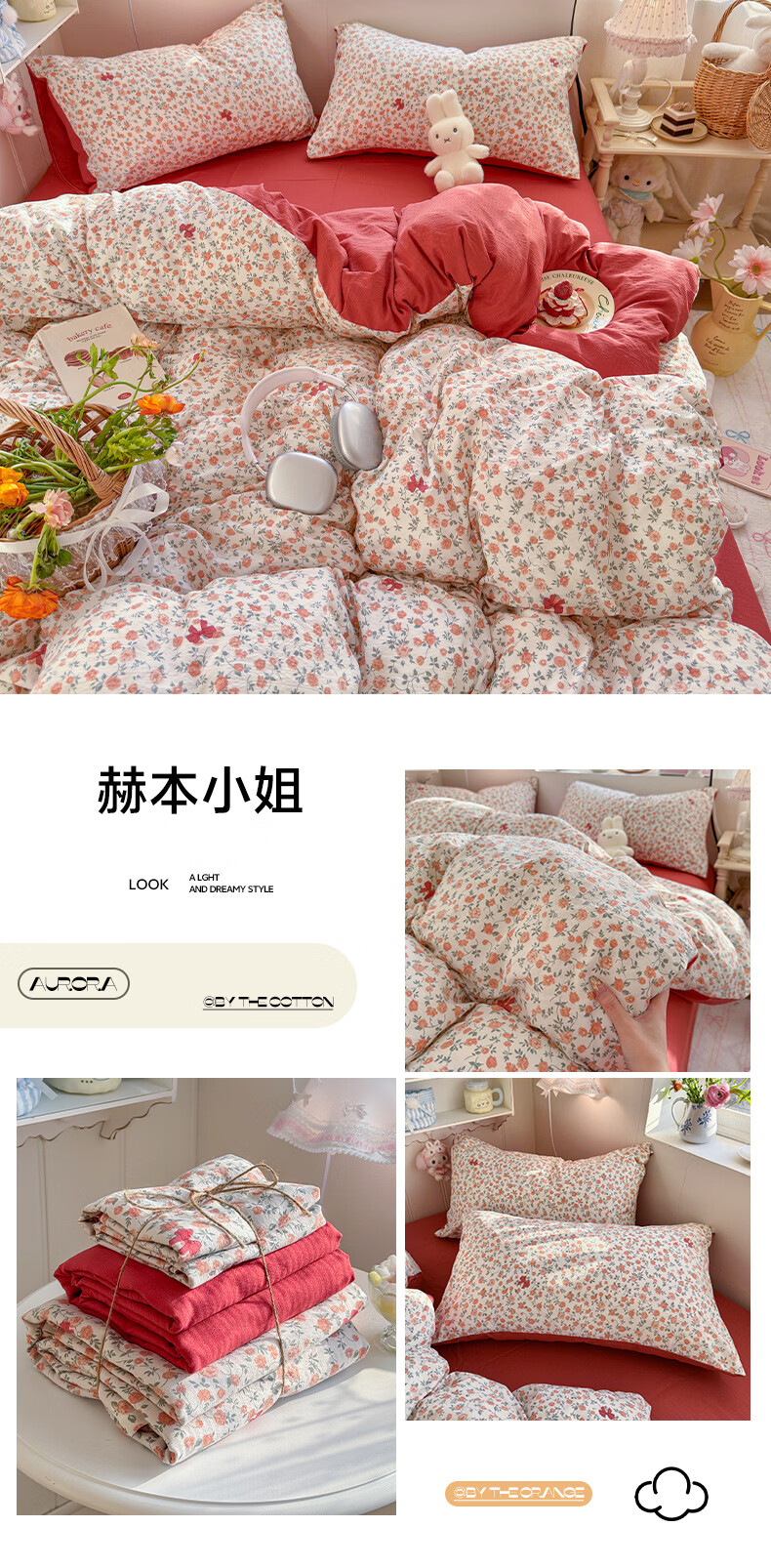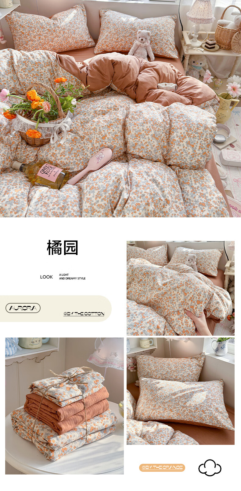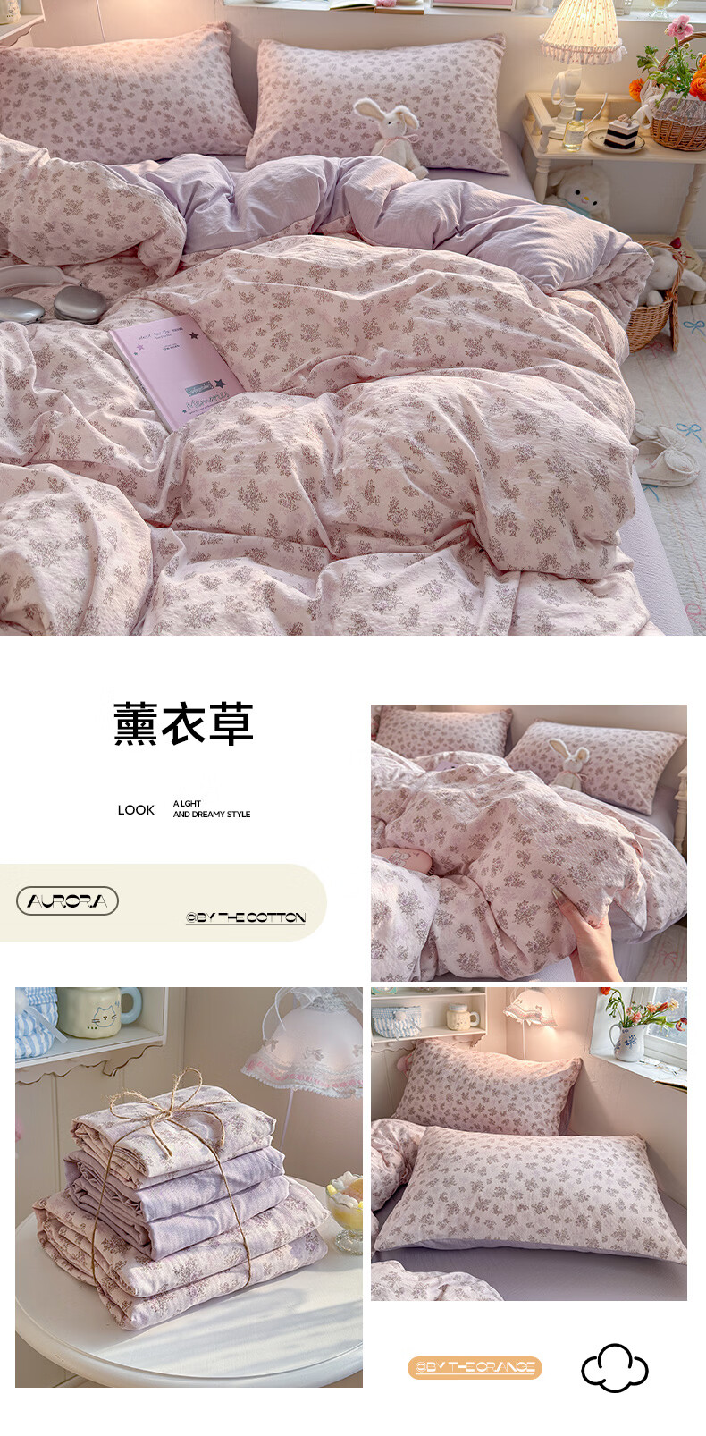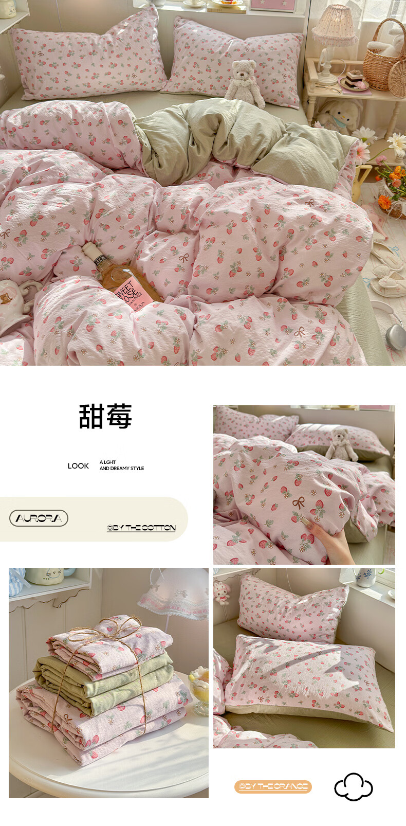 一默四件套被套床单床笠枕套居家A类小清新系列云感双层纱木棉四件套 kitty甜梦窝 2.0m 床单款 (被套200*230cm) 四件套