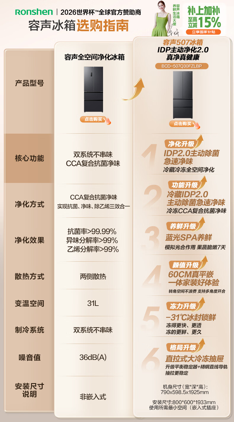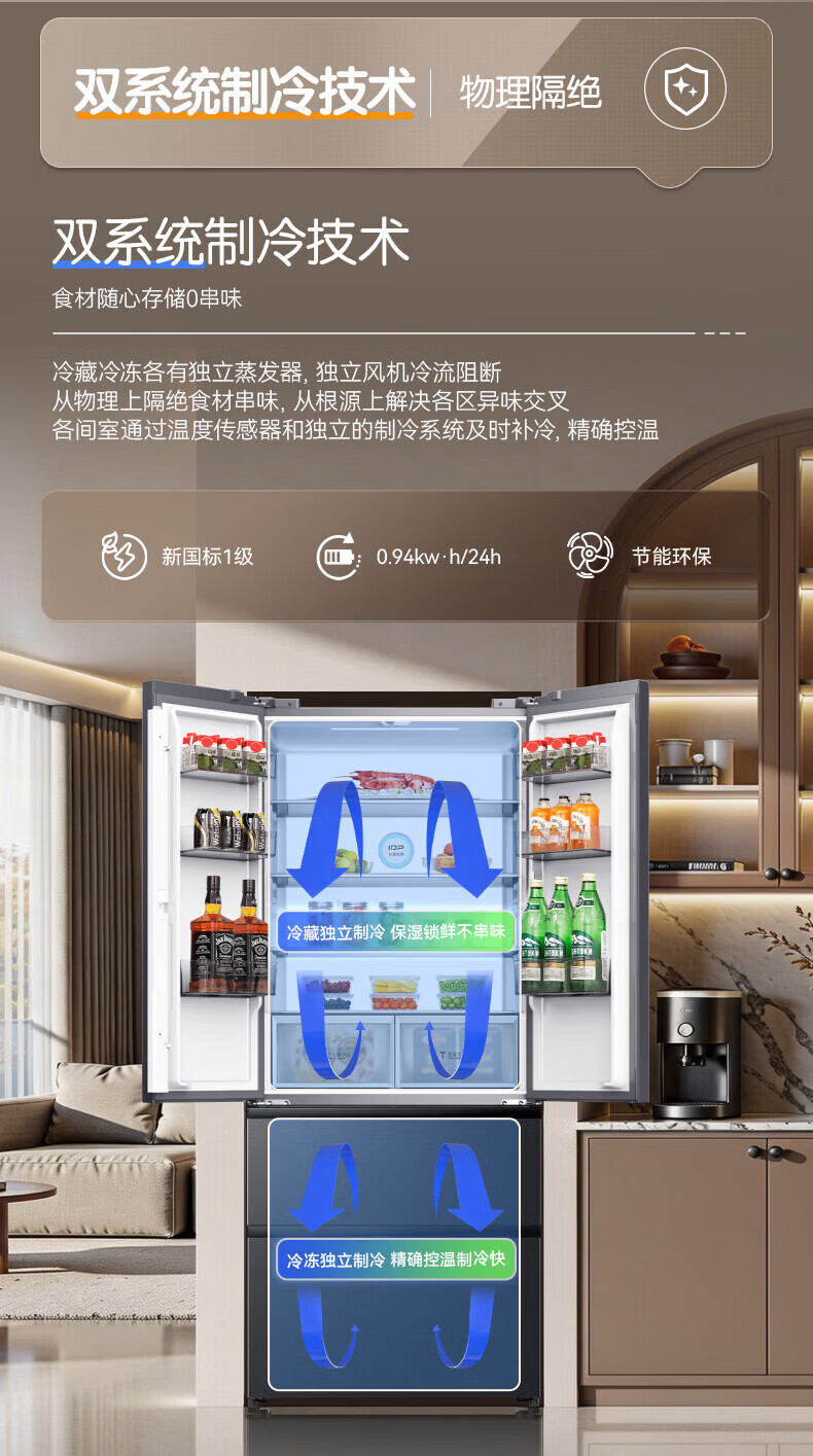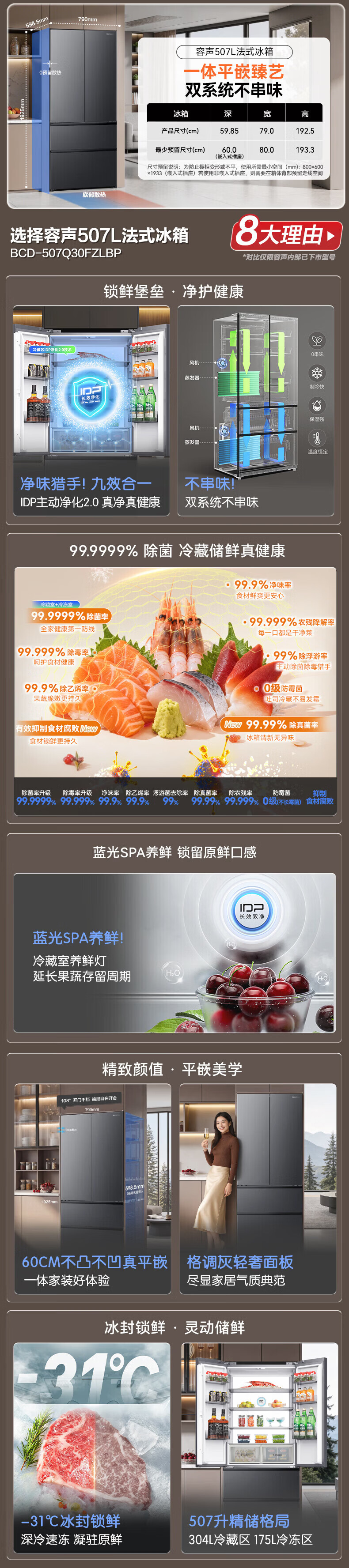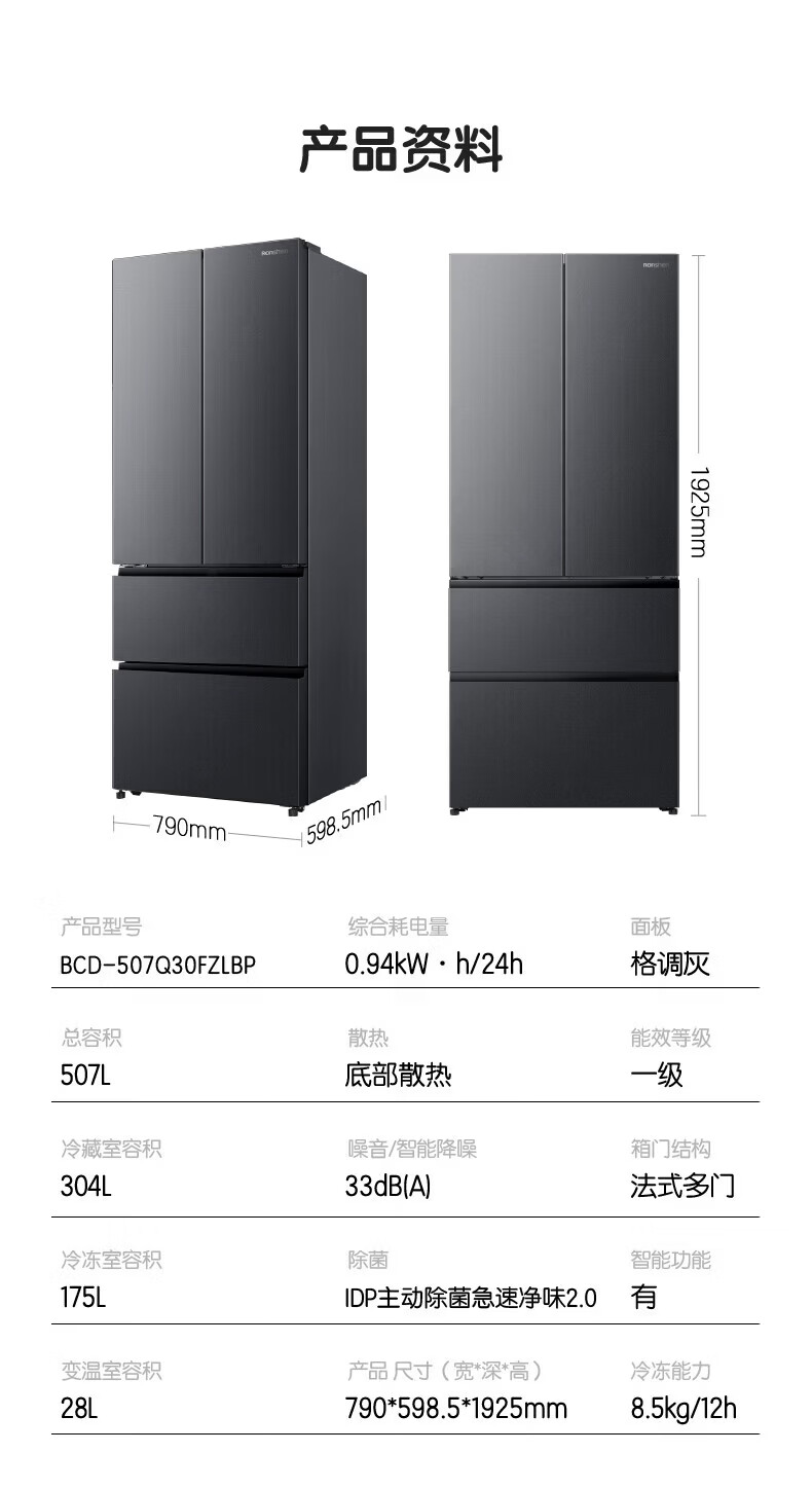 容声【新品】507L法式多门四开门超薄零嵌入式IDP2.0净味双系统新国标一级能双变频双养鲜双齐平冰箱 BCD-507Q30FZLBP