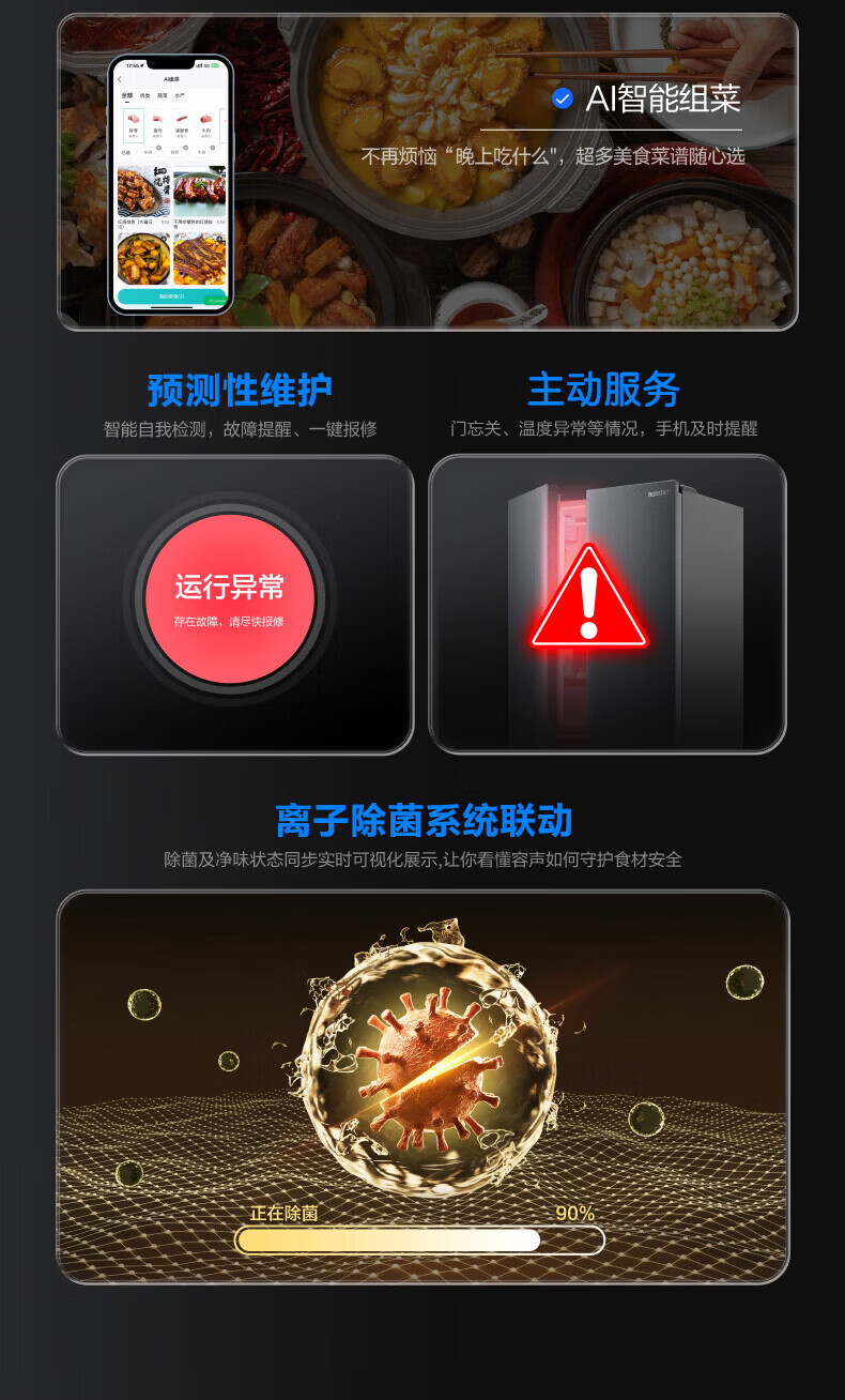 米家小米610升冰箱对开门双开门大容量风冷无霜银离子除菌 一级能效BCD-610WMSA 610L 对开门 墨羽岩