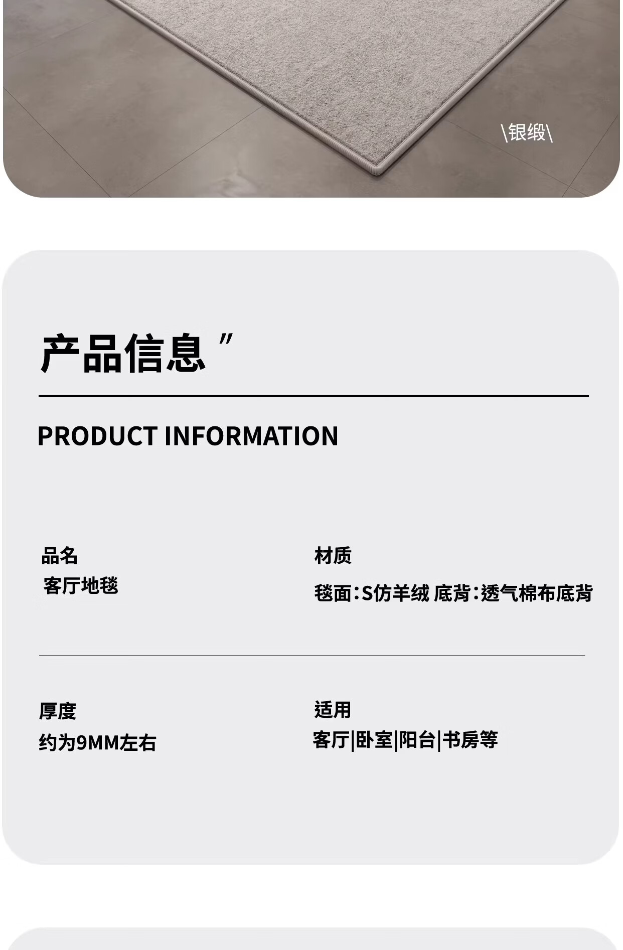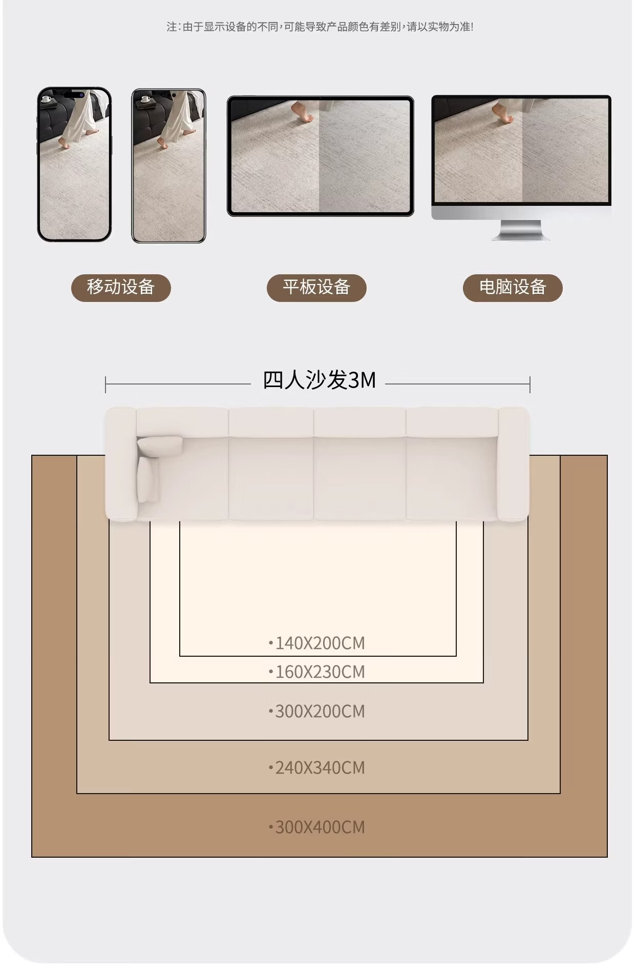 Y U-LIVE地毯客厅意式极简纯色2026新款现代轻奢高级免洗可擦防水沙发 S仿羊绒-萦绪 140×200cm【精致双线包边】