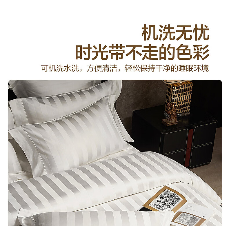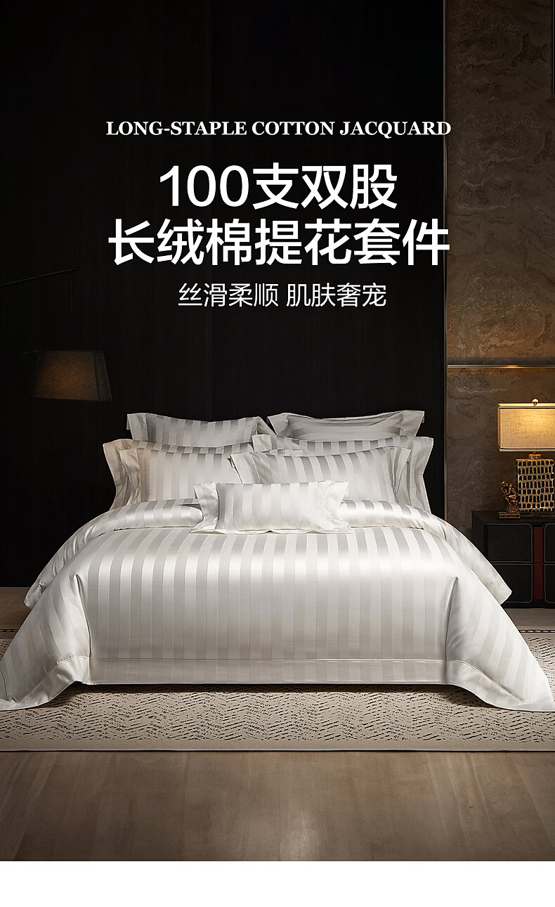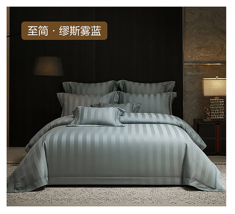 水星家纺床上四件套100支双股长绒棉轻松高级感至简系列26年新款轻奢套件 [100S双股长绒棉]至简轻奢提花-蓝 1.5m 床单款 (被套200*230cm)