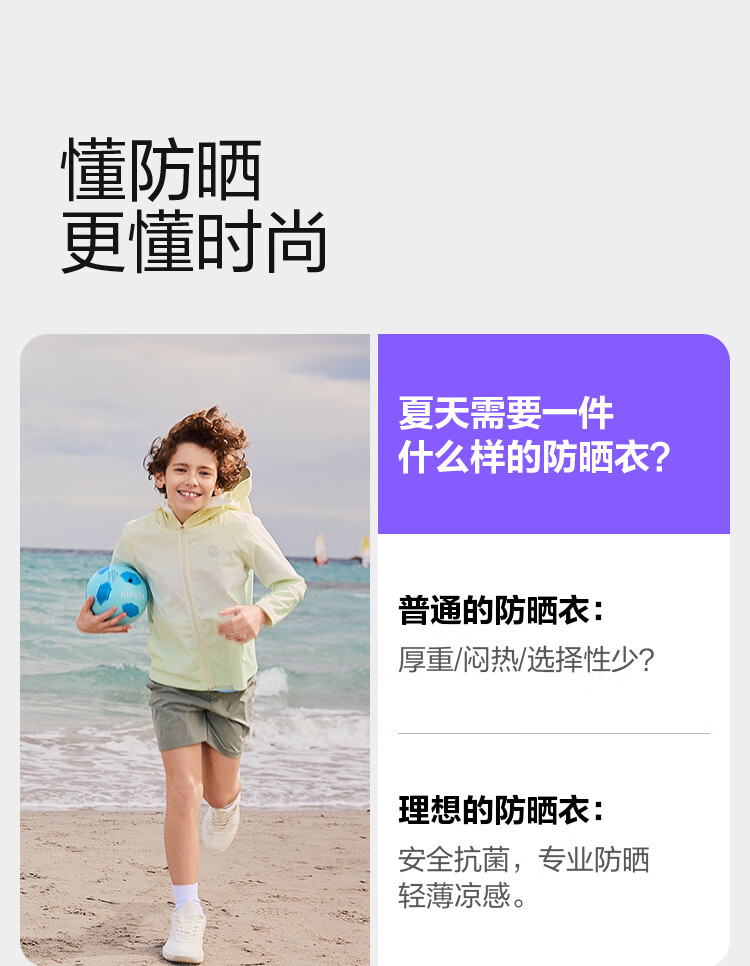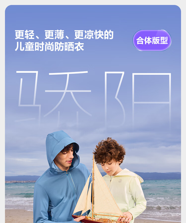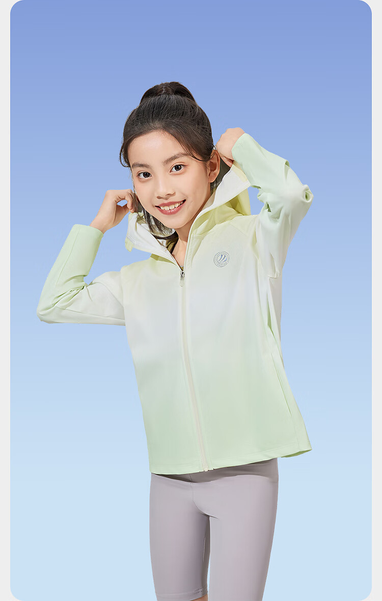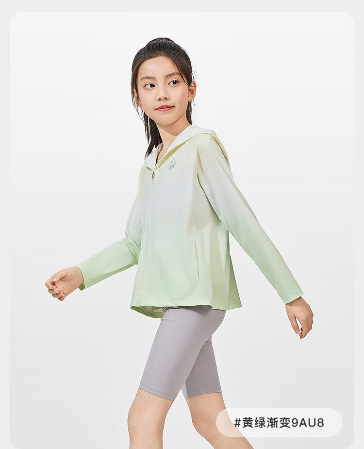 波司登(BOSIDENG)夏季国标防晒衣男女儿童UPF100+原纱凉感运动户外出游外套 黄绿渐变9AU8 130 /64