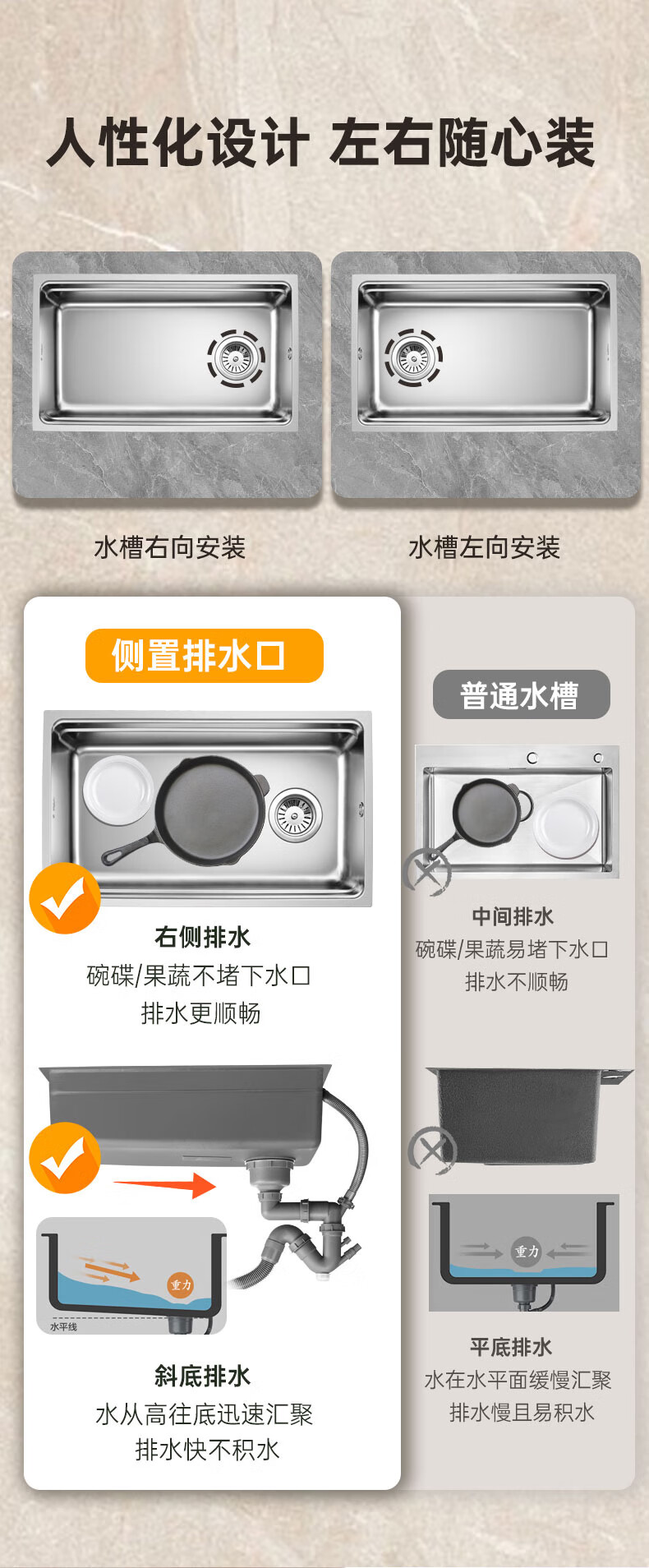 箭牌聚宝盆侧排洗菜盆水槽大单槽厨房304不锈钢纳米灰【焕新补贴15%】