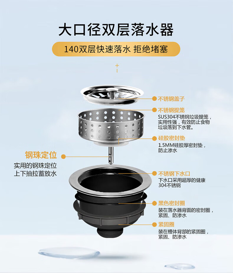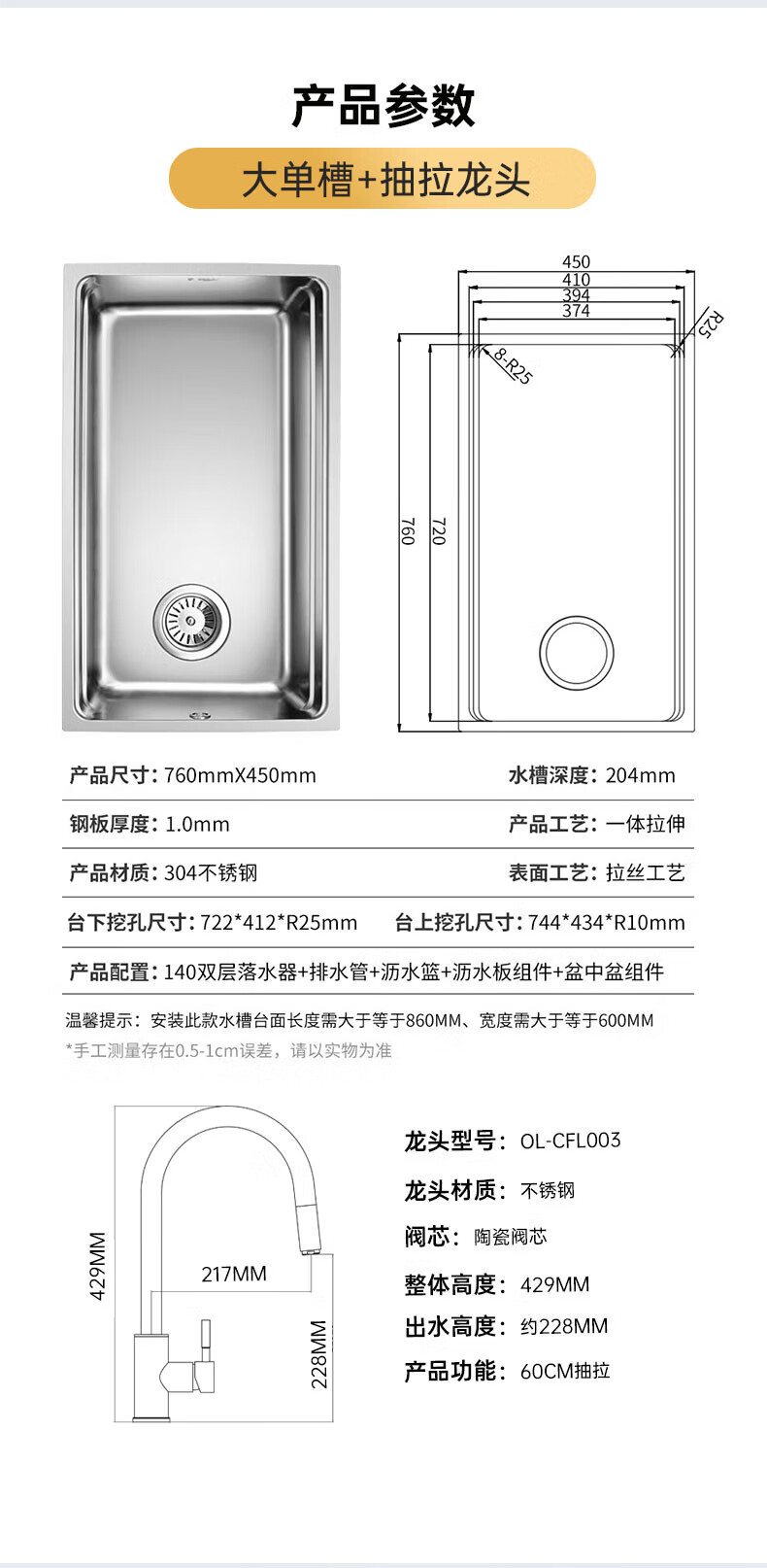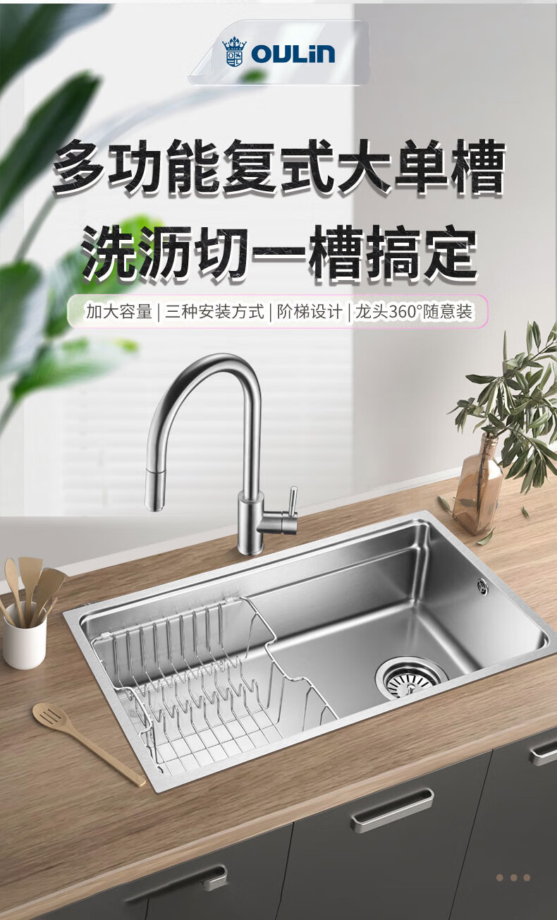 欧琳水槽单槽套餐 厨房304不锈钢洗菜盆 洗碗槽大单槽 OLJD637