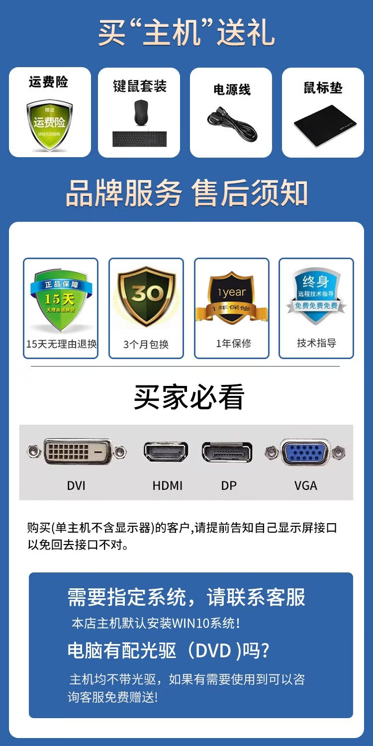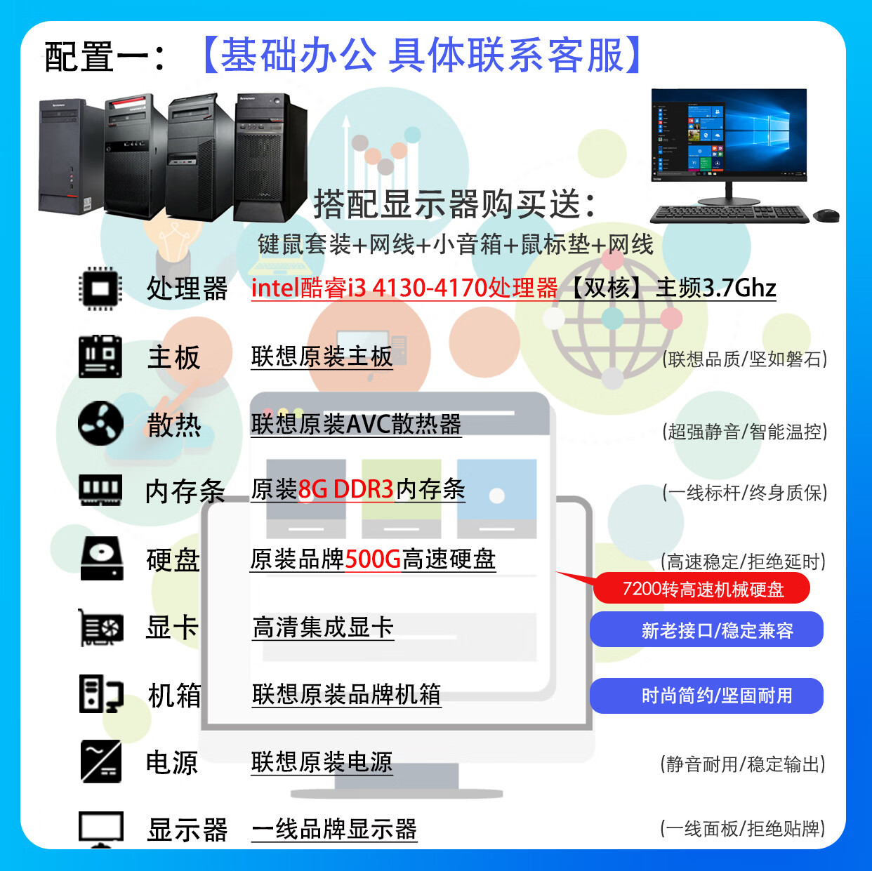 联想电脑台式主机整机 i3 i5 i7 商务办公家用娱乐显示器全套台式机 配置一:i3四代8G 500G基础办公具体联系客服 主机+19寸LED显示器【9新】送键盘鼠标小音箱
