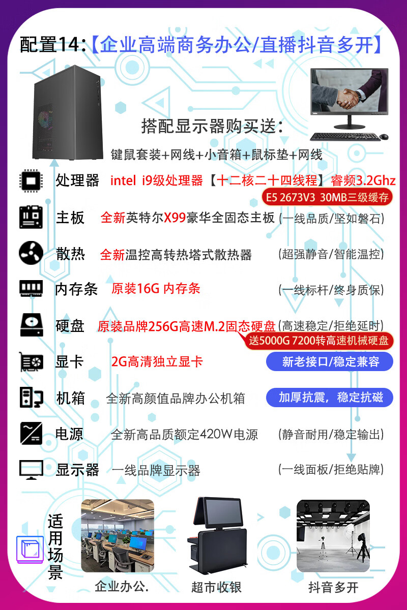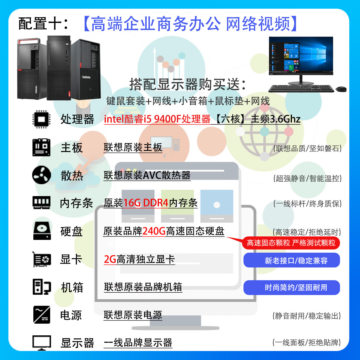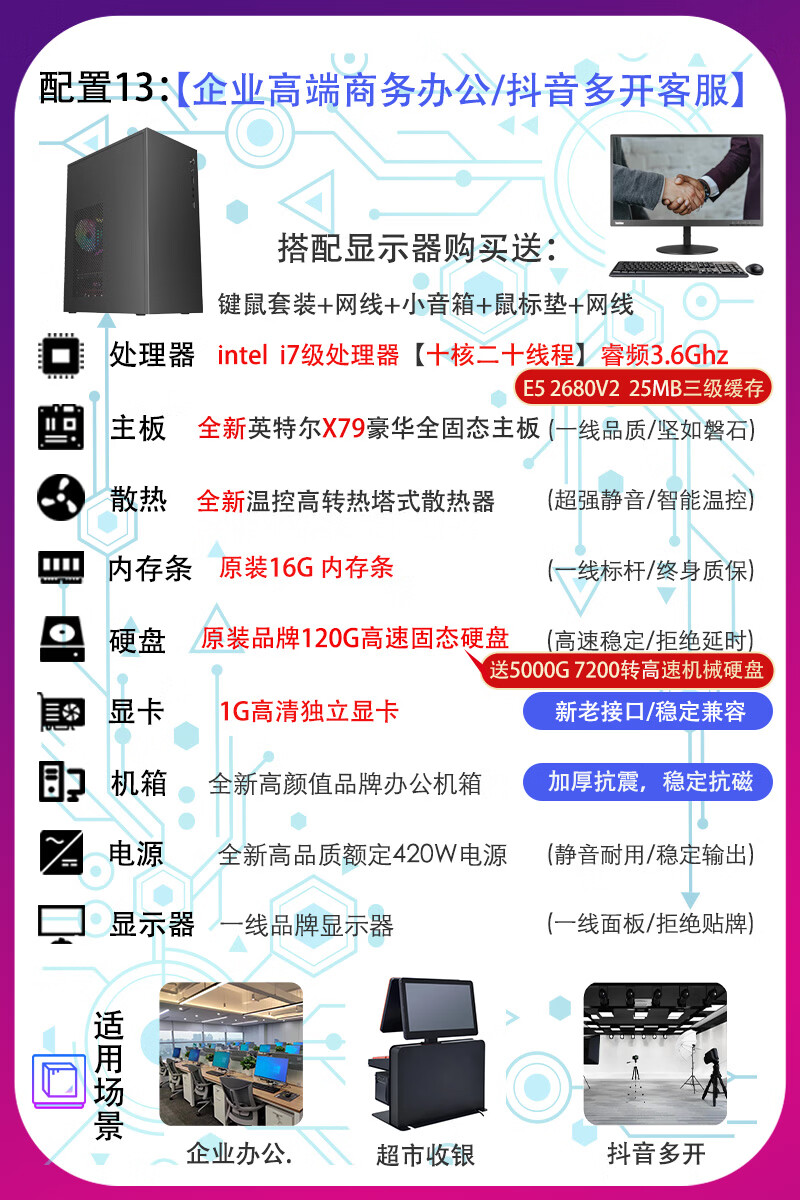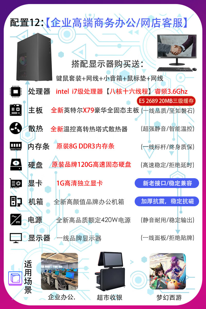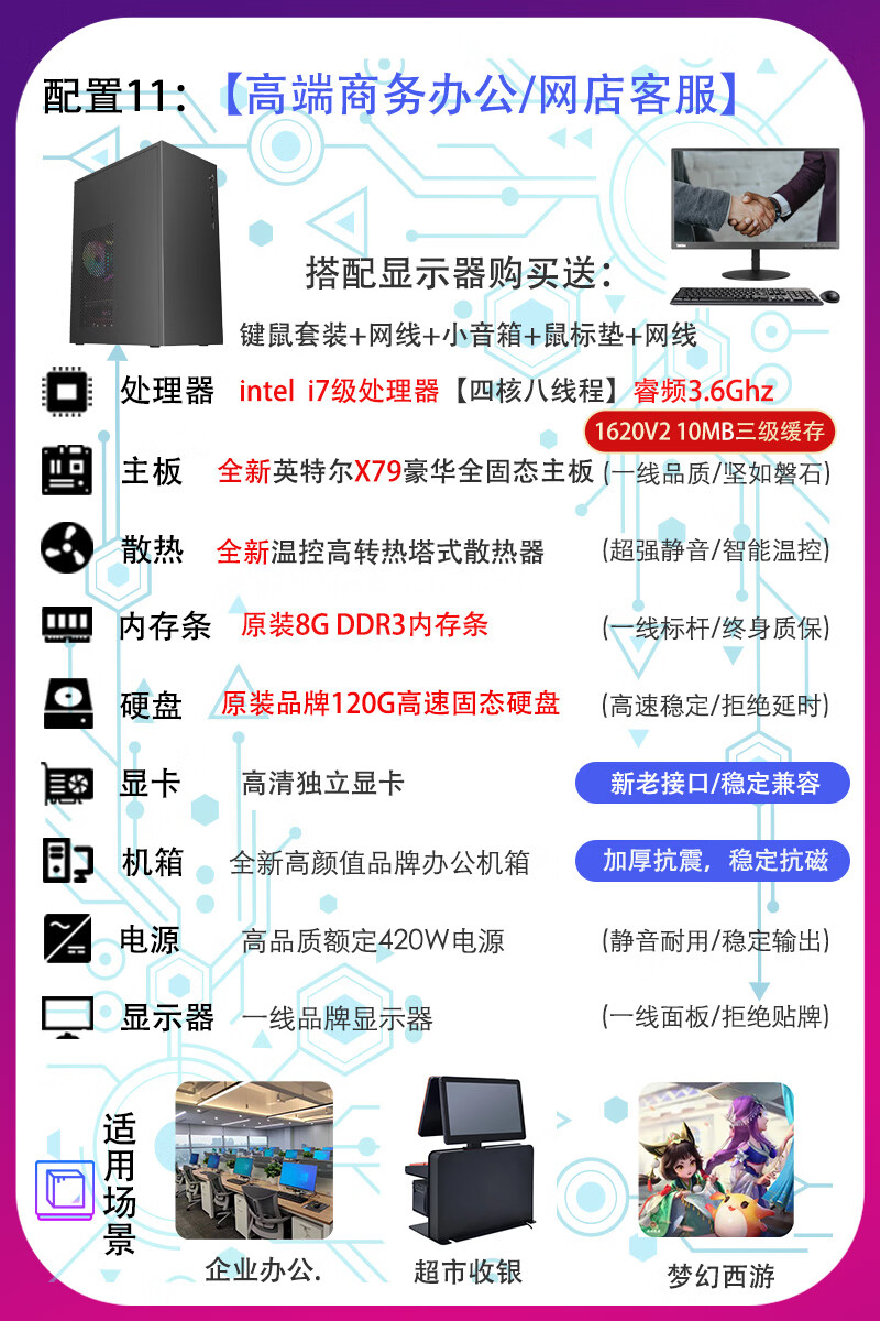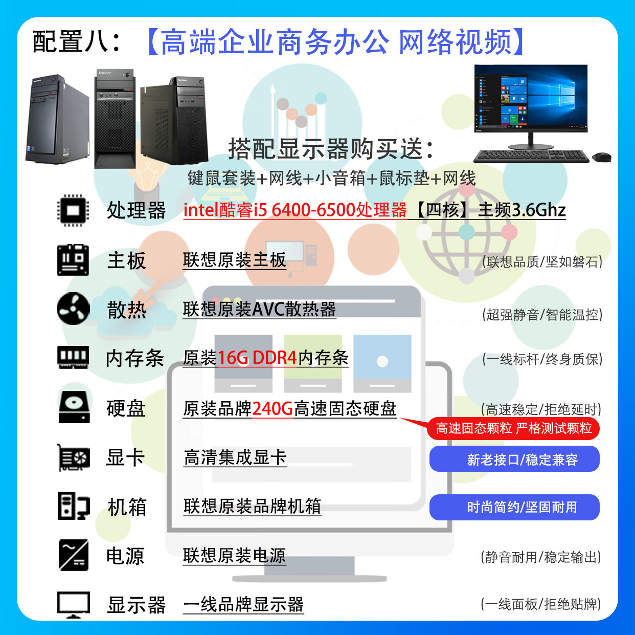 联想电脑台式主机整机 i3 i5 i7 商务办公家用娱乐显示器全套台式机 配置二:i3 四代8G 120G电商客服 主机+19寸LED显示器【9新】送键盘鼠标小音箱