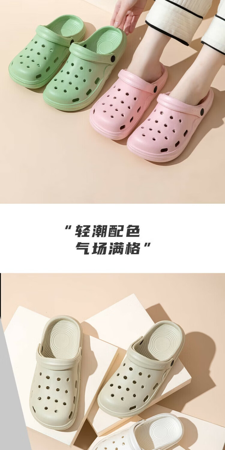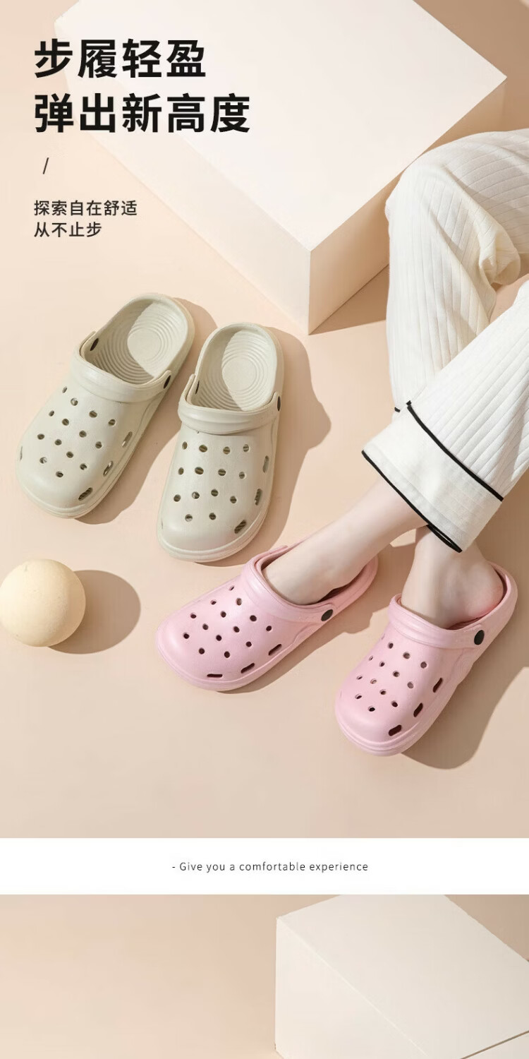 朴西情侣软底洞洞鞋女士外穿2025夏季沙滩鞋eva防滑踩屎感凉鞋男 奶杏色 42-43